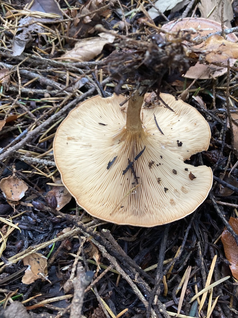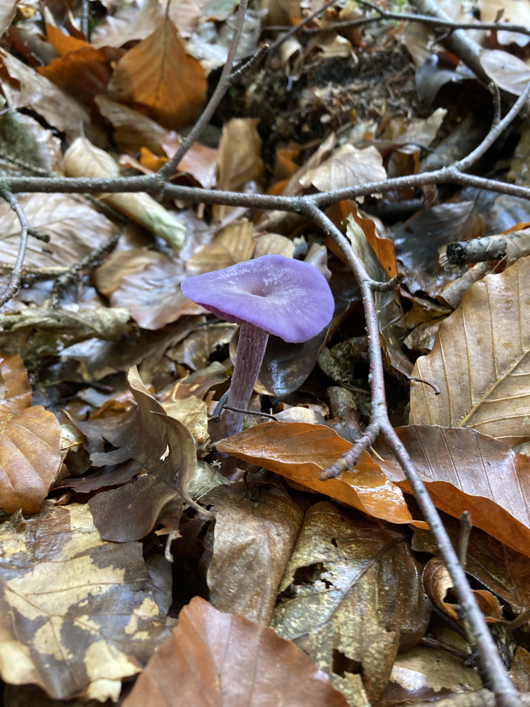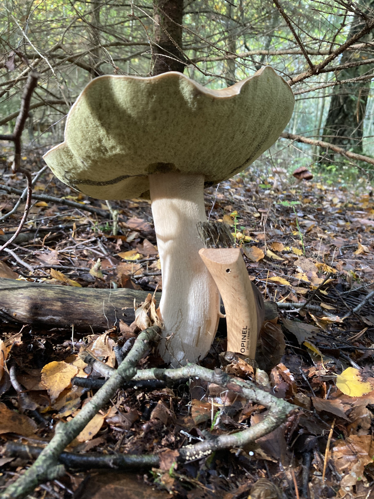 am vergangenen Montag, 31.10.22, fand ich den folgenden alleinstehenden Pilz auf dem Boden eines Nadel-Laub-Mischwaldes: