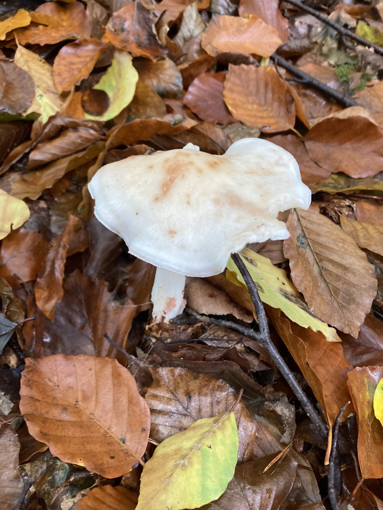 Interessant wäre, ob die Lamellen leicht vom Hutfleisch ablösbar sind. Für einen weißen Trichterling kommt er mir auch recht dickfleischig vor. Wie hat er denn gerochen?