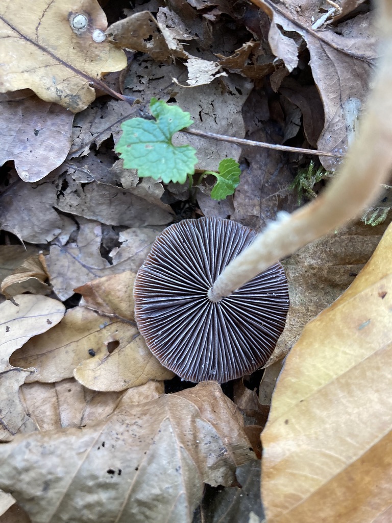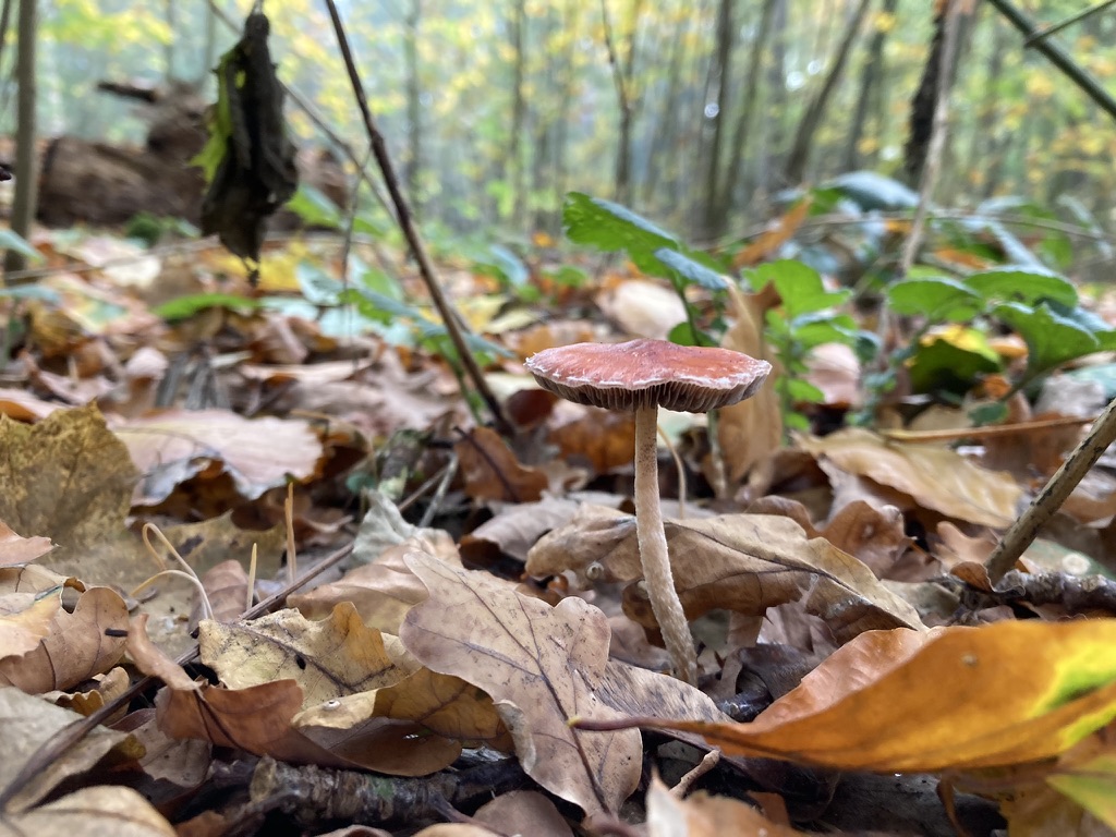 Parallel (weil der halt auch so ähnlich aussieht) auch noch den Wohlriechenden Trichterling (Clitocybe amoenolens / Paralepistopsis amoenolens) mal angucken. Auch wenn die Wahrscheinlichkeit gering ist, sicher ist sicher.