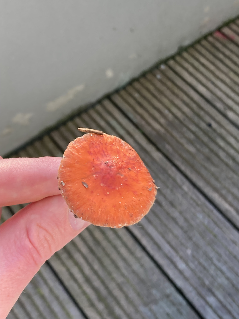 Ich komme beim Orangeroten Träuschling, Leratiomyces ceres, raus.