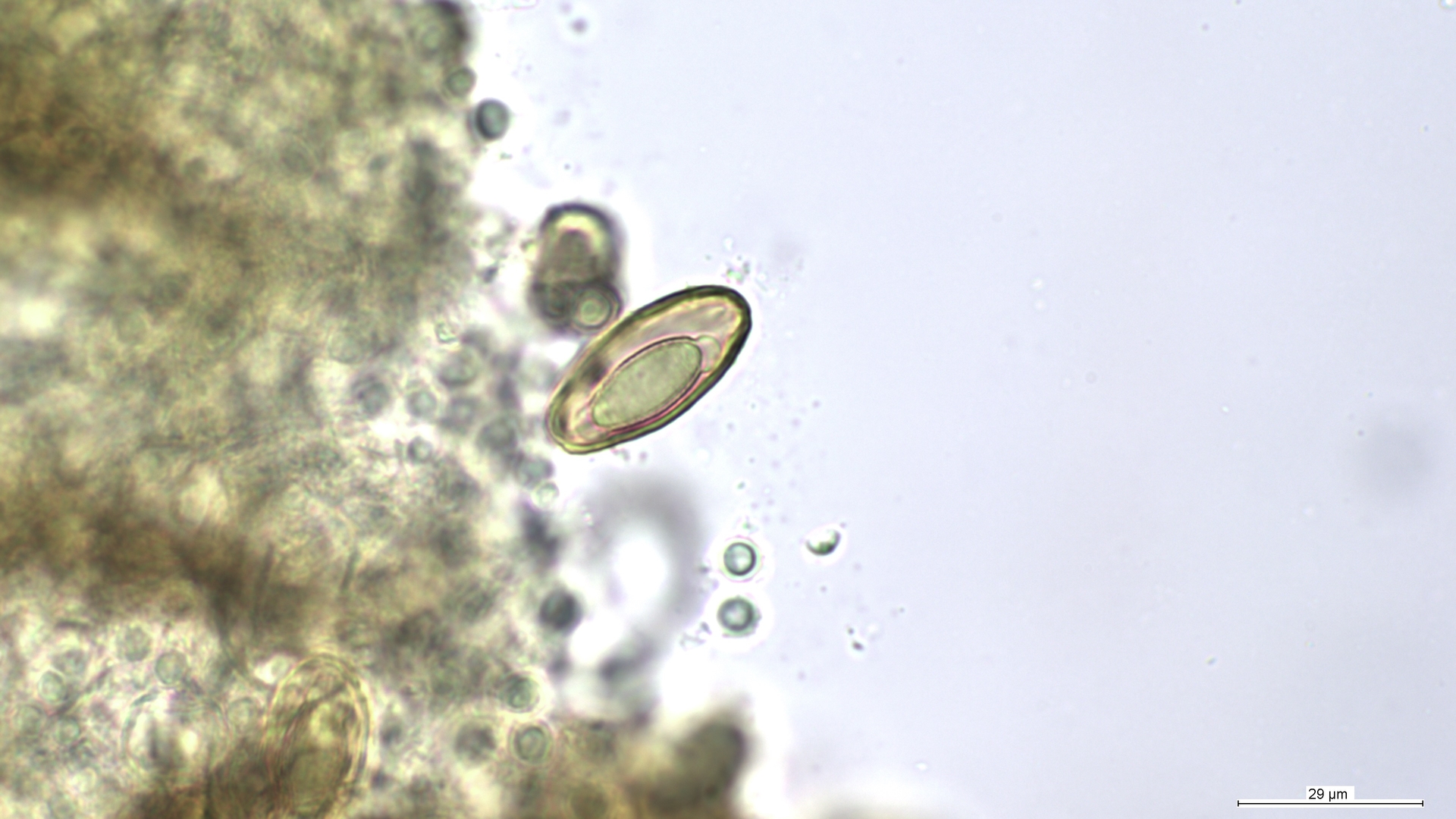 Die Maße der Innere Spore sind ( 19,9-26,6 x 8,3-10 µm (gemessen mit schleimanhängen)),