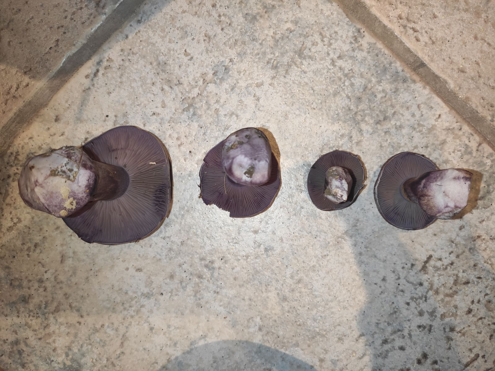 Neben einer braunen Kappe haben sie einen lila Stil sowie lila Lamellen. Ich habe auf einen violetten Rötelritterling getippt, bin mir aber vor allem aufgrund des braunen Hutes nicht sicher, ob dies sein kann. Ich freue mich über Eure Einschätzung. 😊