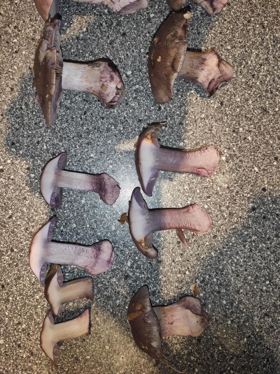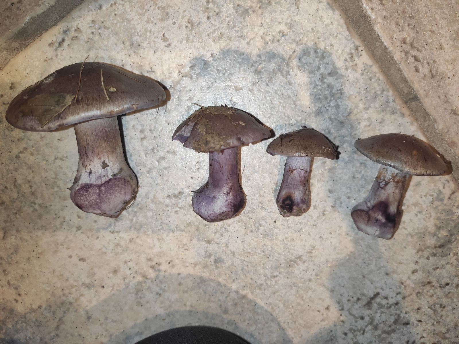 bei meinem heutigen Streifzug durch den Mischwald bin ich über folgende violett-braunen Pilze gestolpert.