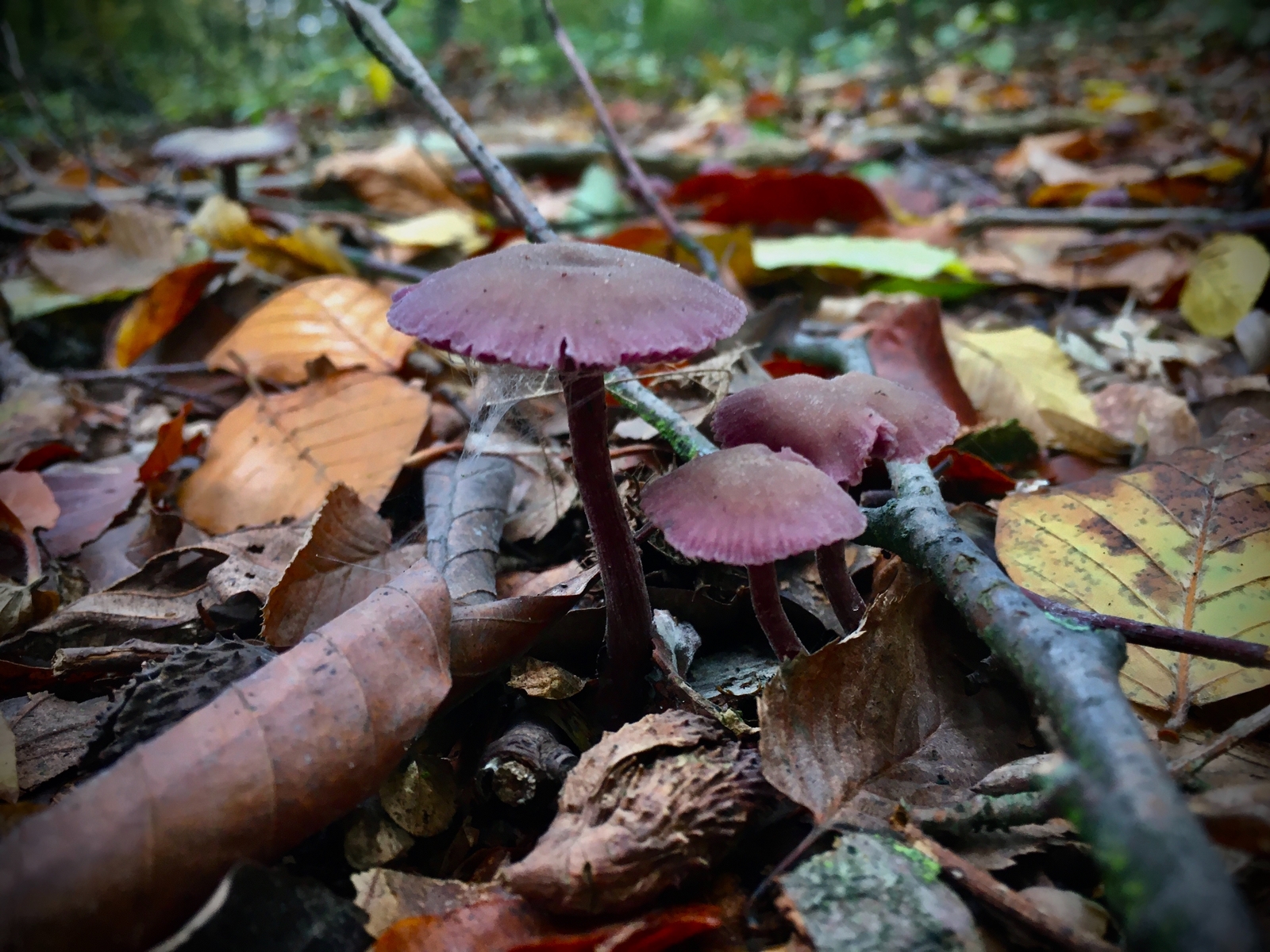 Tote Äste zerbrachen, herabgefallene Blätter knisterten und manche Wurzel lud zum Stolpern ein, aber letztendlich traf ich wieder auf ein paar Violette Lacktrichterlinge!