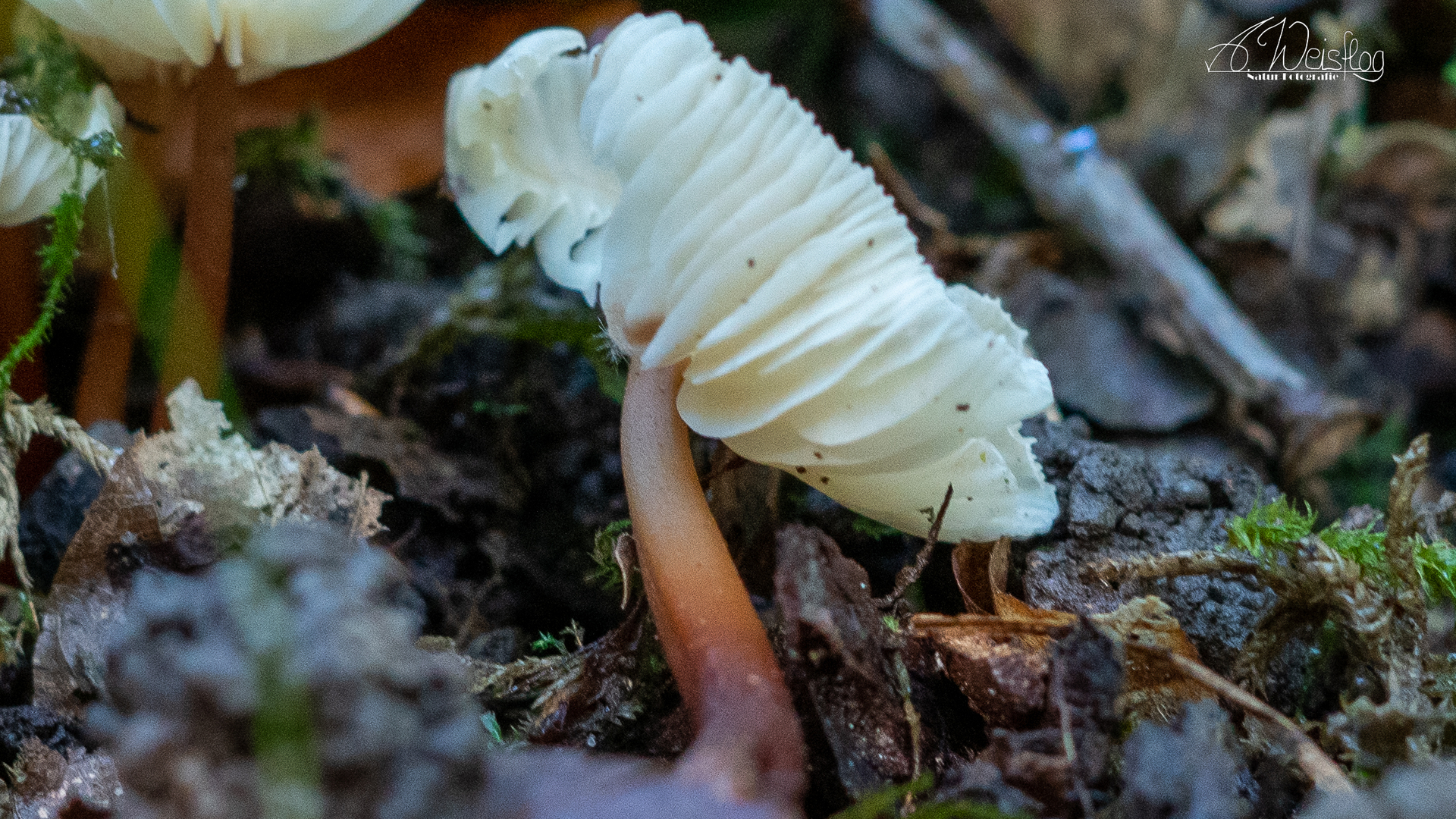 Auch hiermit bin ich in einem anderen Pilzforum nicht wirklich weiter gekommen. Die ersten 2 Bilder wurden vor 2 Wochen an moosbewachsenem Totholz in einem Eichen-/Buchenwald im Markgräflerland aufgenommen. Dann vor 2 Tagen wiedergefunden und auf der Hand näher und im Schnitt fotografiert (offensichtlich war der Pilz nicht mehr frisch). In der Nähe habe ich dann aber auch eine eine kleine Gruppe der gleichen Pilze entdeckt. Das letzte Bild zeigt die Fundstelle.