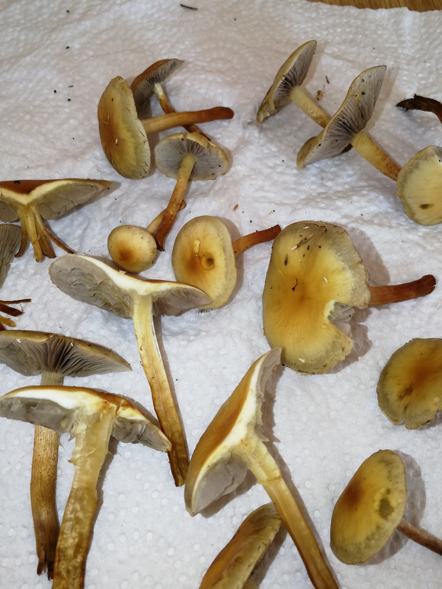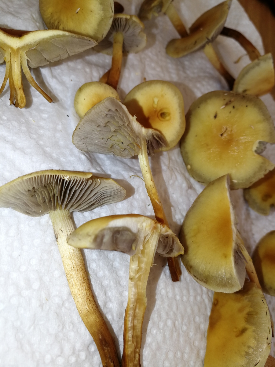 Hab gestern zum ersten mal den Samtfußrübling gefunden, und dann gleich noch in rauhen Mengen. Da es wie gesagt mein erstes mal ist wollte ich hier noch nach eurer (unverbindlichen) Meinung fragen. Leider habe ich in meiner Freude nur sehr spärliches Bildmaterial gemacht, dafür aber einen schnellen Sporenabdruck um eine Verwechslung mit dem Gifthäubling auszuschließen. Gewachsen ist das fette Büschel glaube ich auf einer Esche, jedenfalls definitiv auf einem Laubbaum.