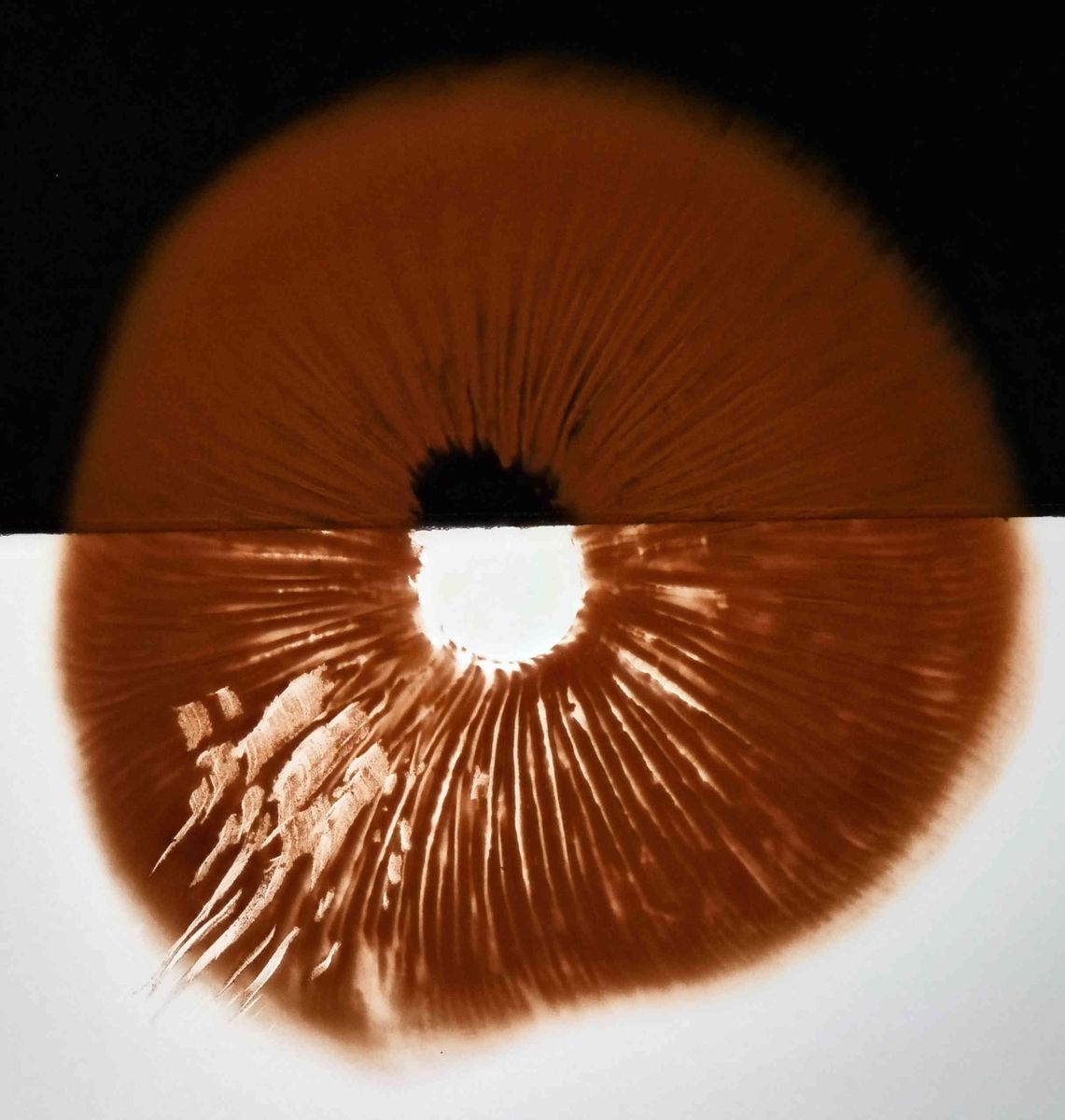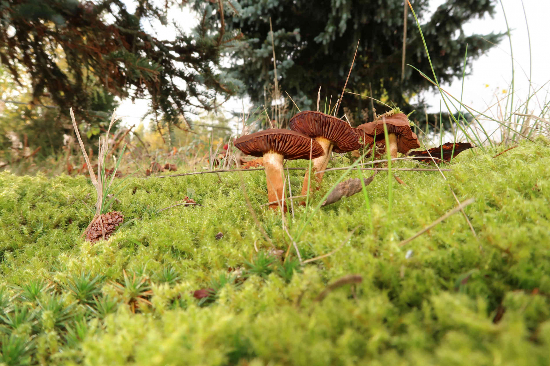 Pilze, welche über Wasser wachsen, sind bräunlich, Pilze unter Wasser sind weiß. Das sieht man später in den Bildern.