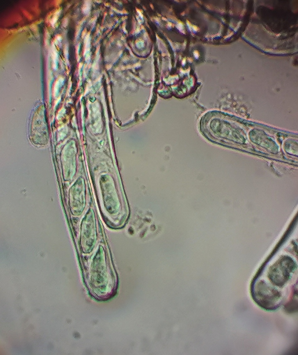 Ich habe auch versucht zu mikroskopieren und in Melzer angeschaut ob es schon reife Sporen in den Asci hat. Leider sind es wohl noch recht junge FK und noch zu unreif.