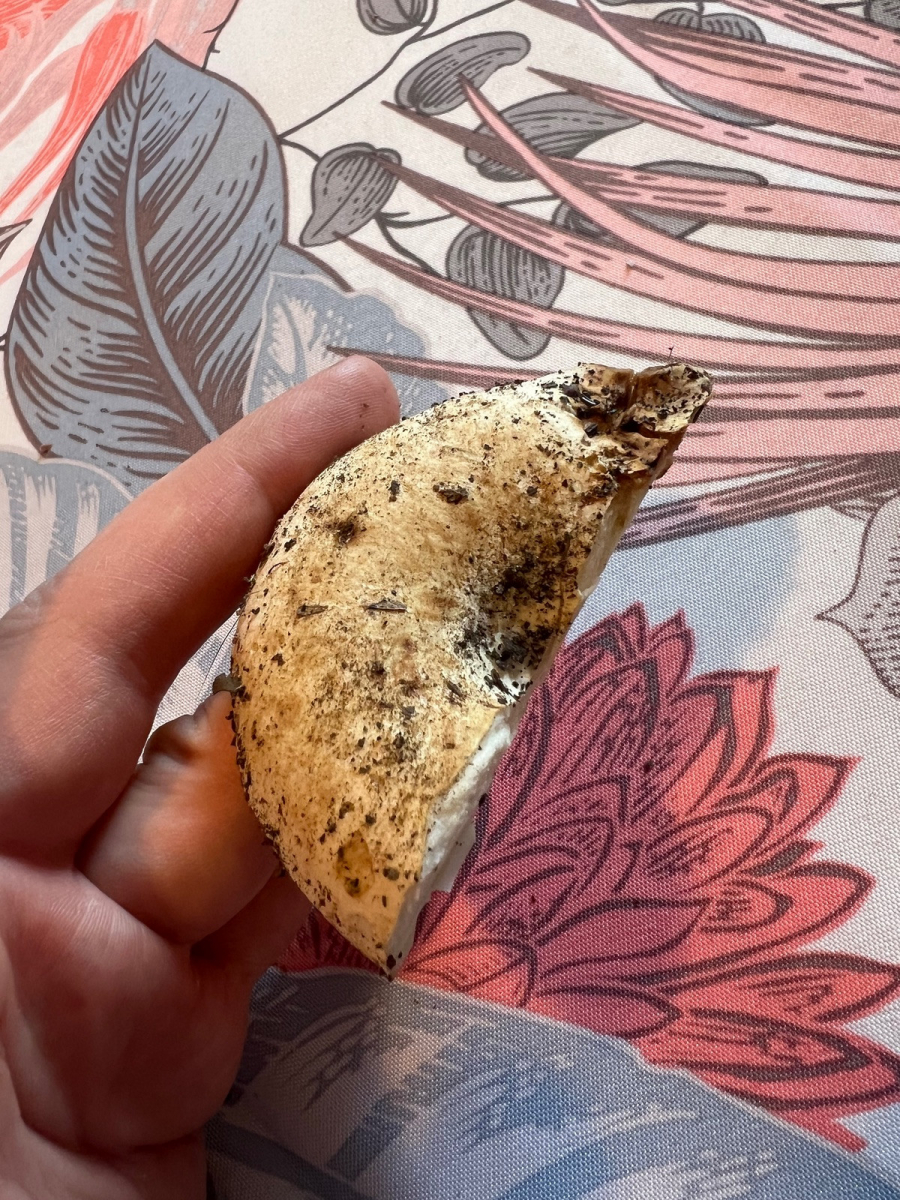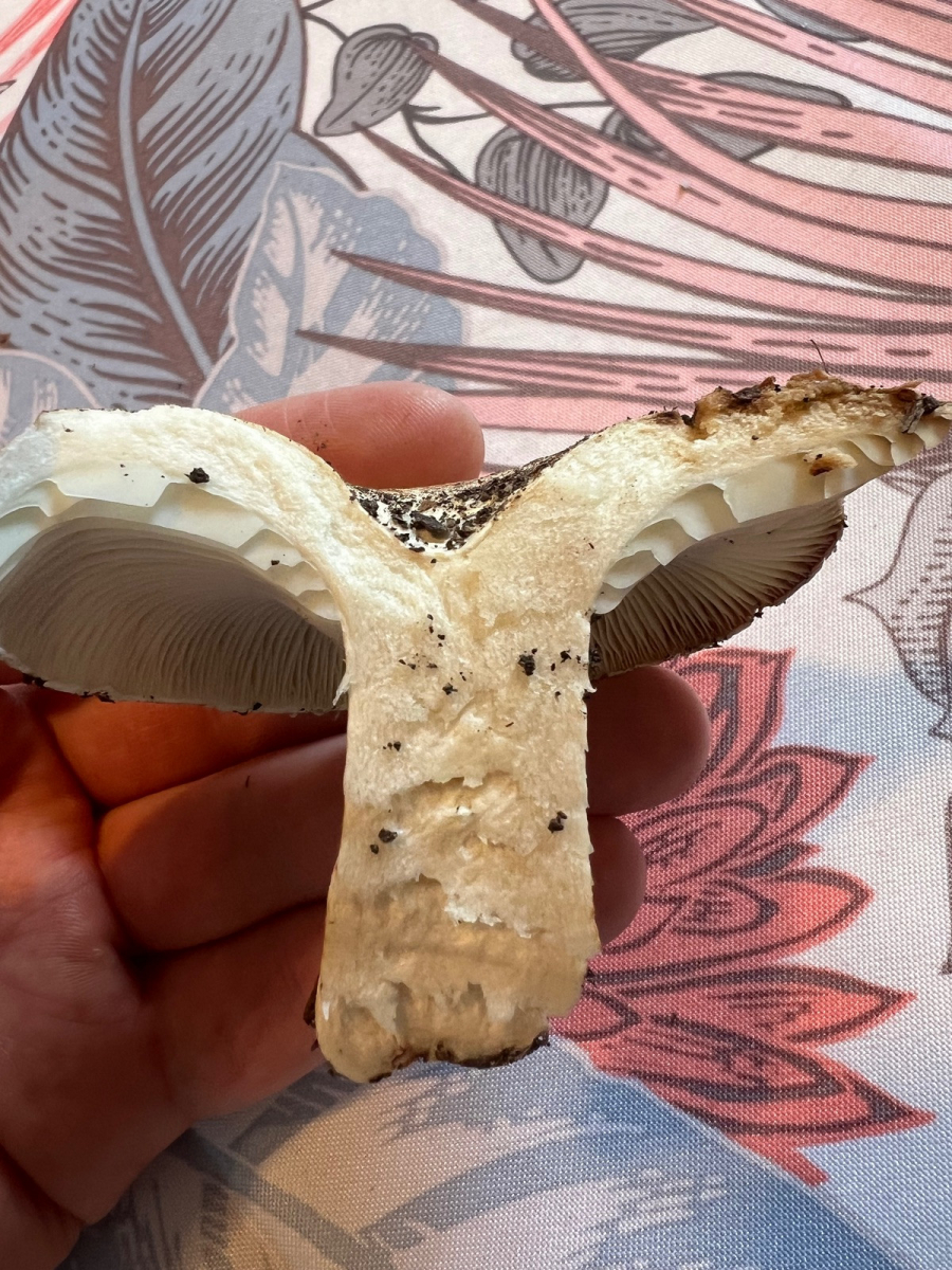 Der Stiel ist querbrüchig, mich verwundert nur diese “faser” ganz am Rand wie auf dem Bild zu sehen. Ist das normal bei Täublingen?