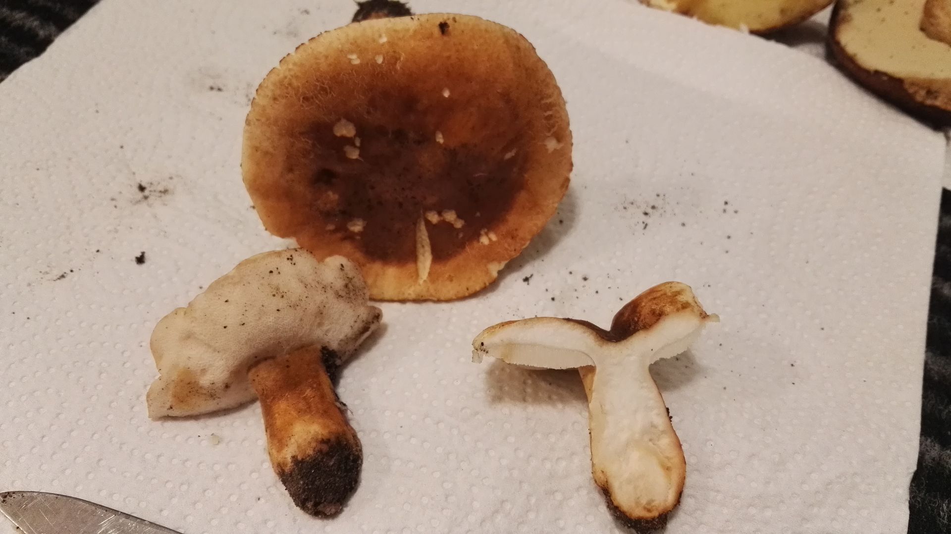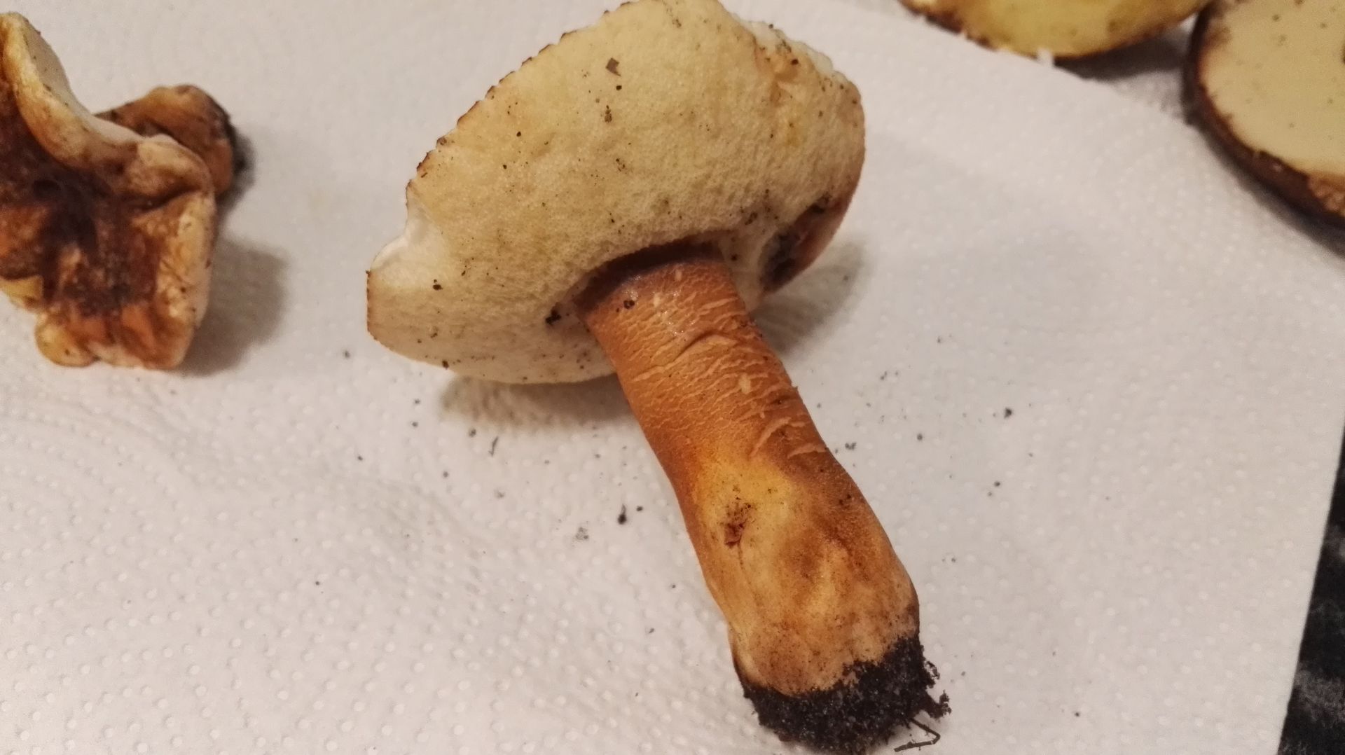 Die Frage, die ich mir jetzt stelle ist, handelt es sich um den Hasenröhrling Nr.1, welcher Pilz liegt dort in meinem Bestimmungskorb - Kiste Nr.2 und welcher Pilz wächst dort am Baum.