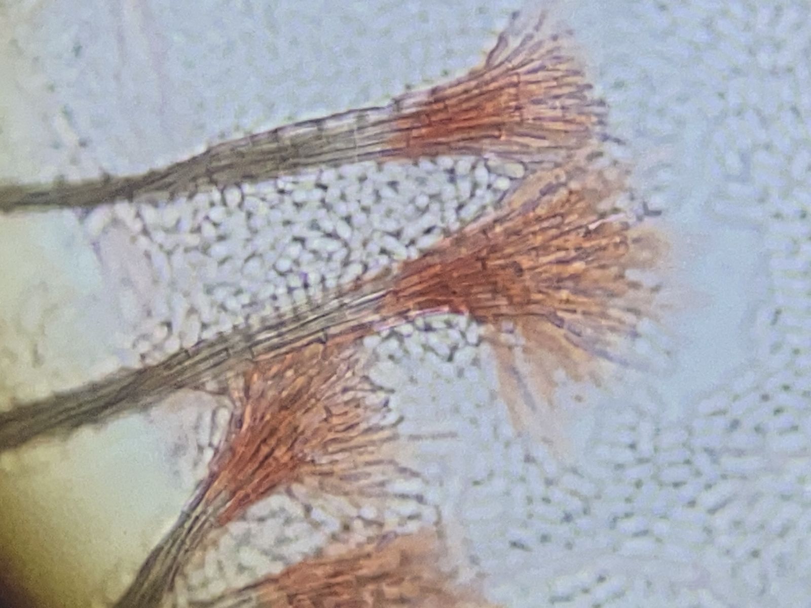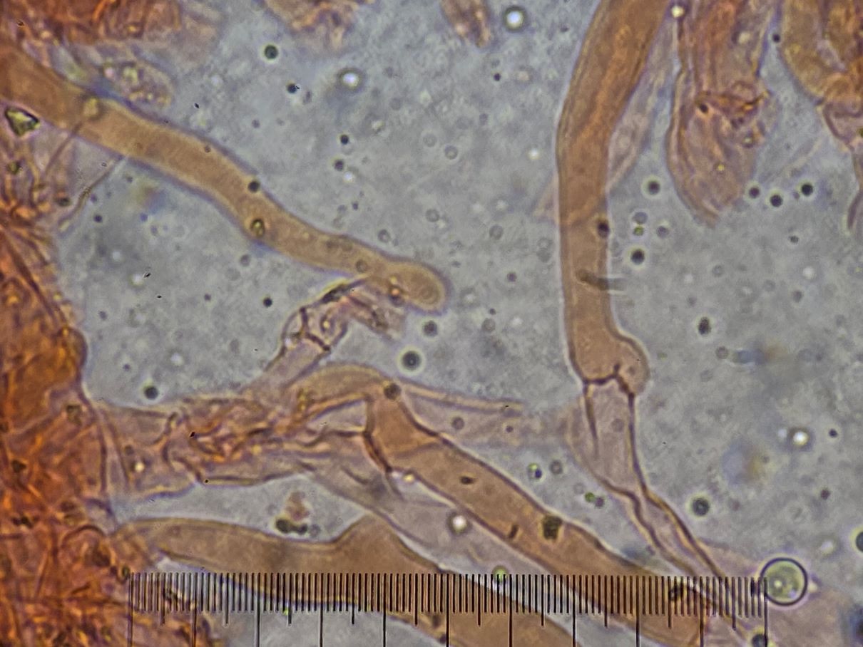 Auf den Ästen einer Thuja sah ich kleine Flusenbüschel. Im Mikroskop zeigten sich diese Wuschel mit endständigen großen hyalinen Konidien (25-35 x 9-11 µm). Leider konnte ich diese wieder nicht bestimmen. Ich hoffe, jemand hier im Forum kann mir weiterhelfen. Die Google-KI tippte auf Fusarium. Aber dem möchte ich nicht zustimmen.