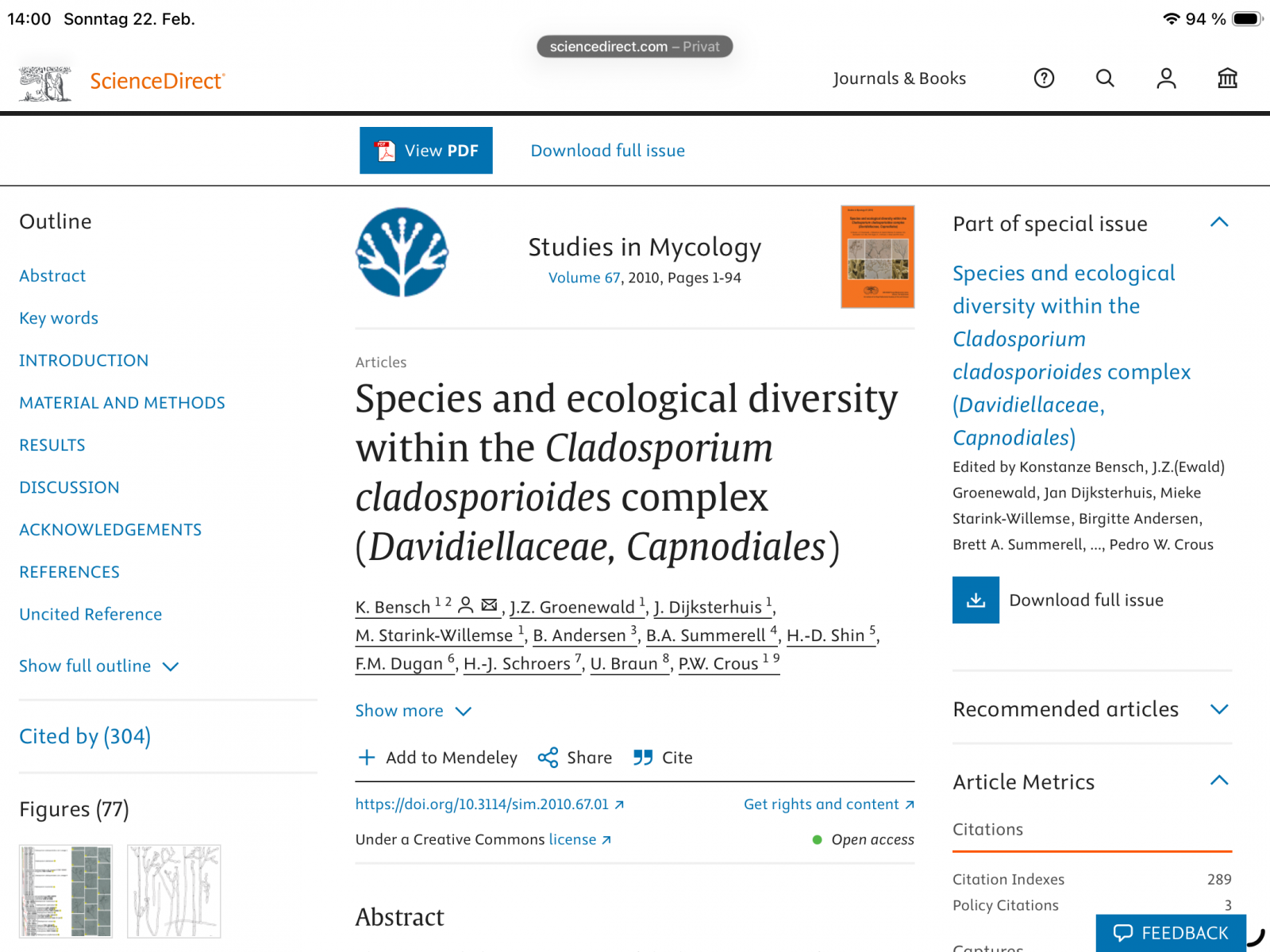 Ich möchte diesen hier unter Cladosporium sphaerospermum abspeichern. Könnte das so gut sein, oder habt Ihr eine andere Idee. Sicherlich hat jemand eine Monographie über Cladosporium oder einen guten Übersichtsartikel dazu. Hier: Isolat von Gras (Poaceae), Konidien ca. 4,5-6 µm.