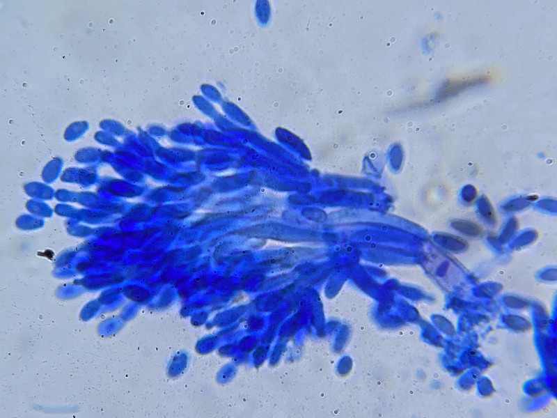 gab es in der gleichen Probe orange Setae und hyaline Hyphen mit