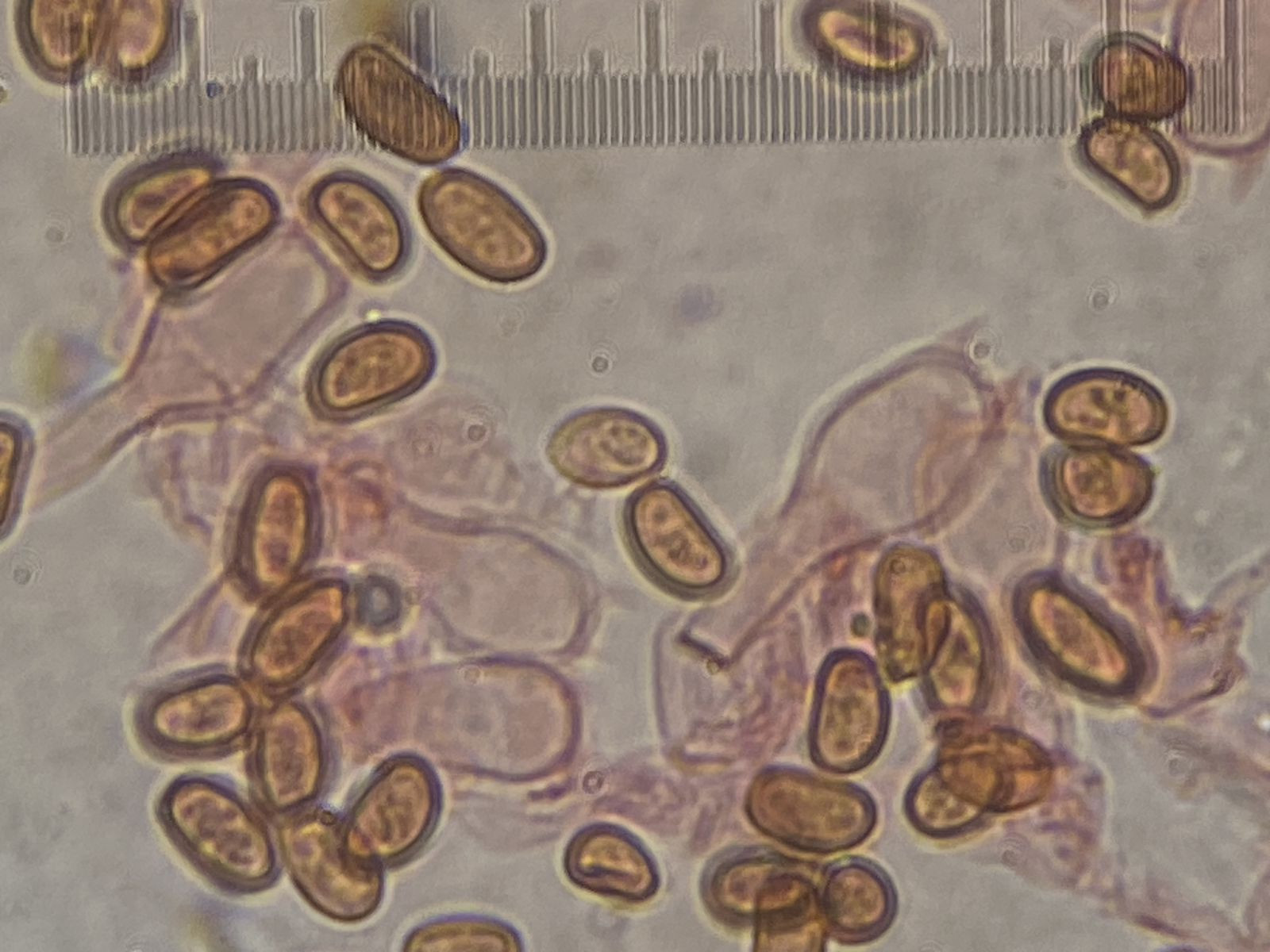 A) Sporen braun ca. 8-10 x 5-6 µm