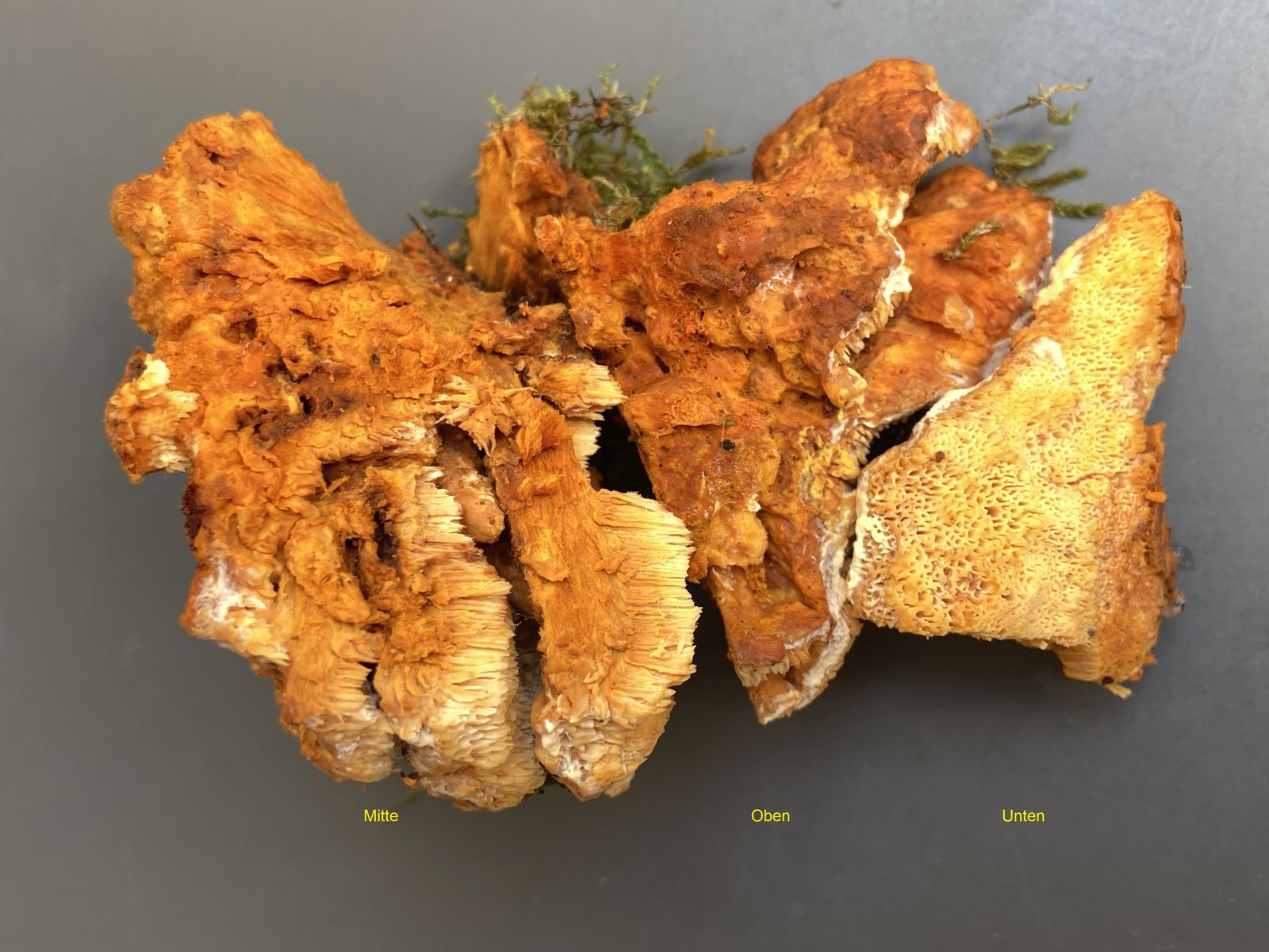 Nr. 1 zeigte keine Sporen/Konidien, sondern nur gabelförmige Endhyphen wie bei den Dacrymycetales.