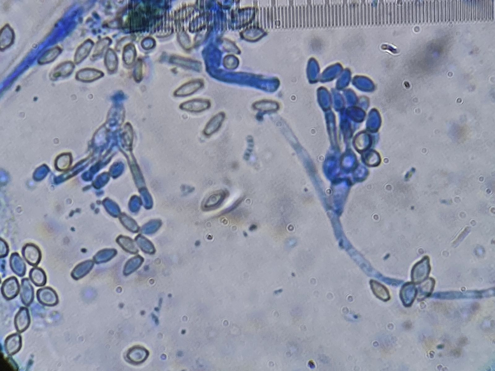 Bei Seifert et al. sind dort die Konidien ohne Stielchen abgebildet. Hier sind aber deutliche Stielchen zu sehen. Also Chromelosporium fulvum möchte ich ausschließen. Vill. eher Chromelosporium sp. Danke für die Rückmeldung!