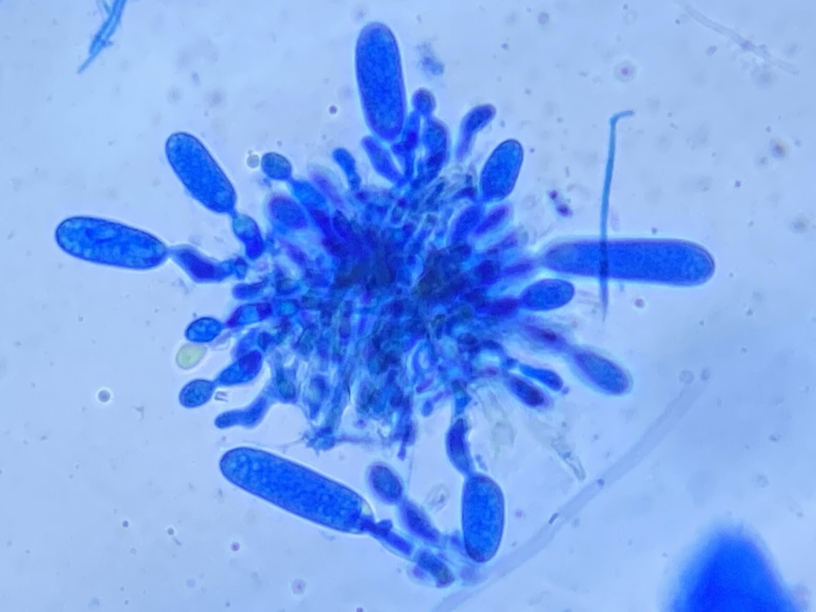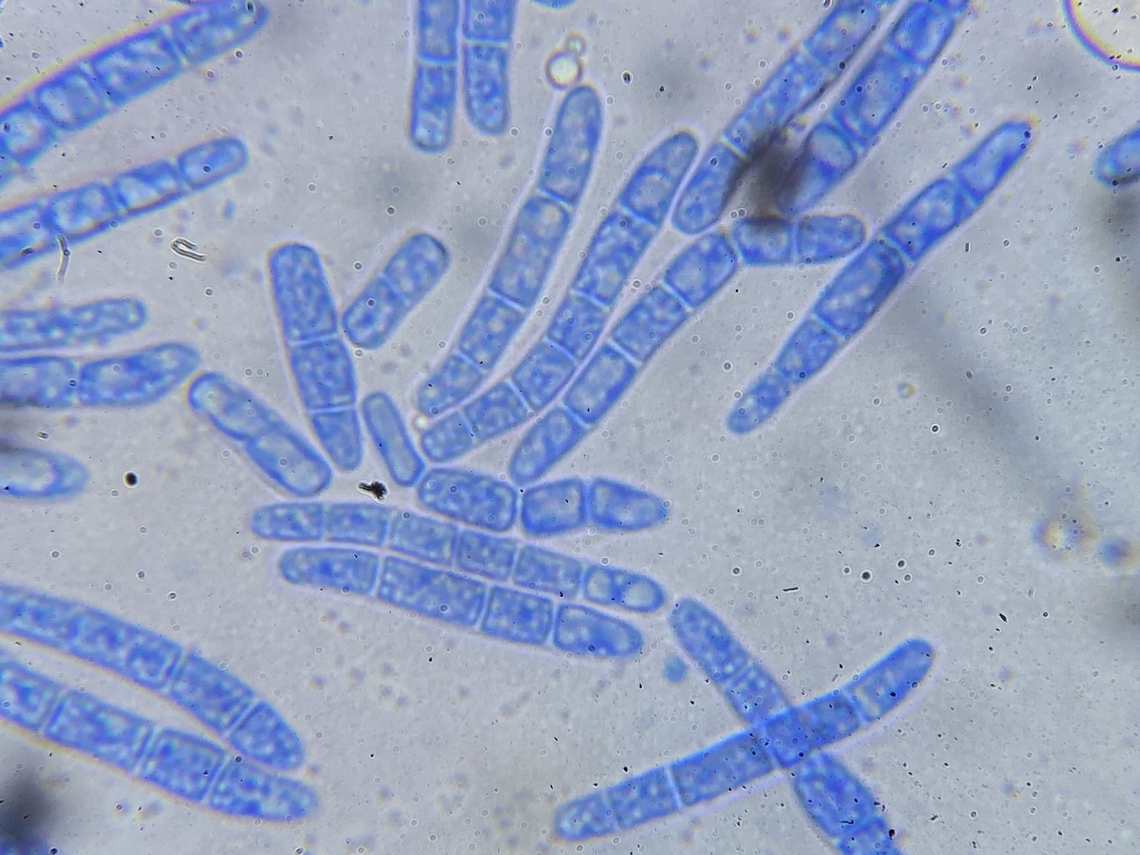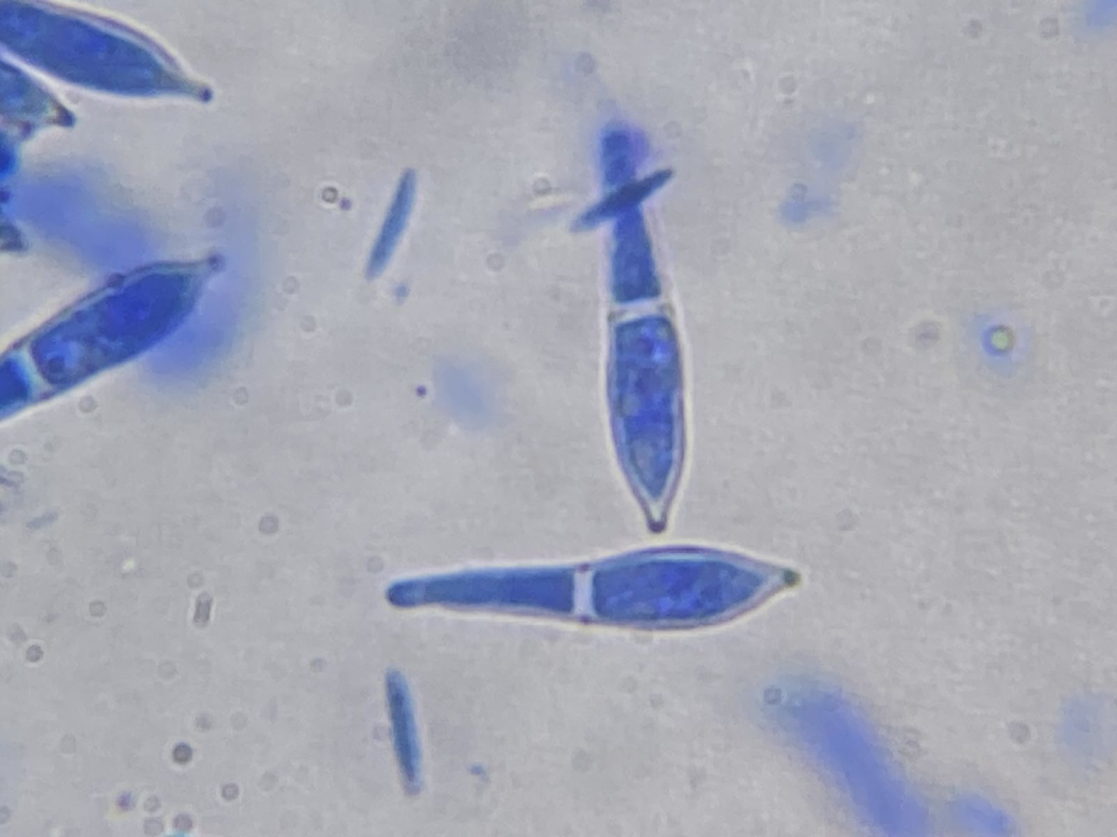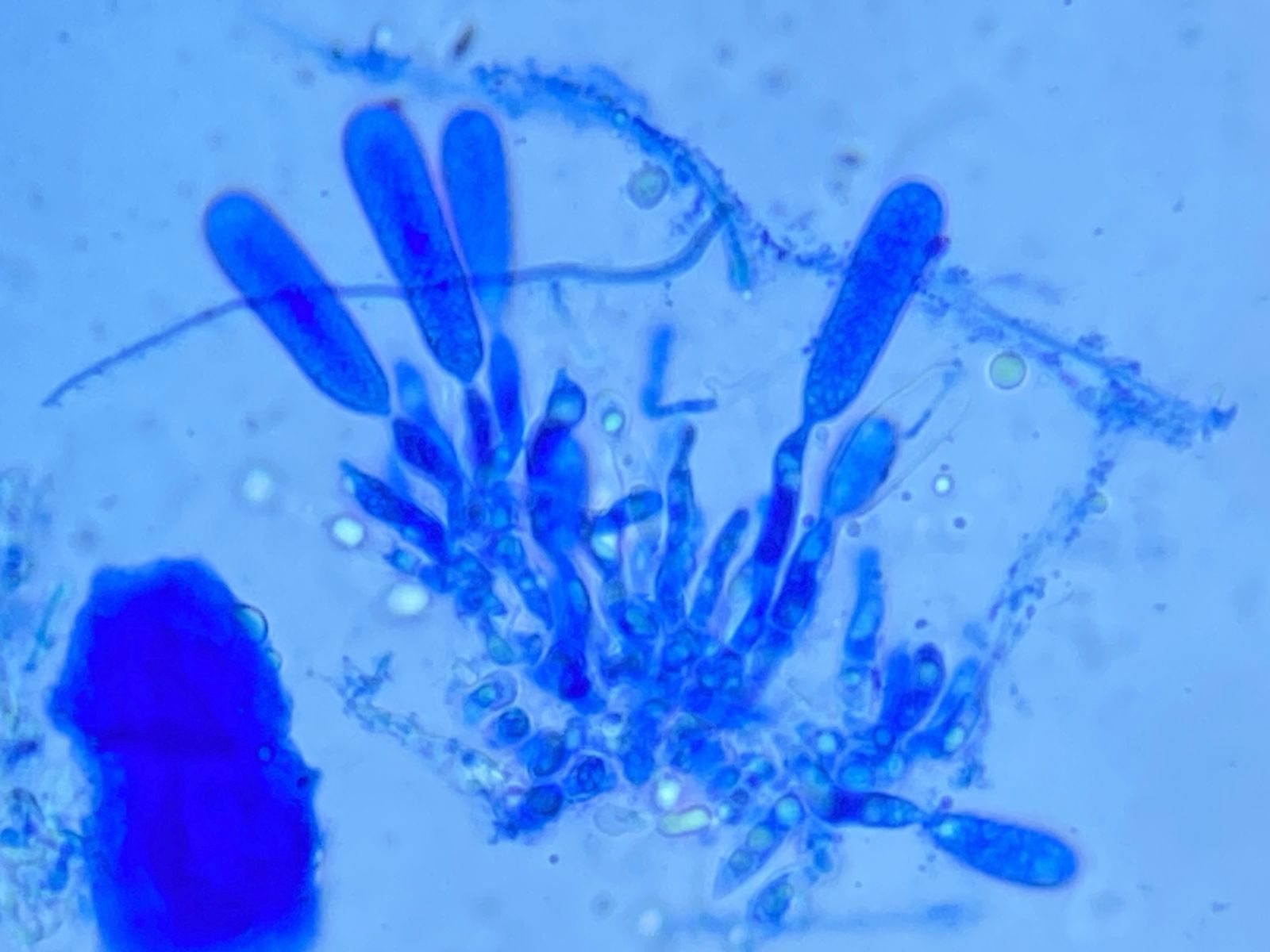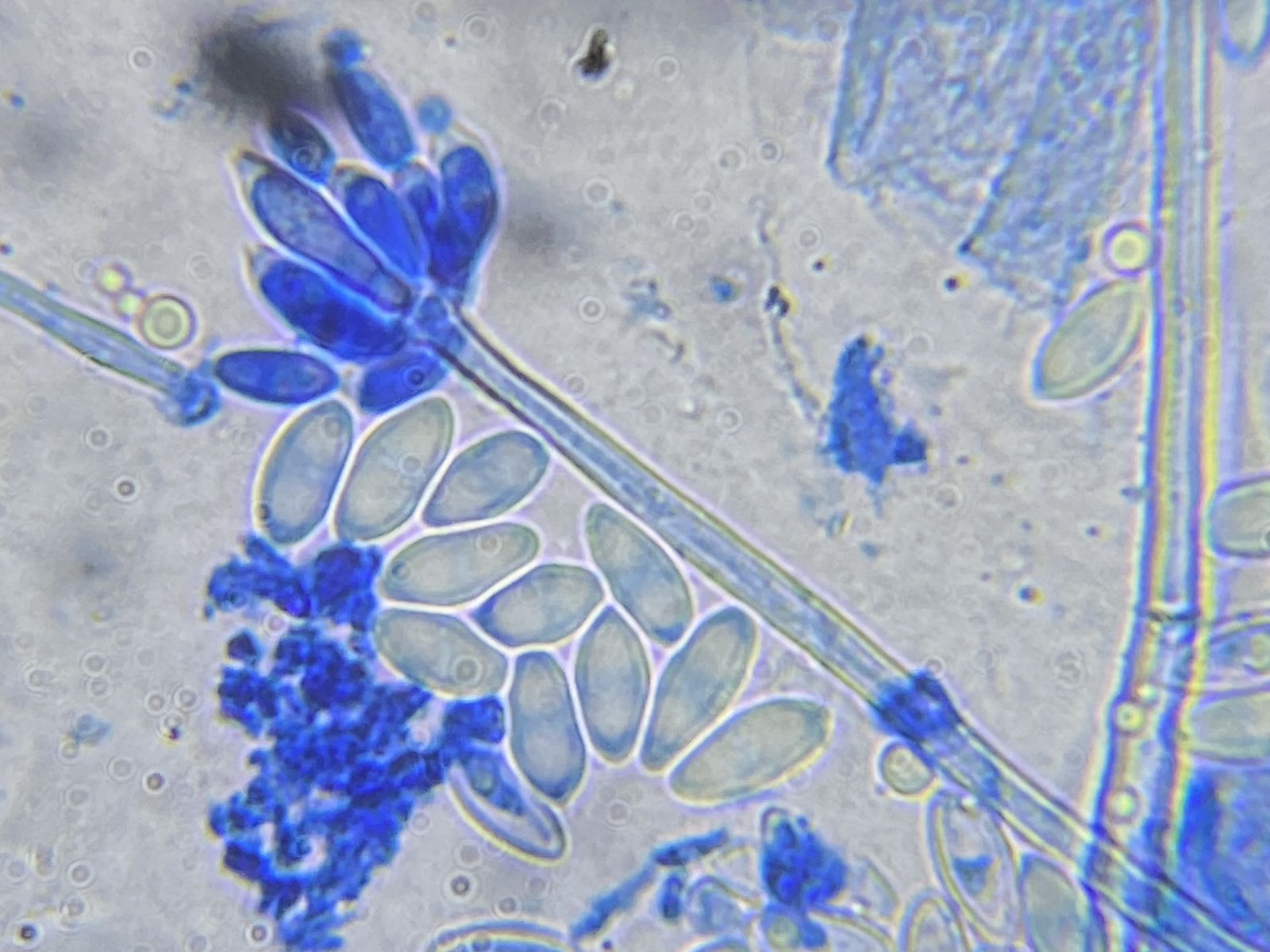 Olpitrichum (Konidien hyalin, daher färbbar mit Baumwollblau