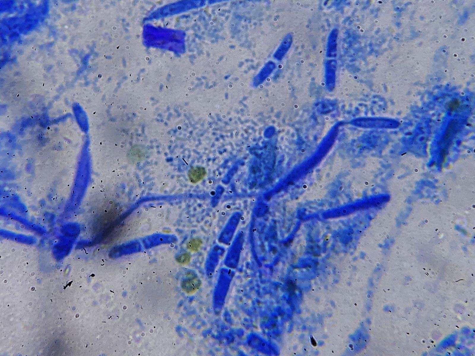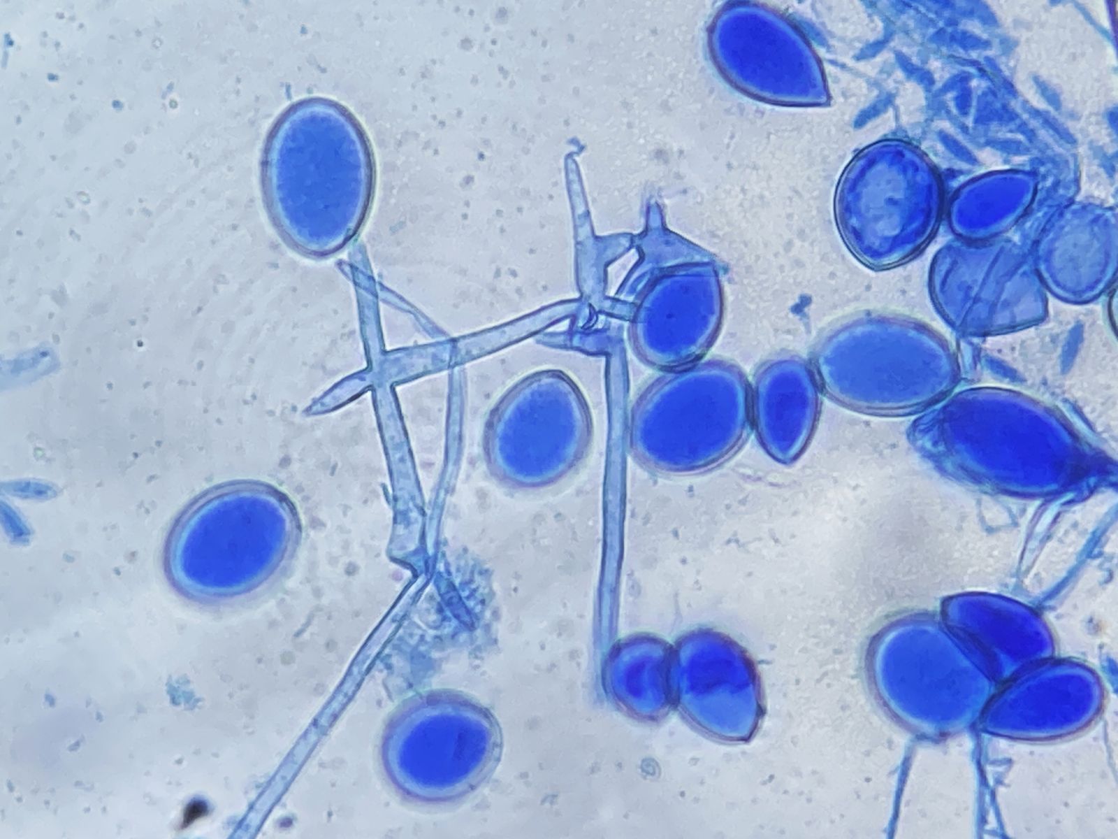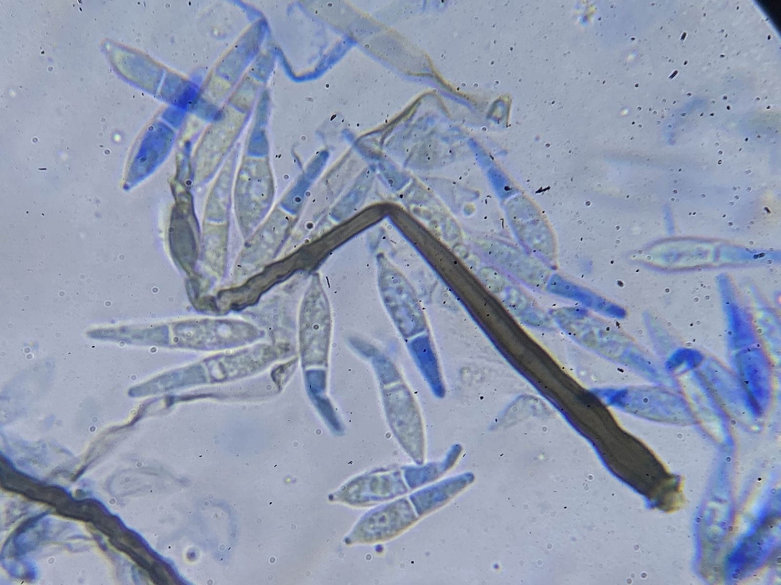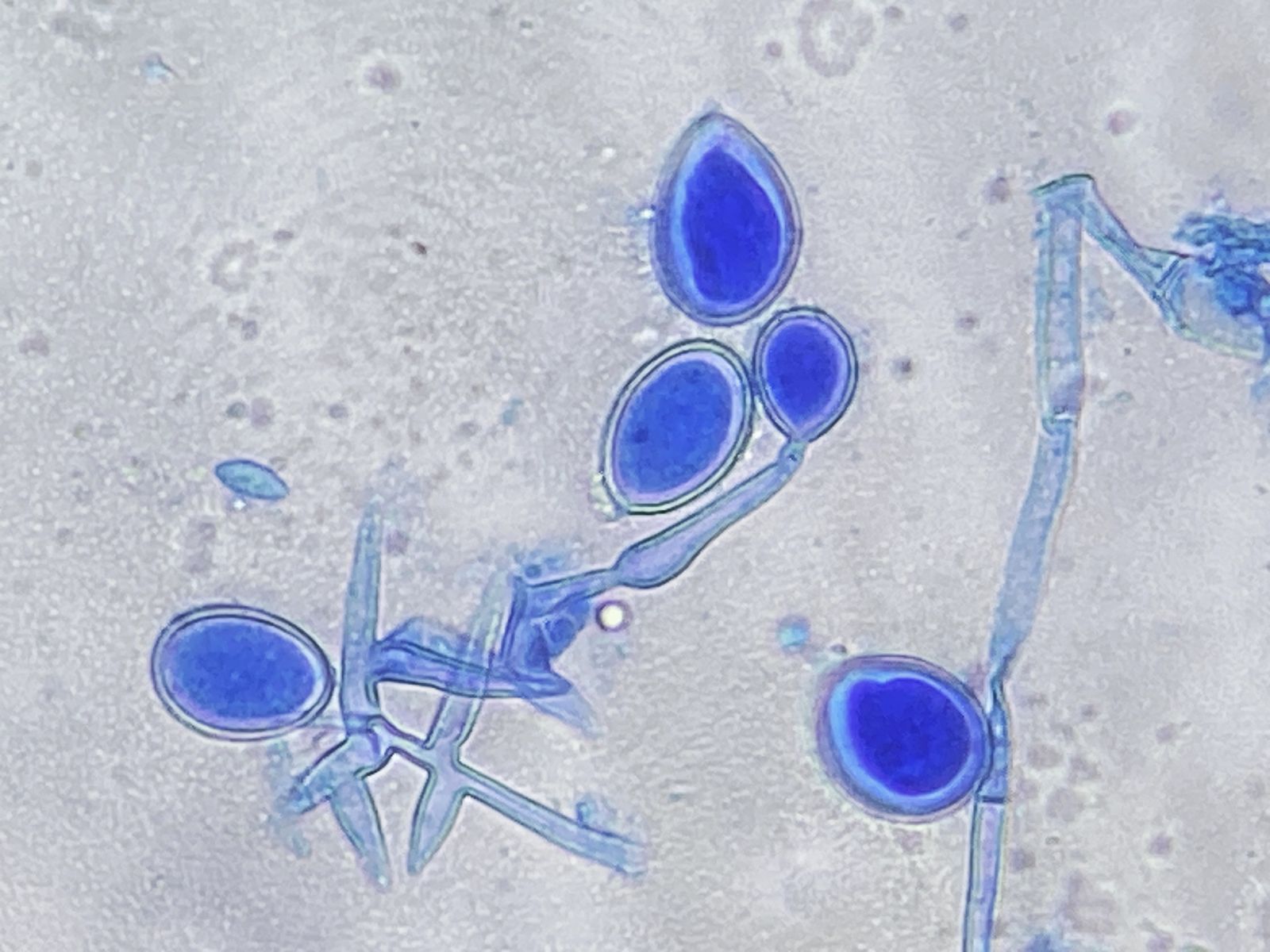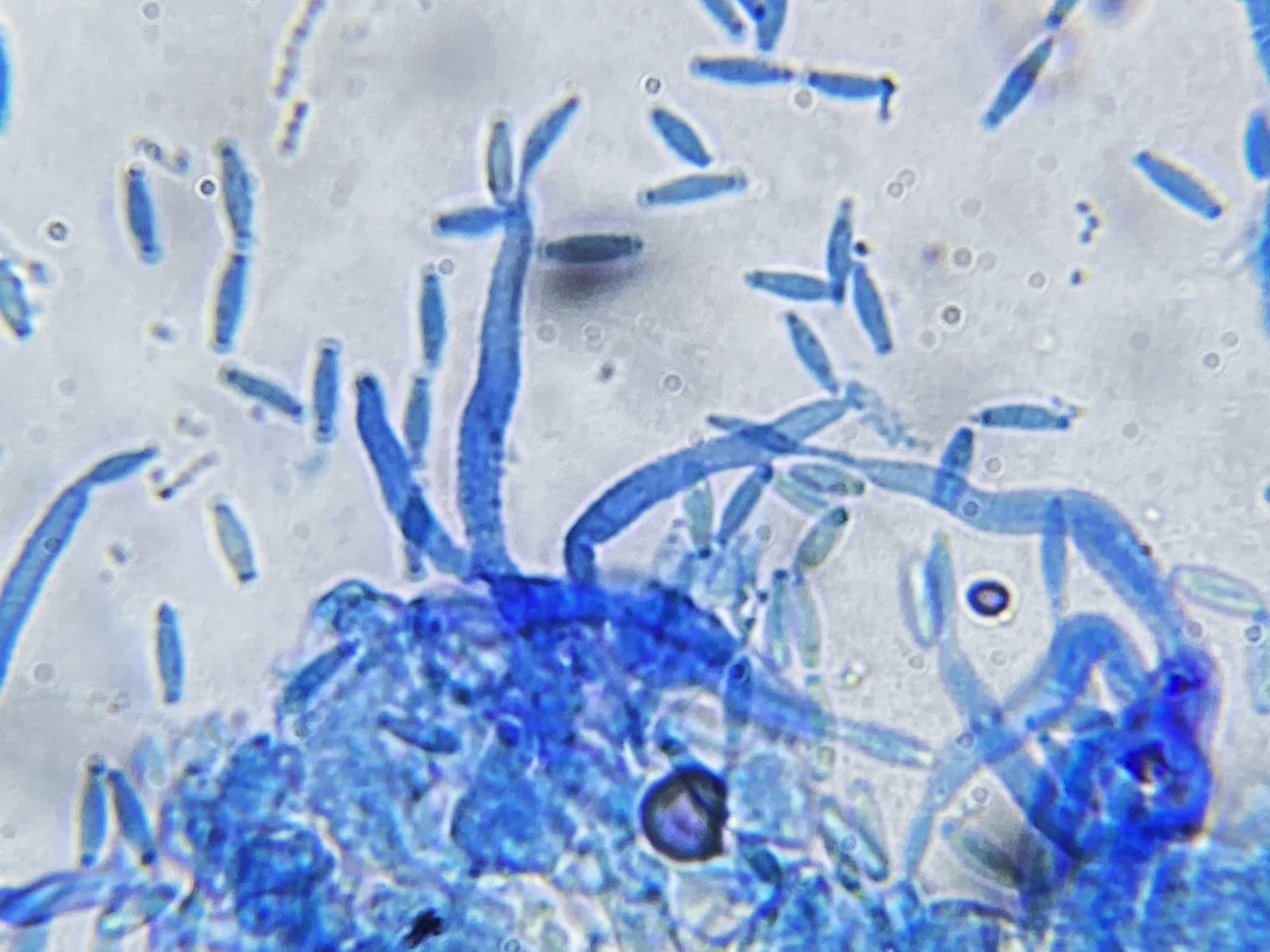 Olpitrichum (Konidien hyalin, daher färbbar mit Baumwollblau