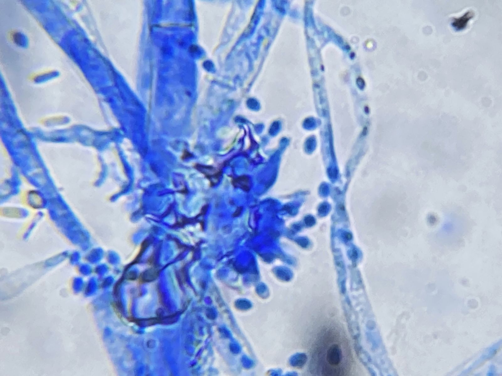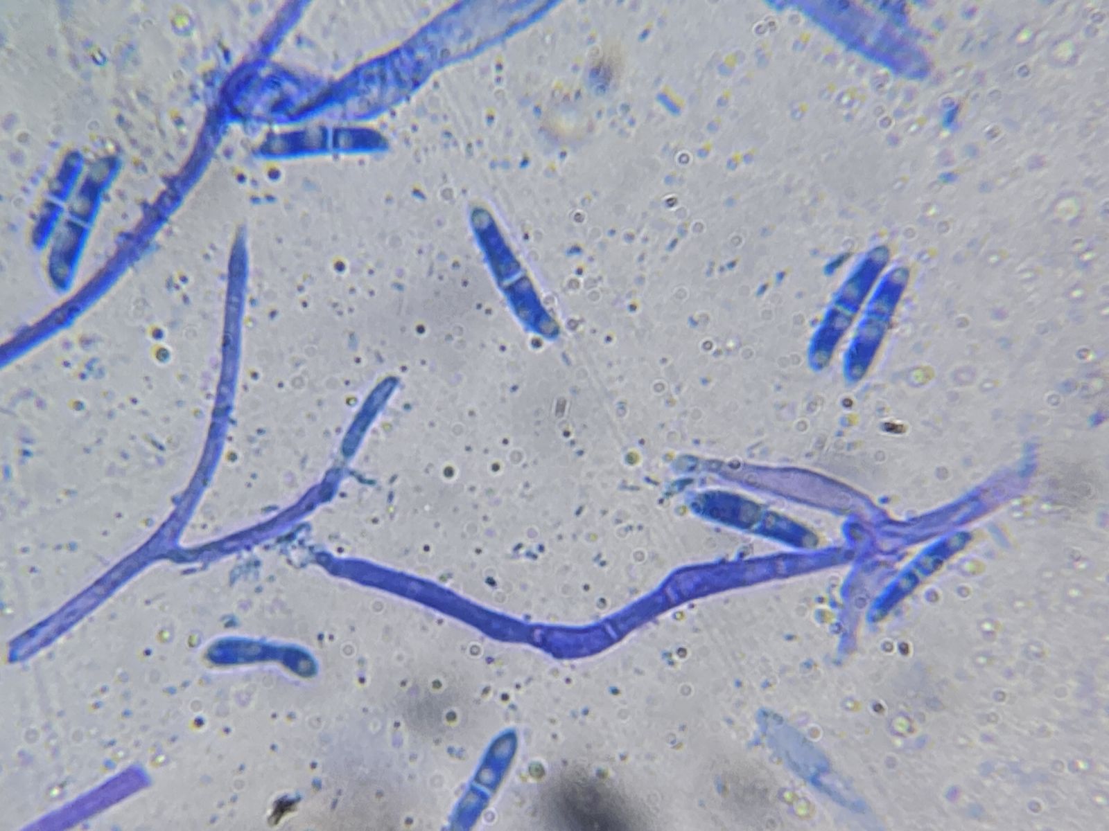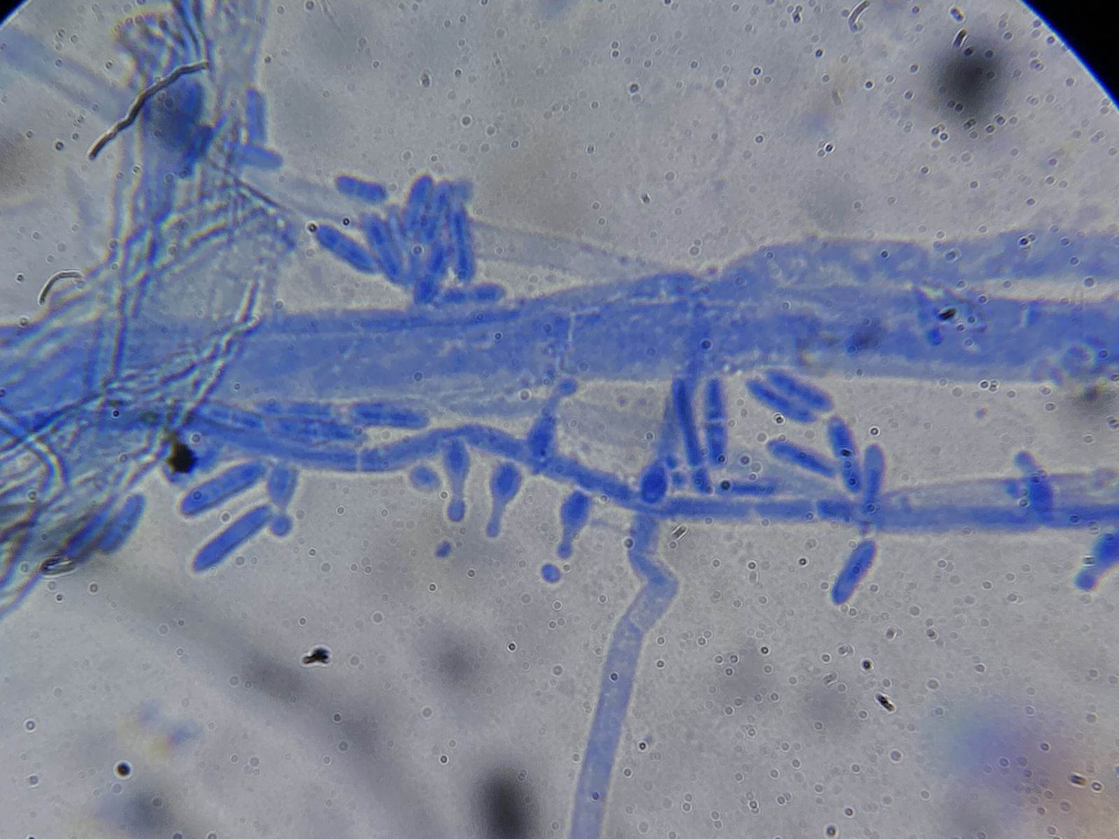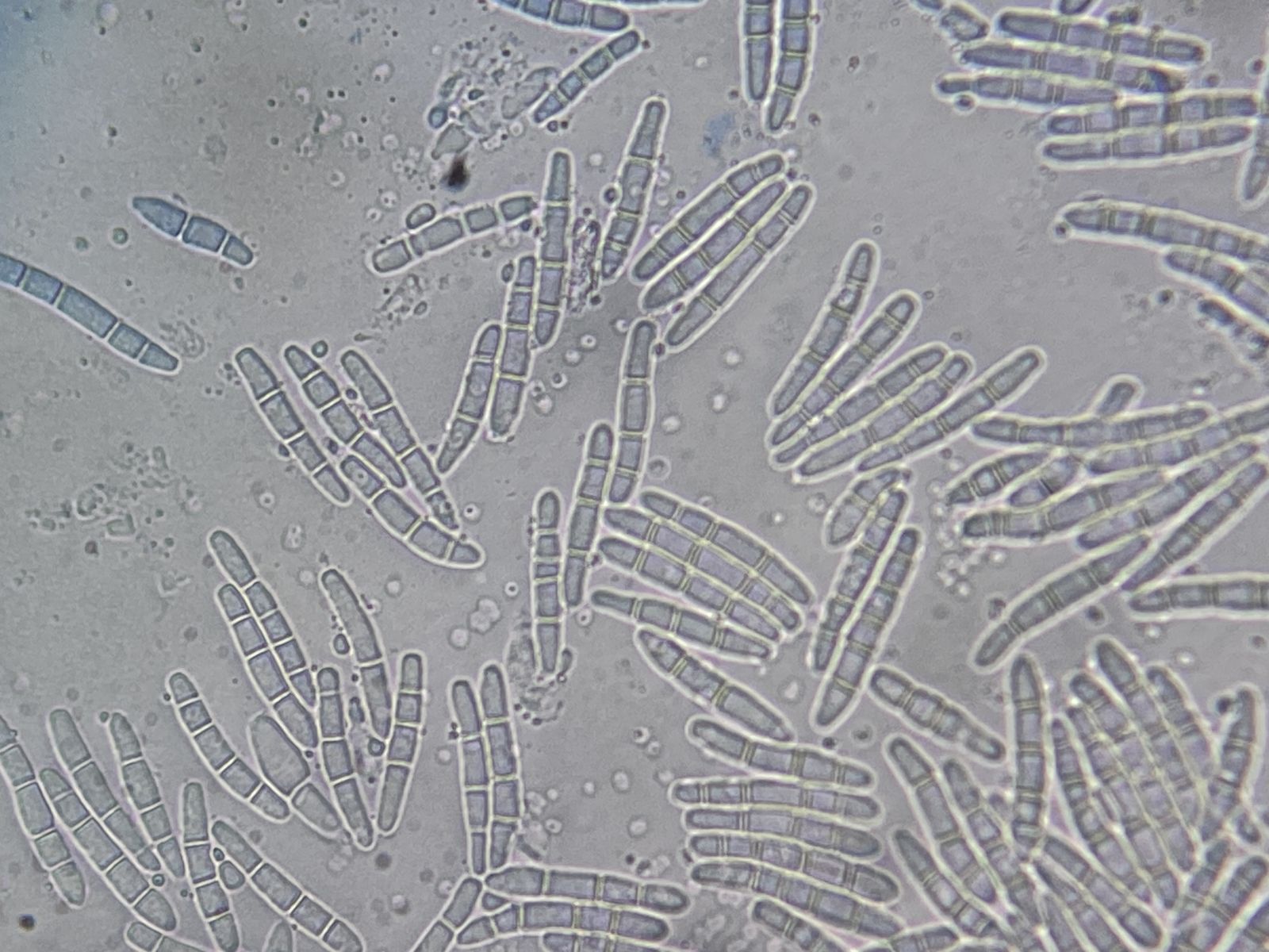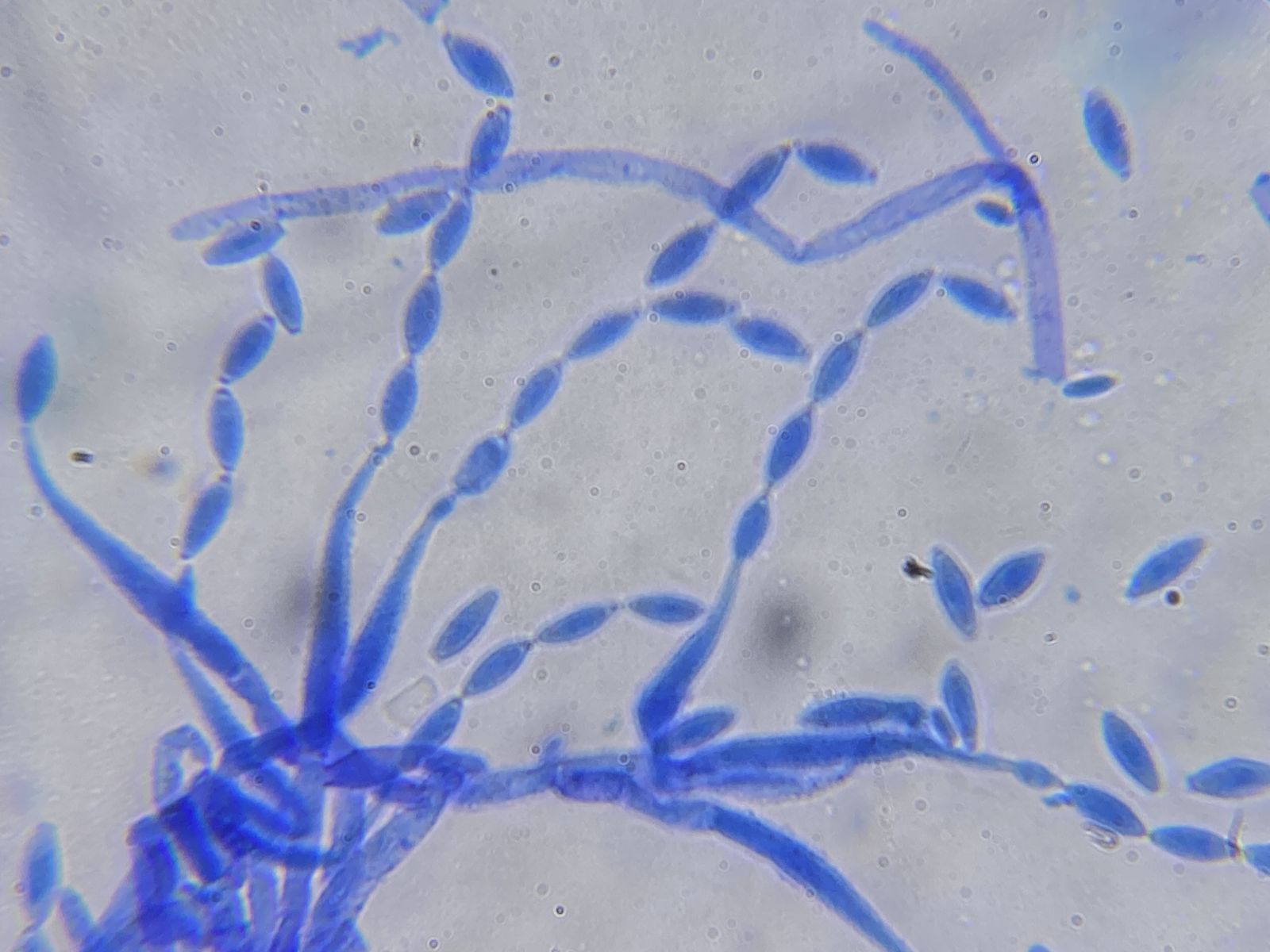 Olpitrichum (Konidien hyalin, daher färbbar mit Baumwollblau