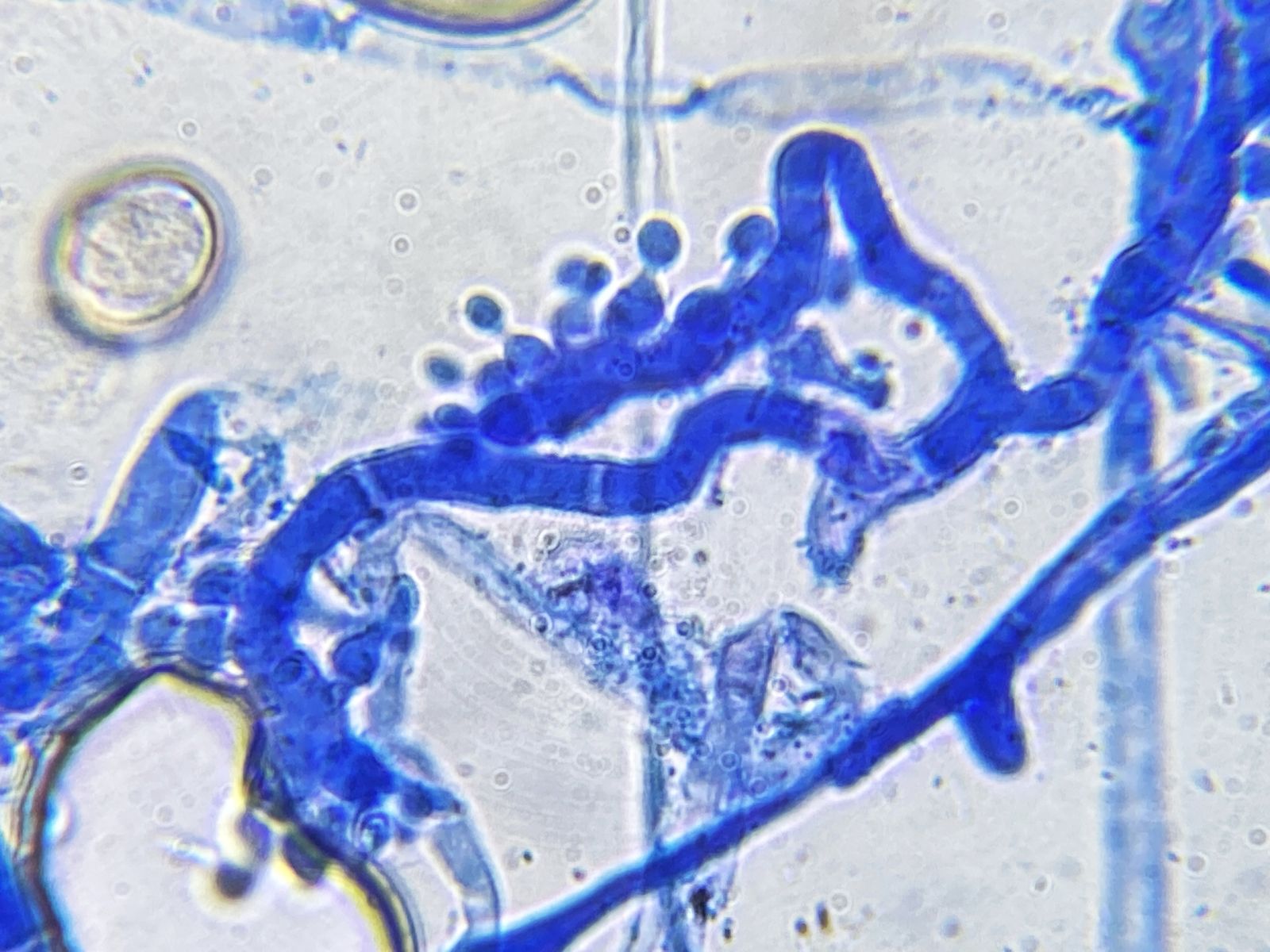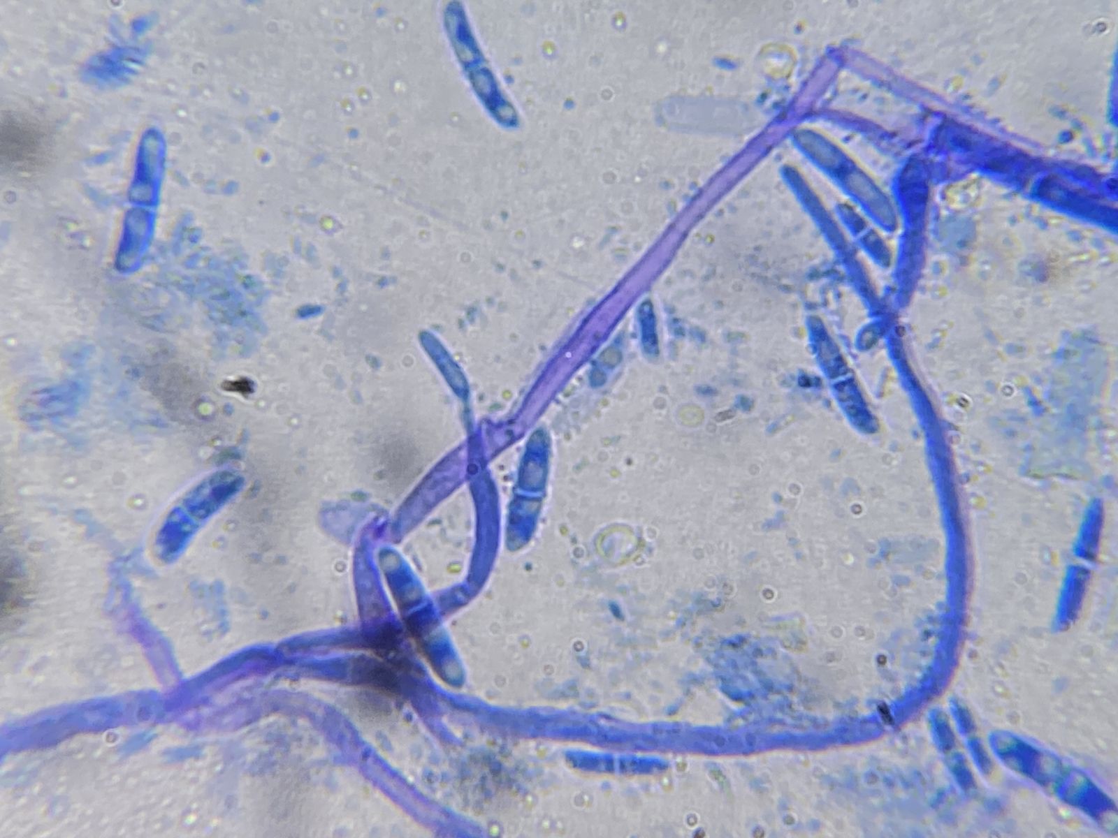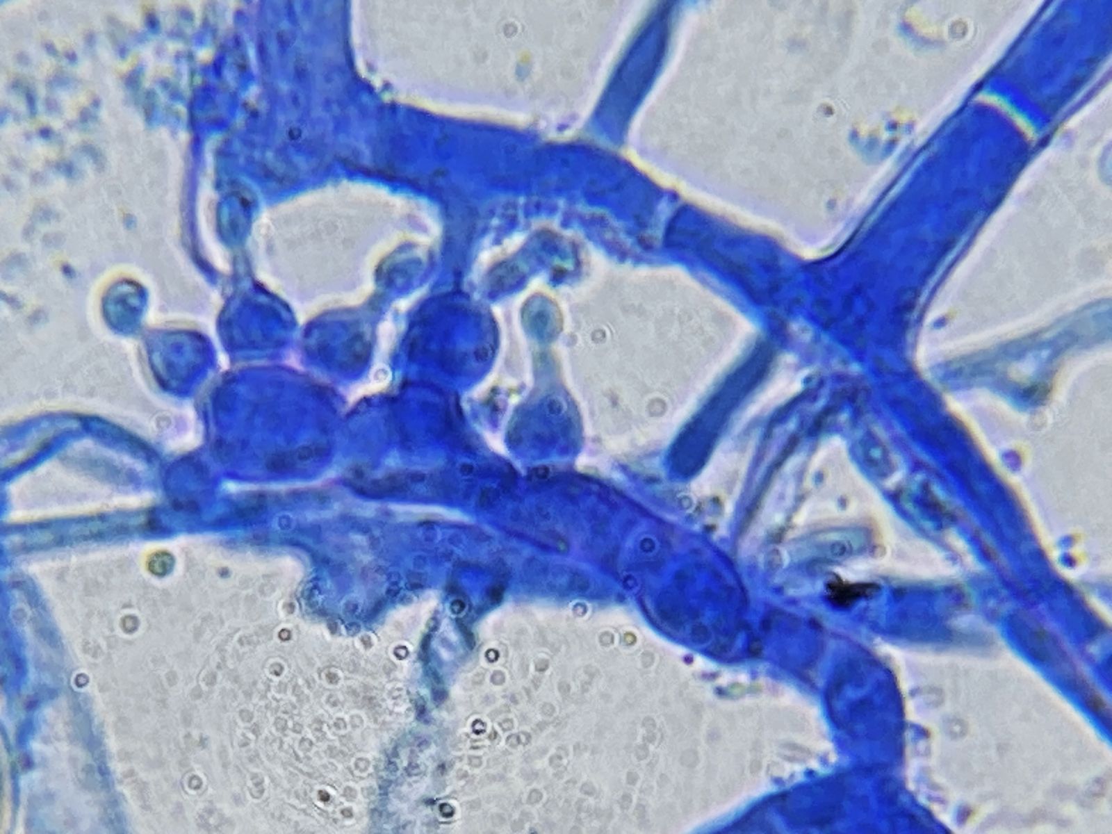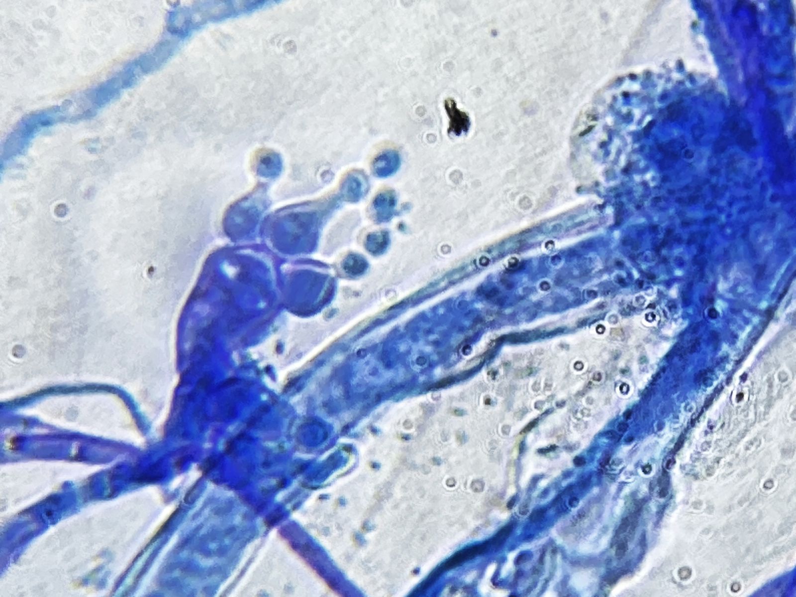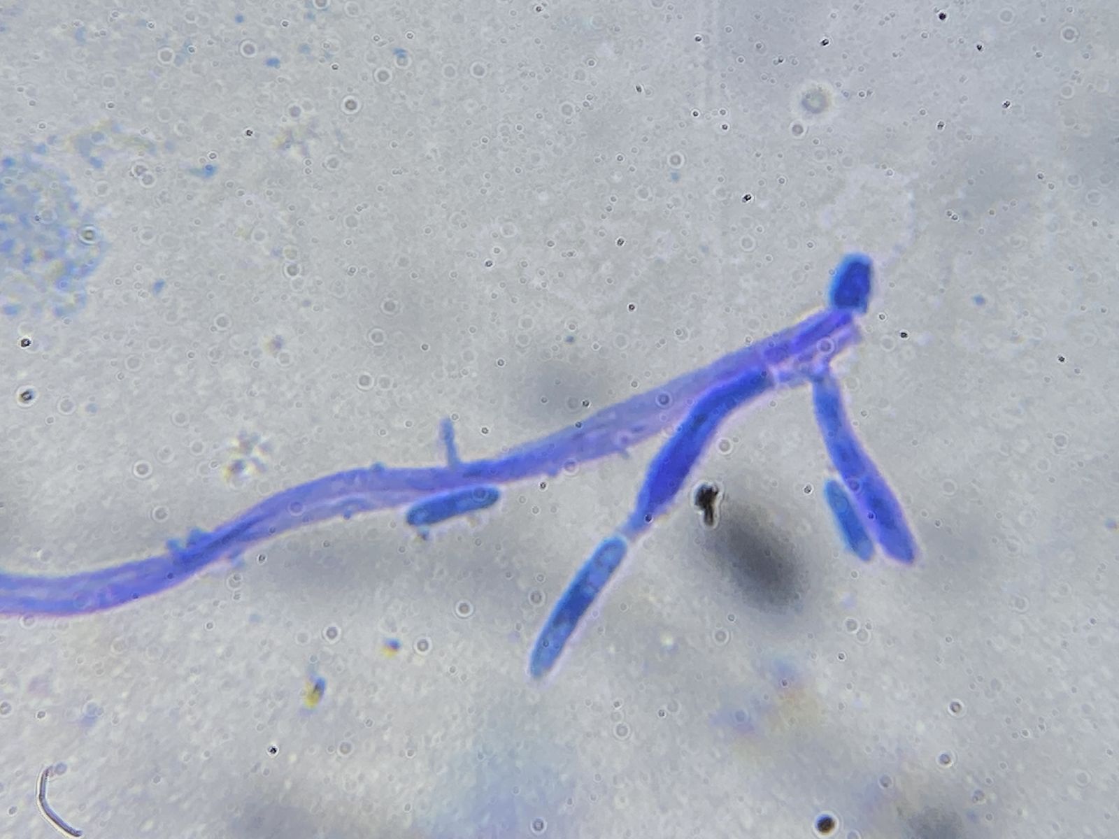 Olpitrichum (Konidien hyalin, daher färbbar mit Baumwollblau