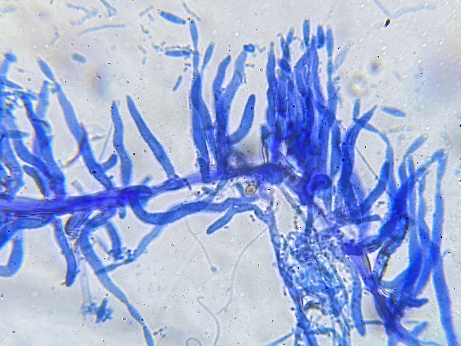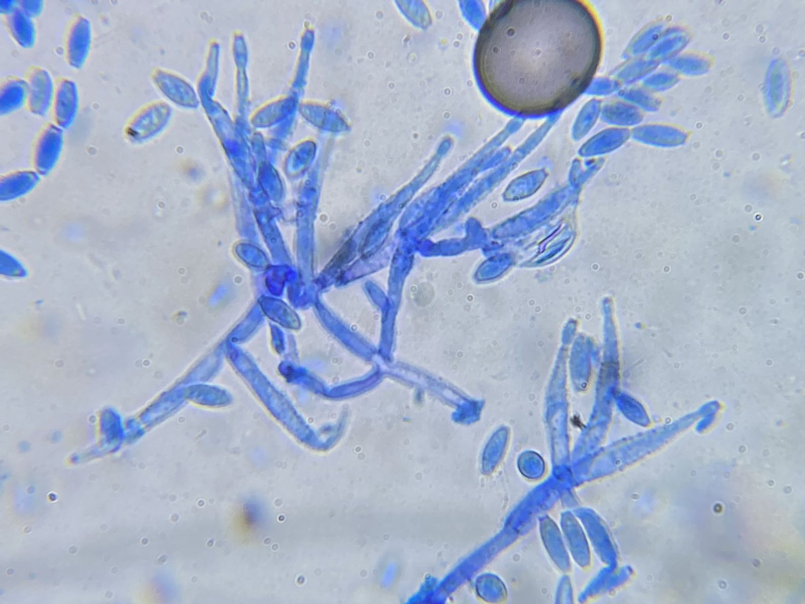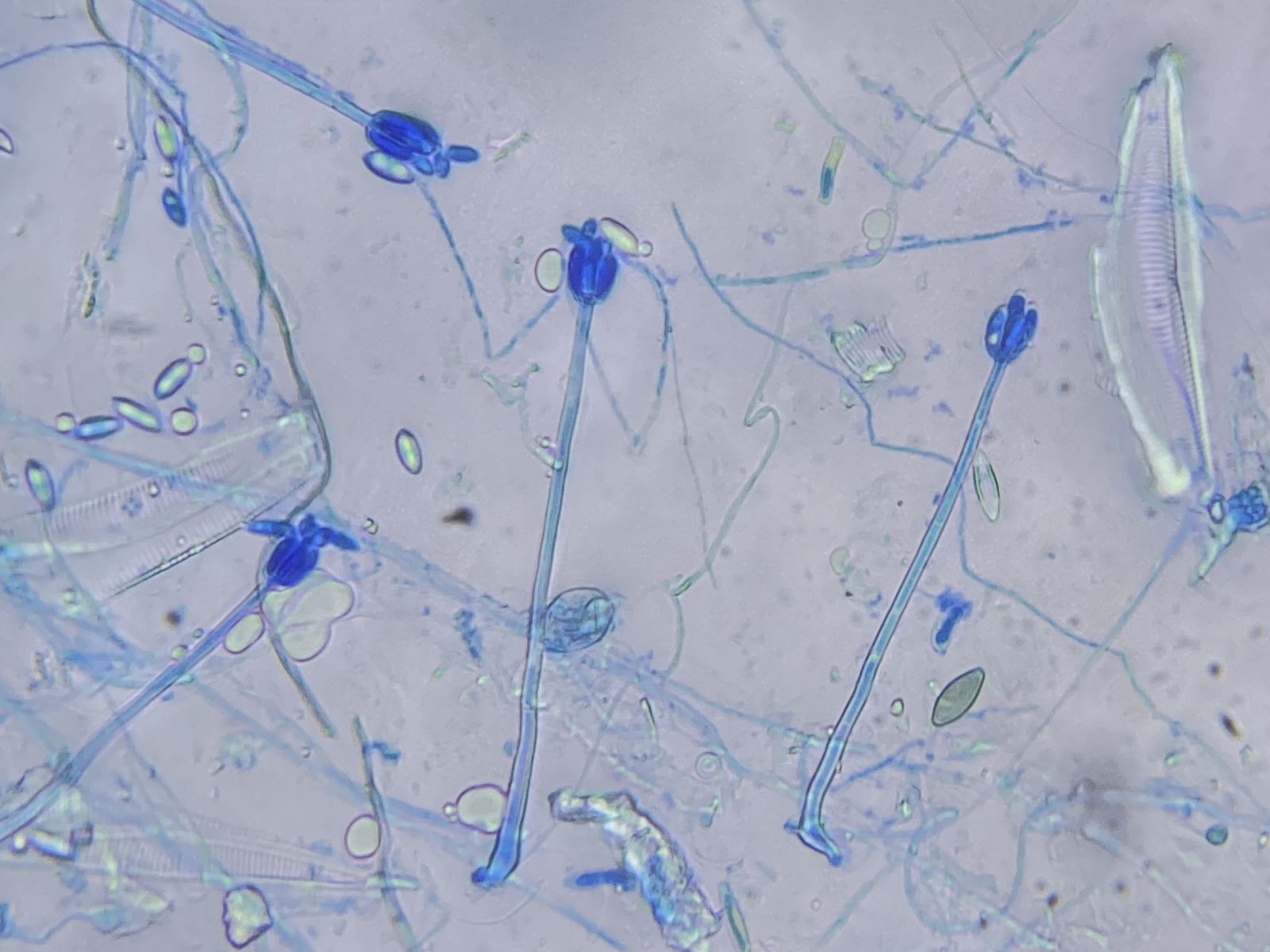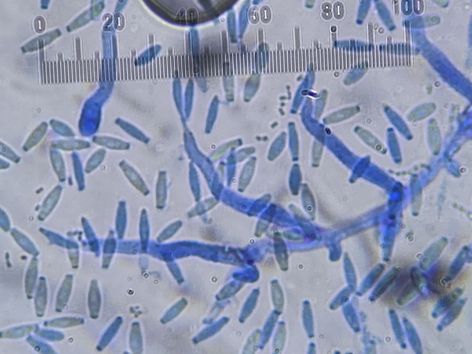 Olpitrichum (Konidien hyalin, daher färbbar mit Baumwollblau