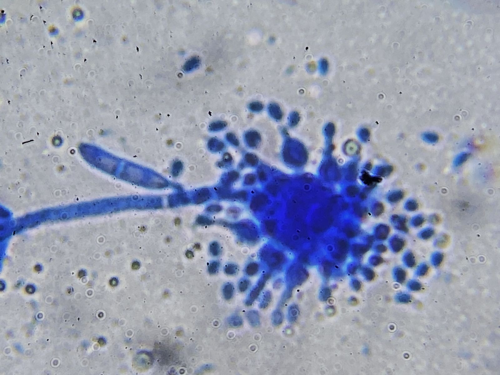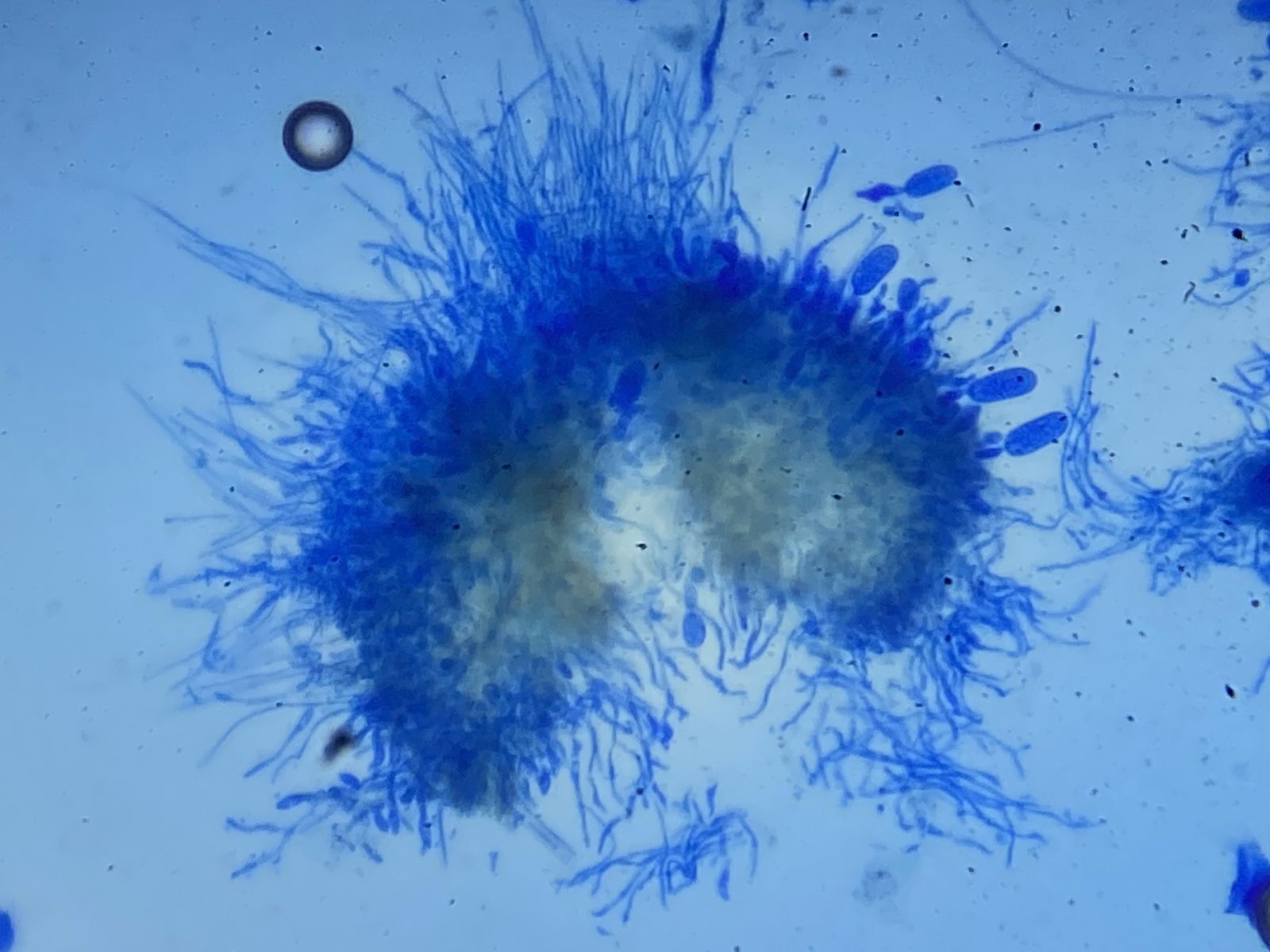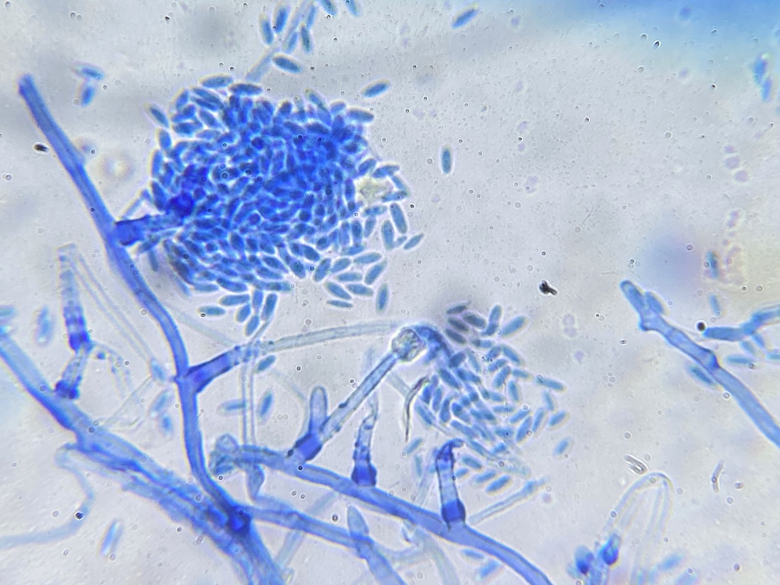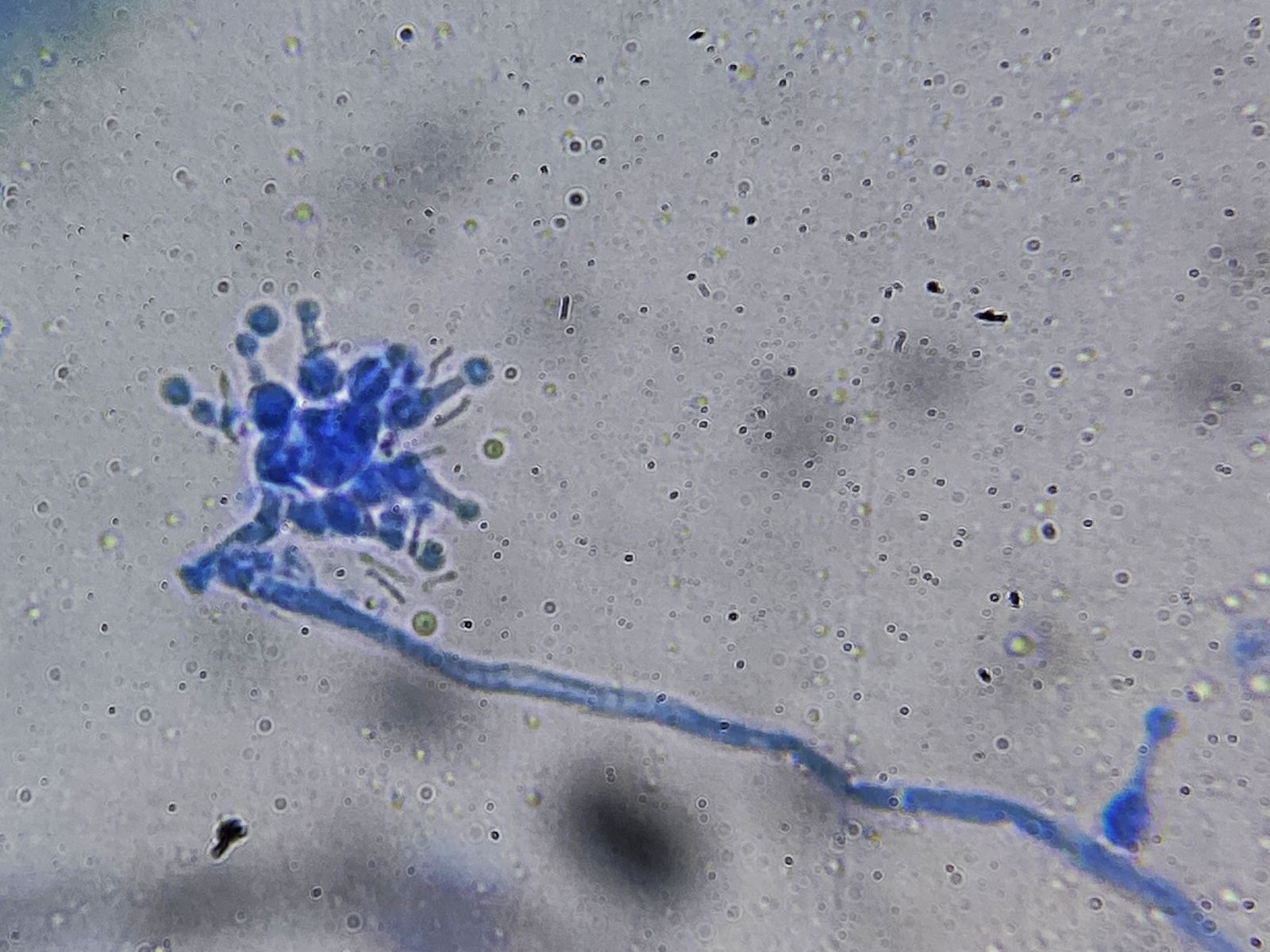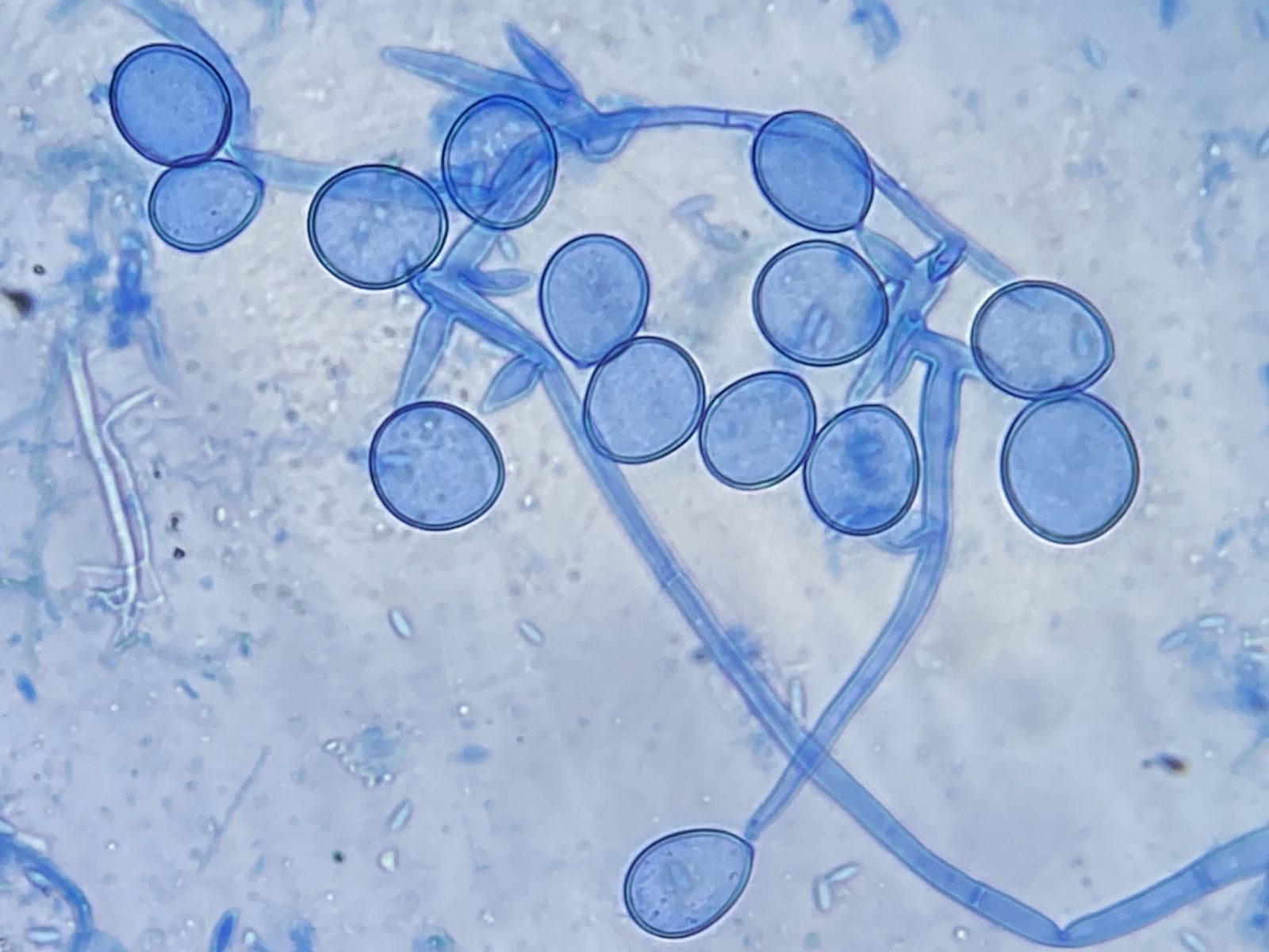 Olpitrichum (Konidien hyalin, daher färbbar mit Baumwollblau