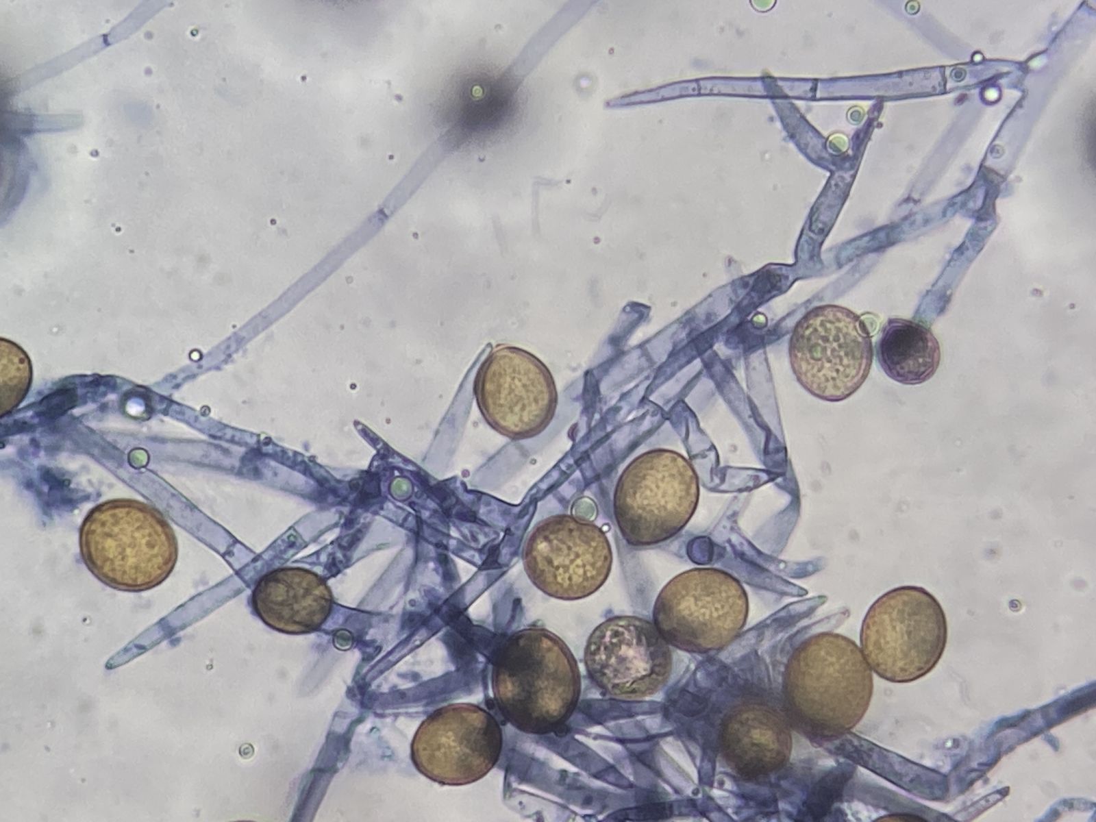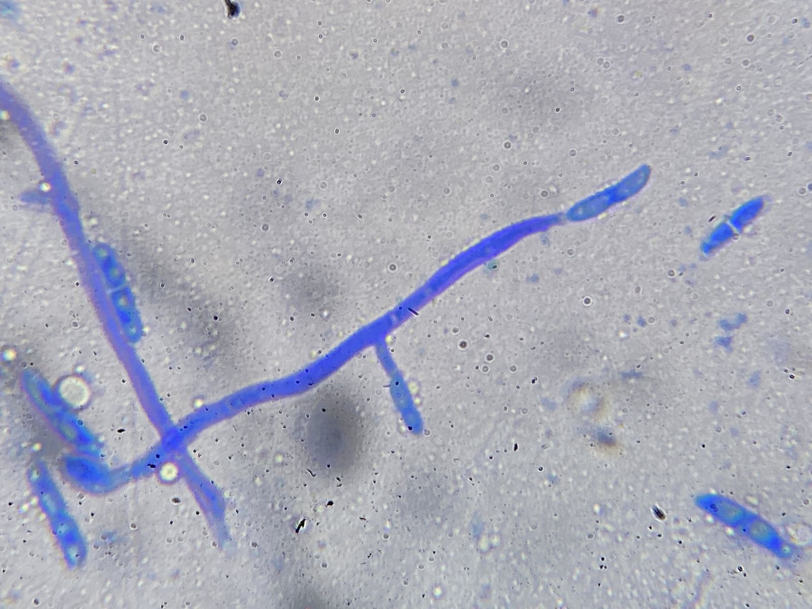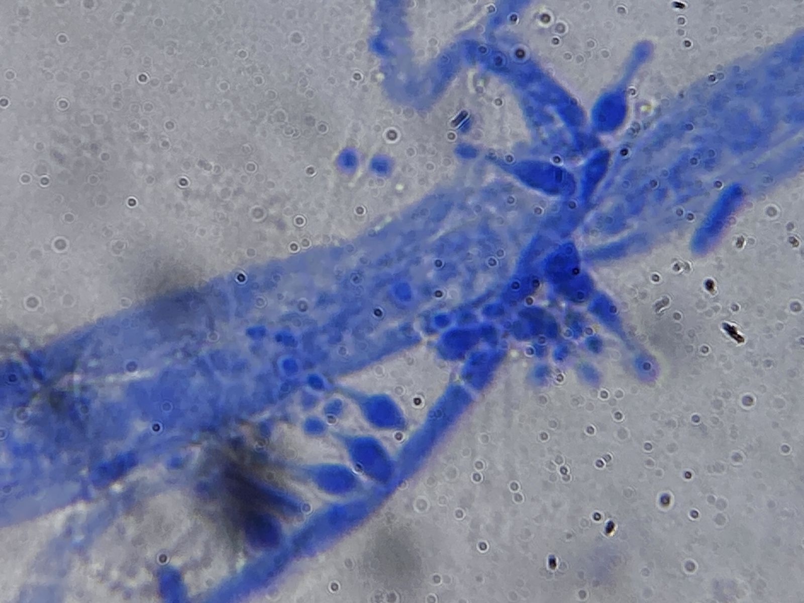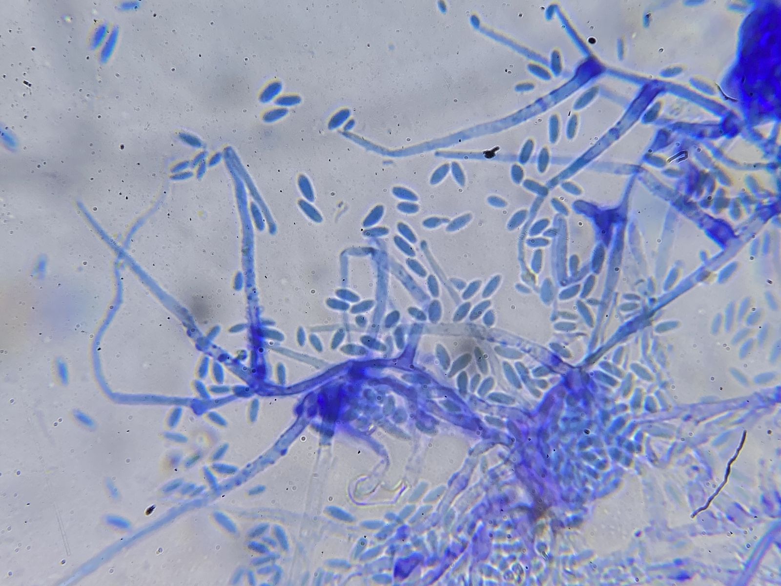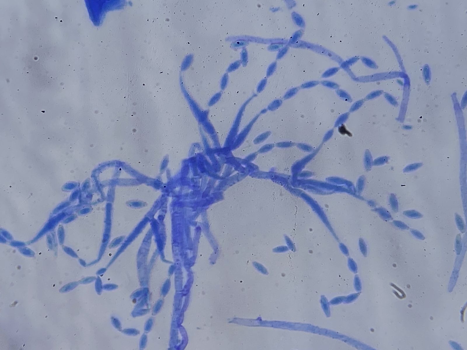 Olpitrichum (Konidien hyalin, daher färbbar mit Baumwollblau