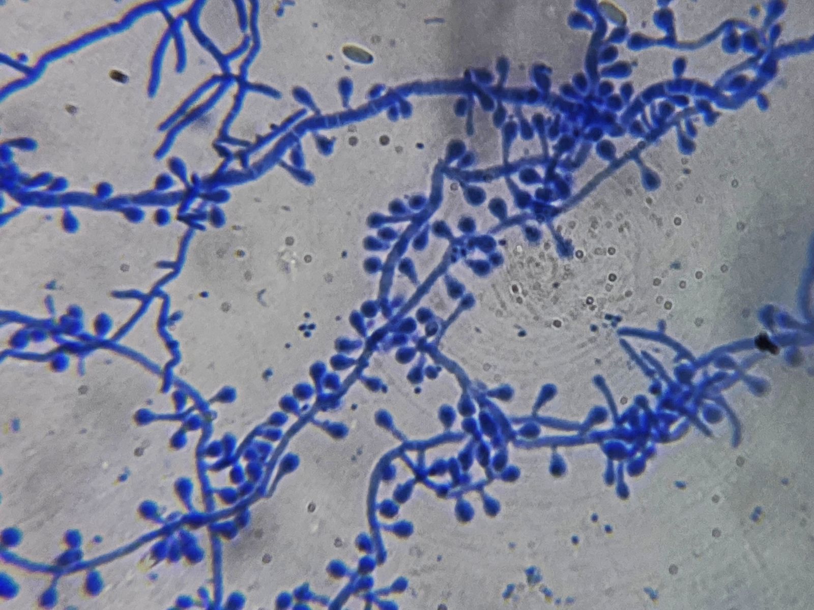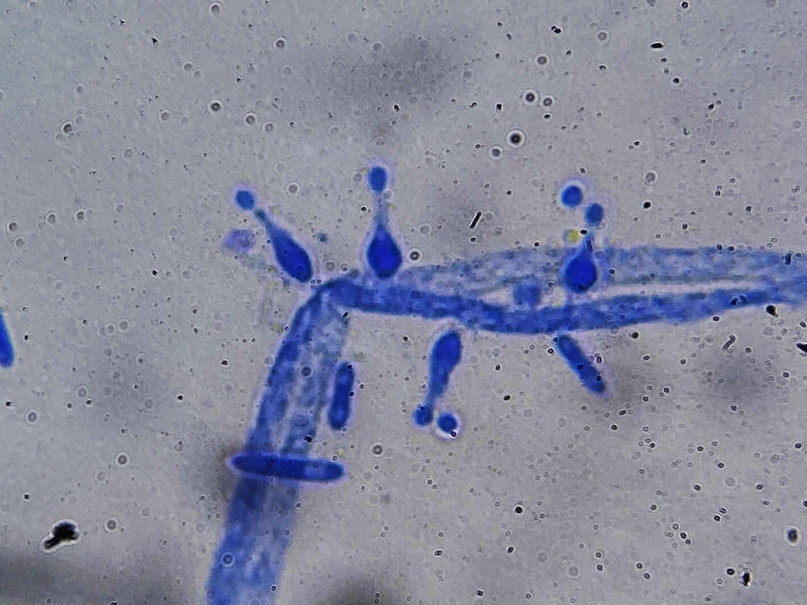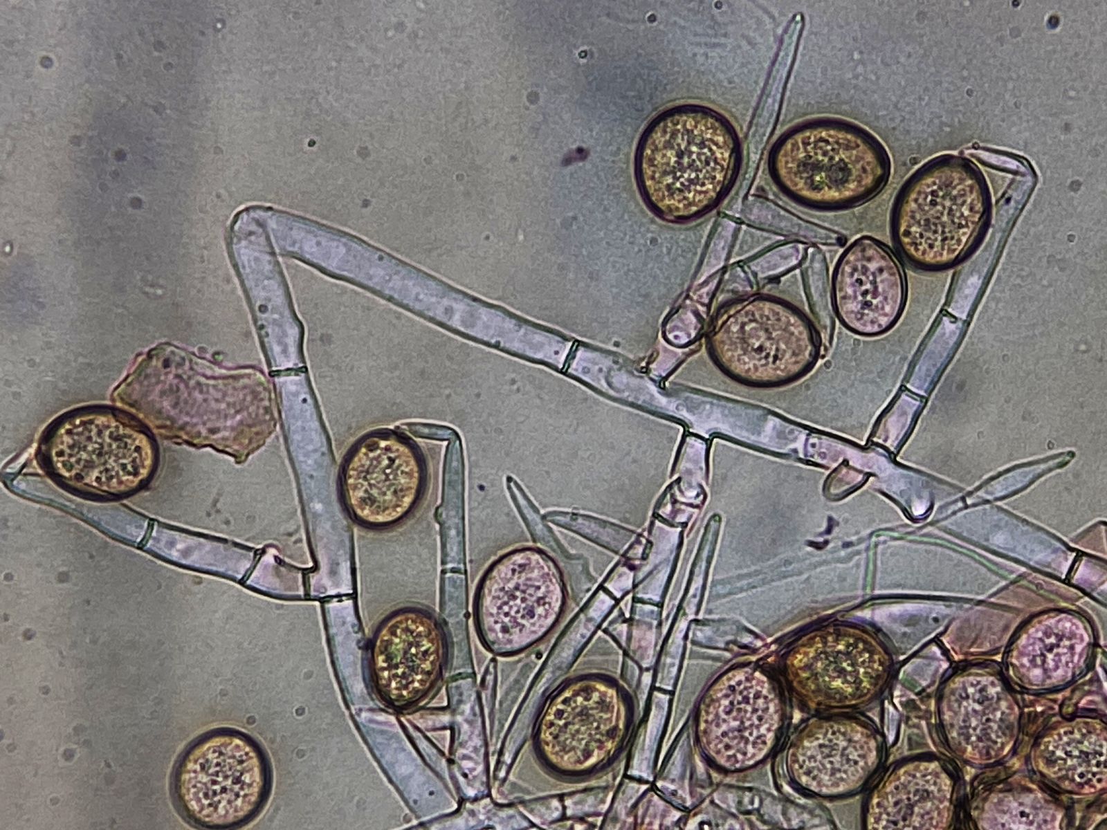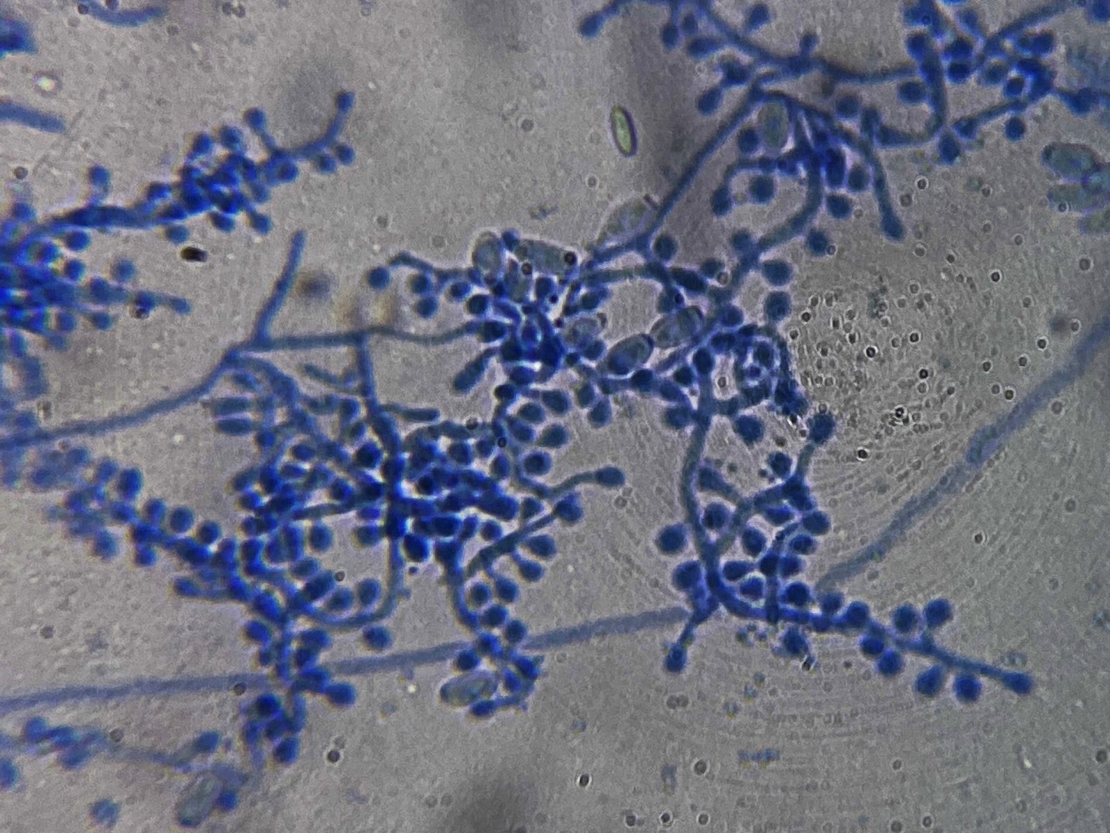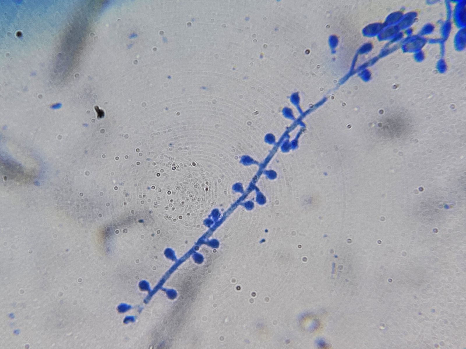 Olpitrichum (Konidien hyalin, daher färbbar mit Baumwollblau