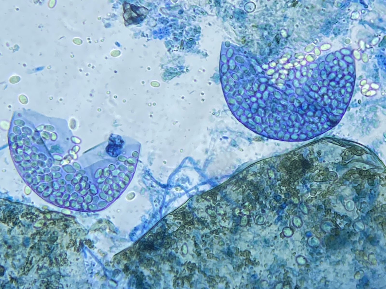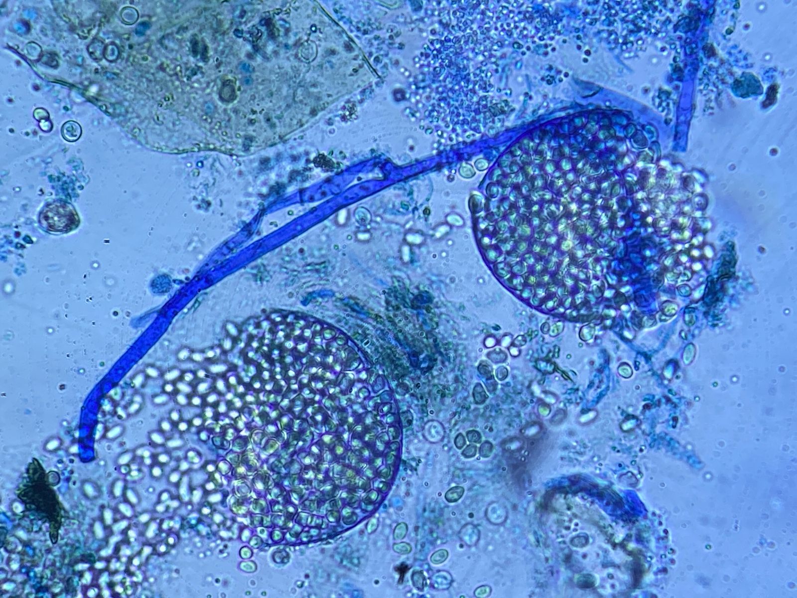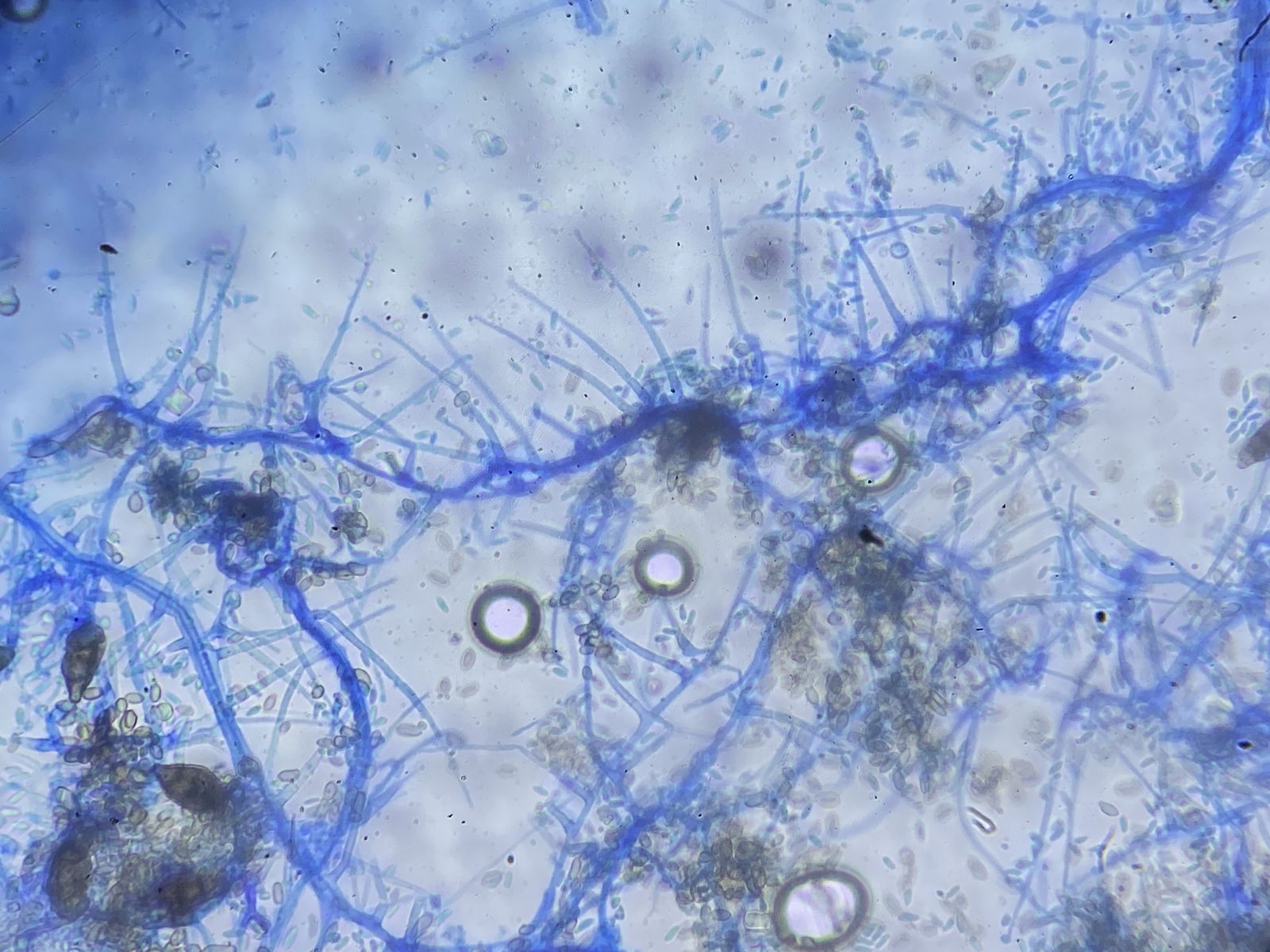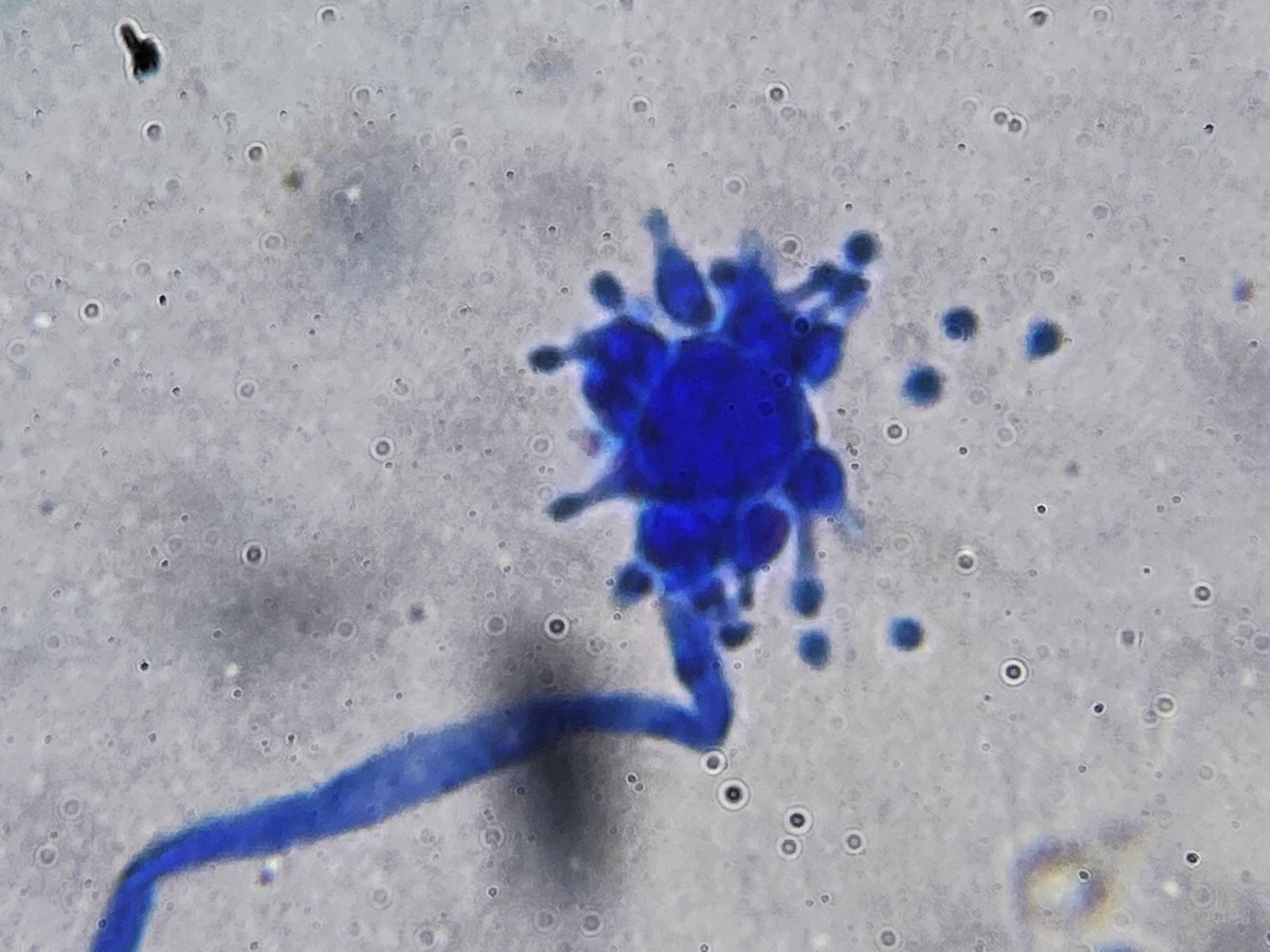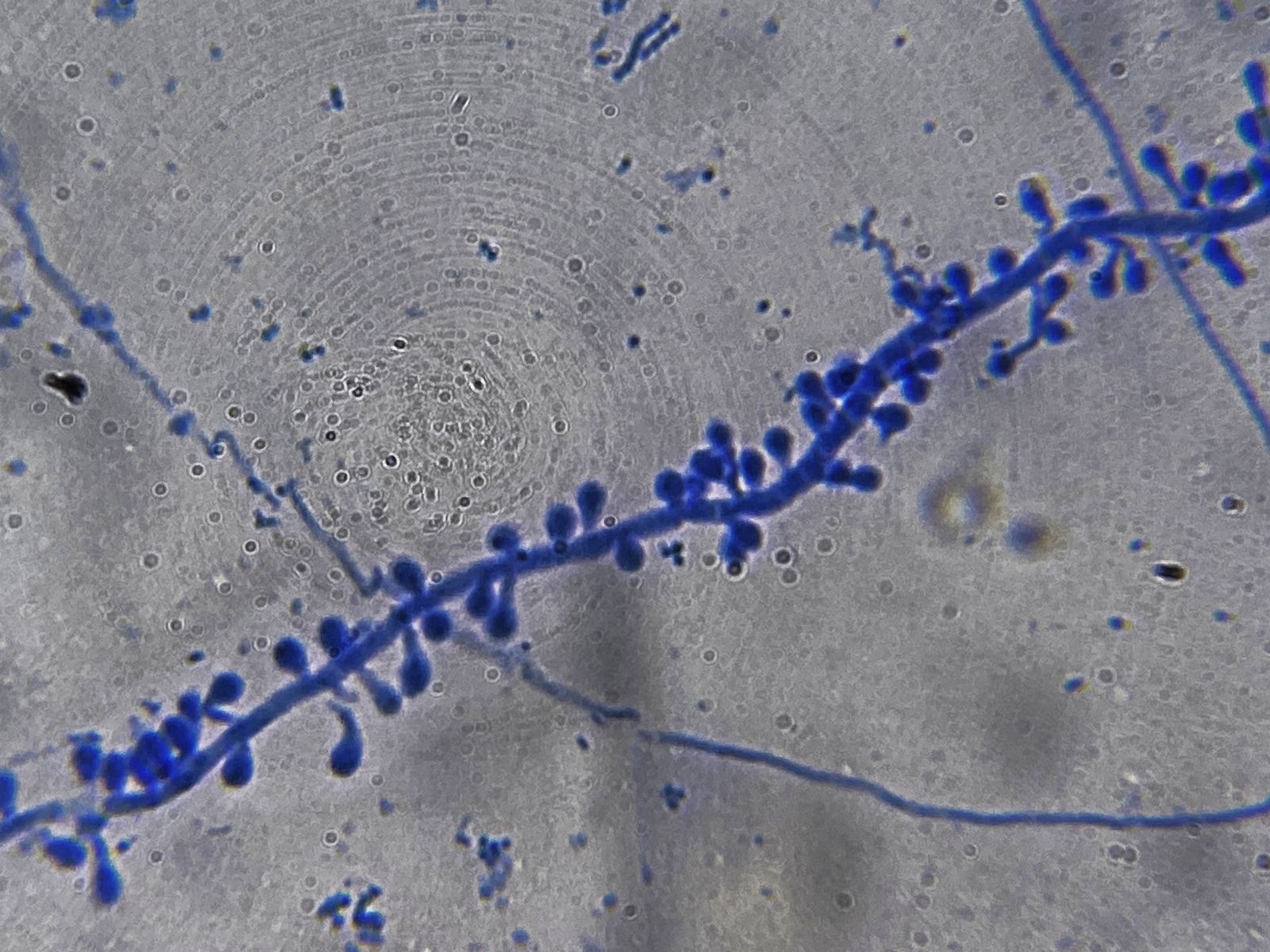 Olpitrichum (Konidien hyalin, daher färbbar mit Baumwollblau