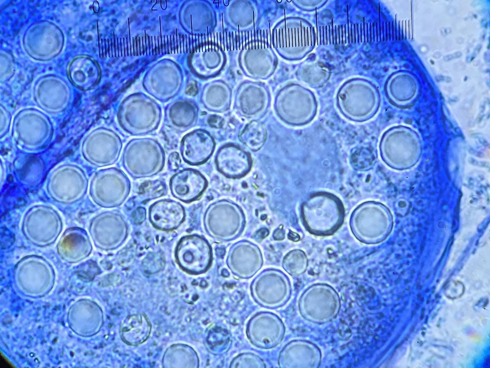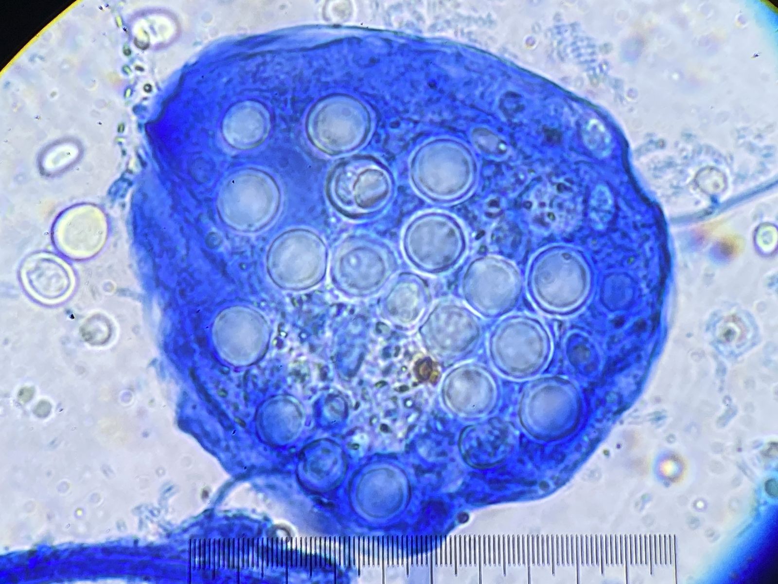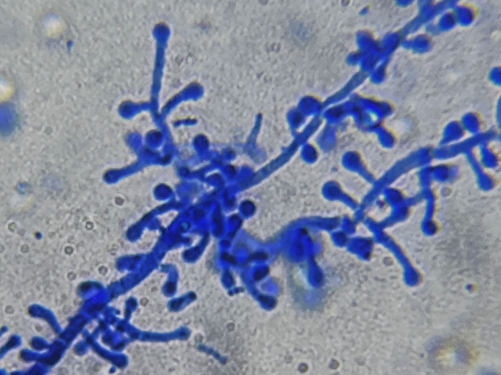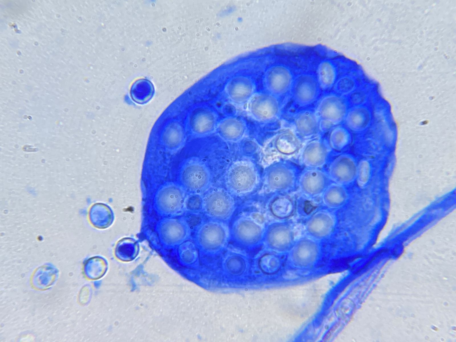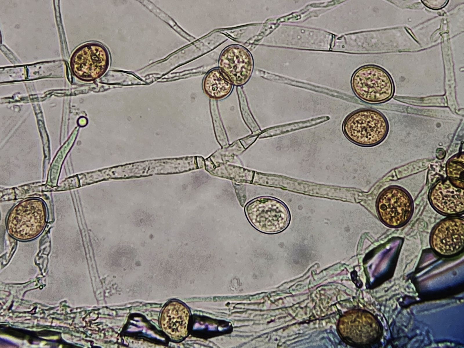 Olpitrichum (Konidien hyalin, daher färbbar mit Baumwollblau
