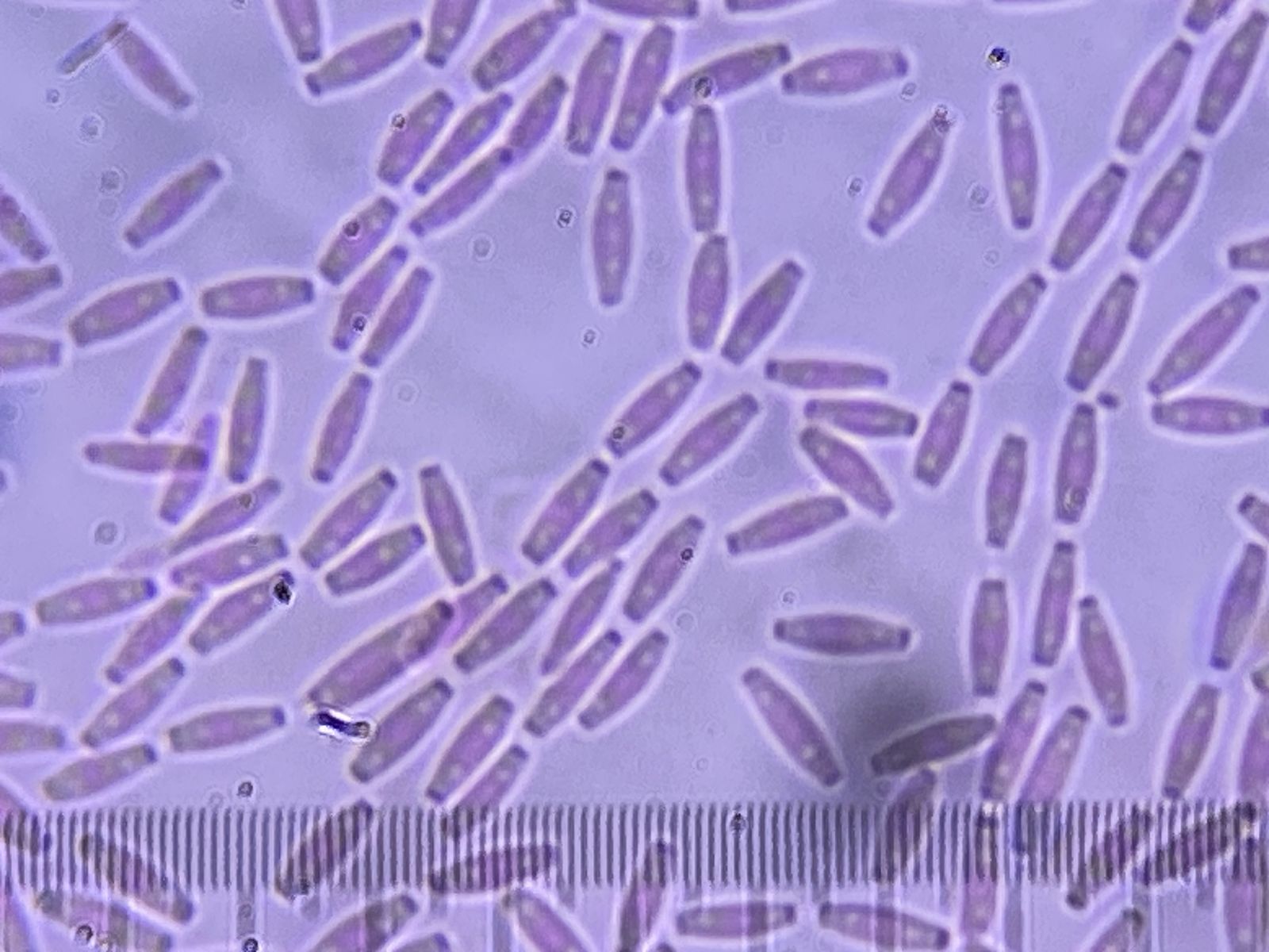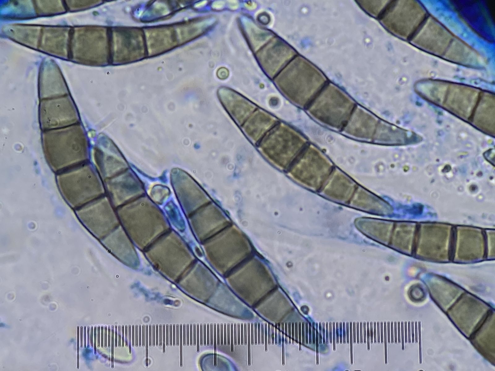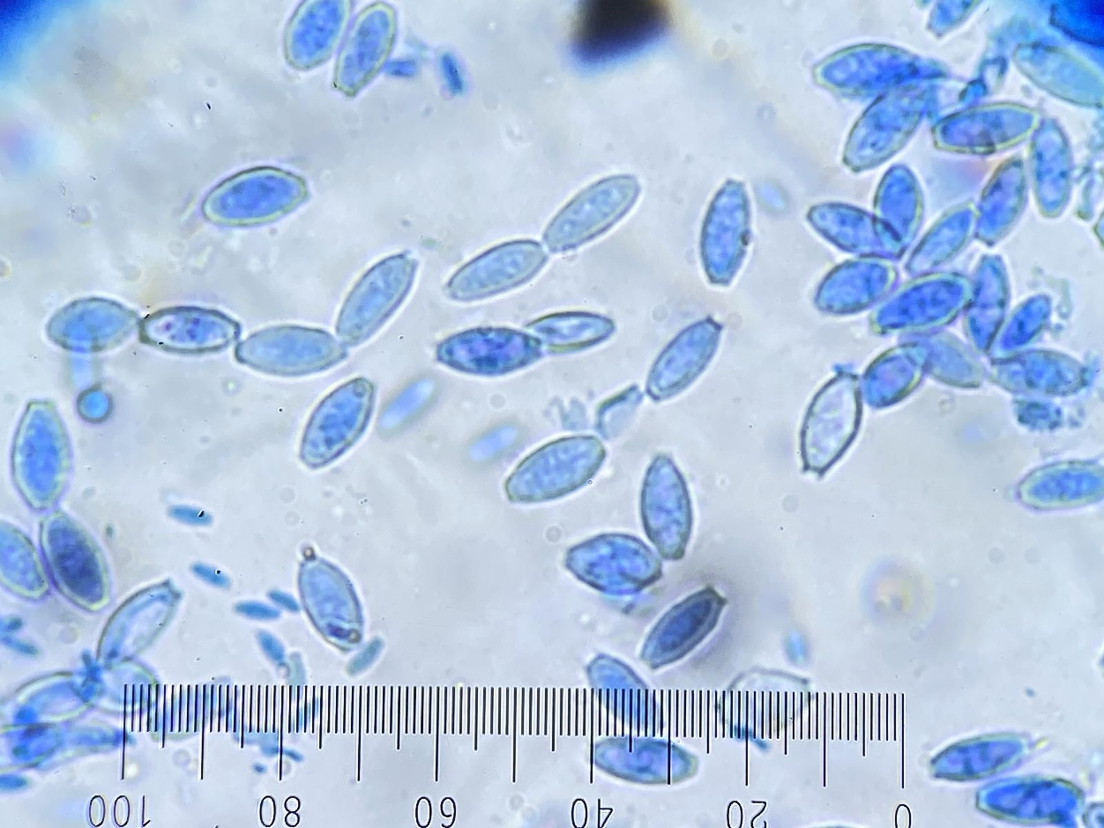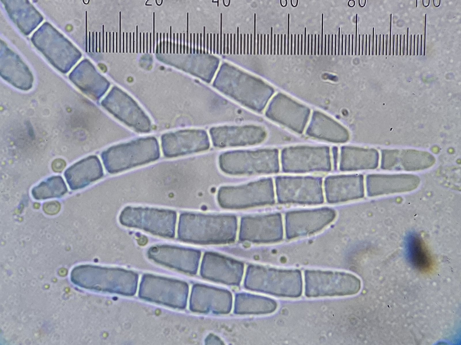 + Konidien hyalin, daher färbbar mit Baumwollblau + Milchsäure)