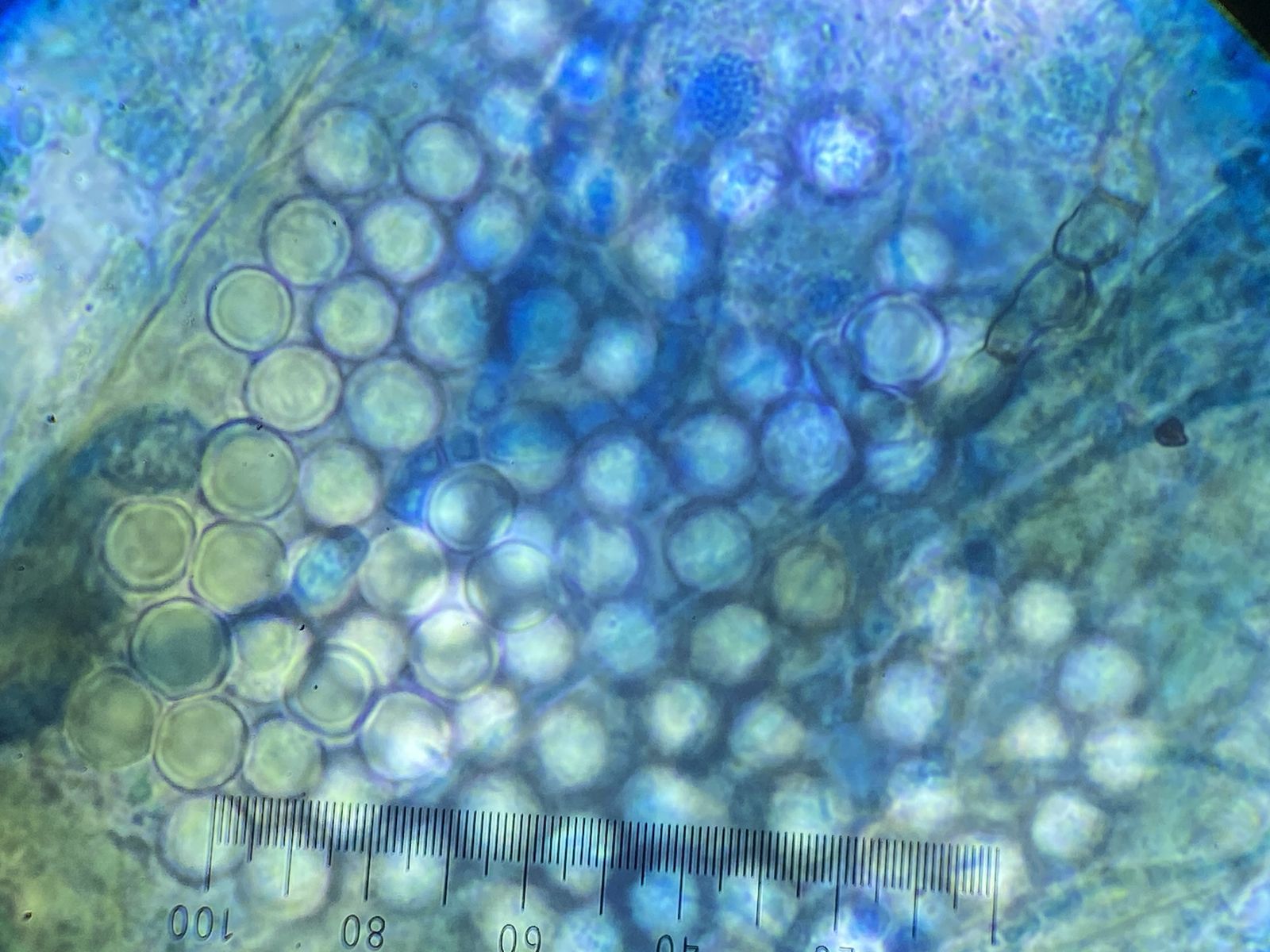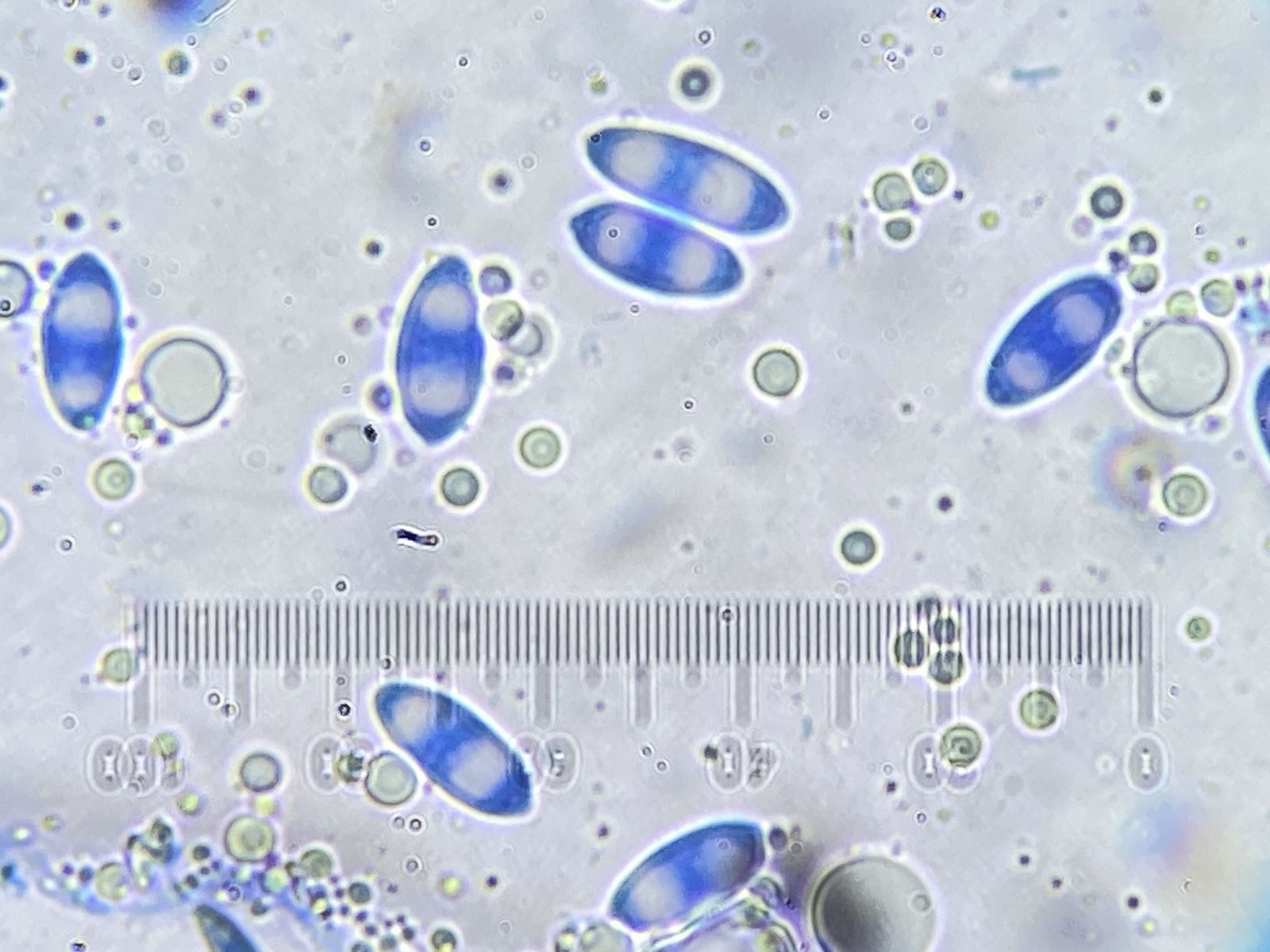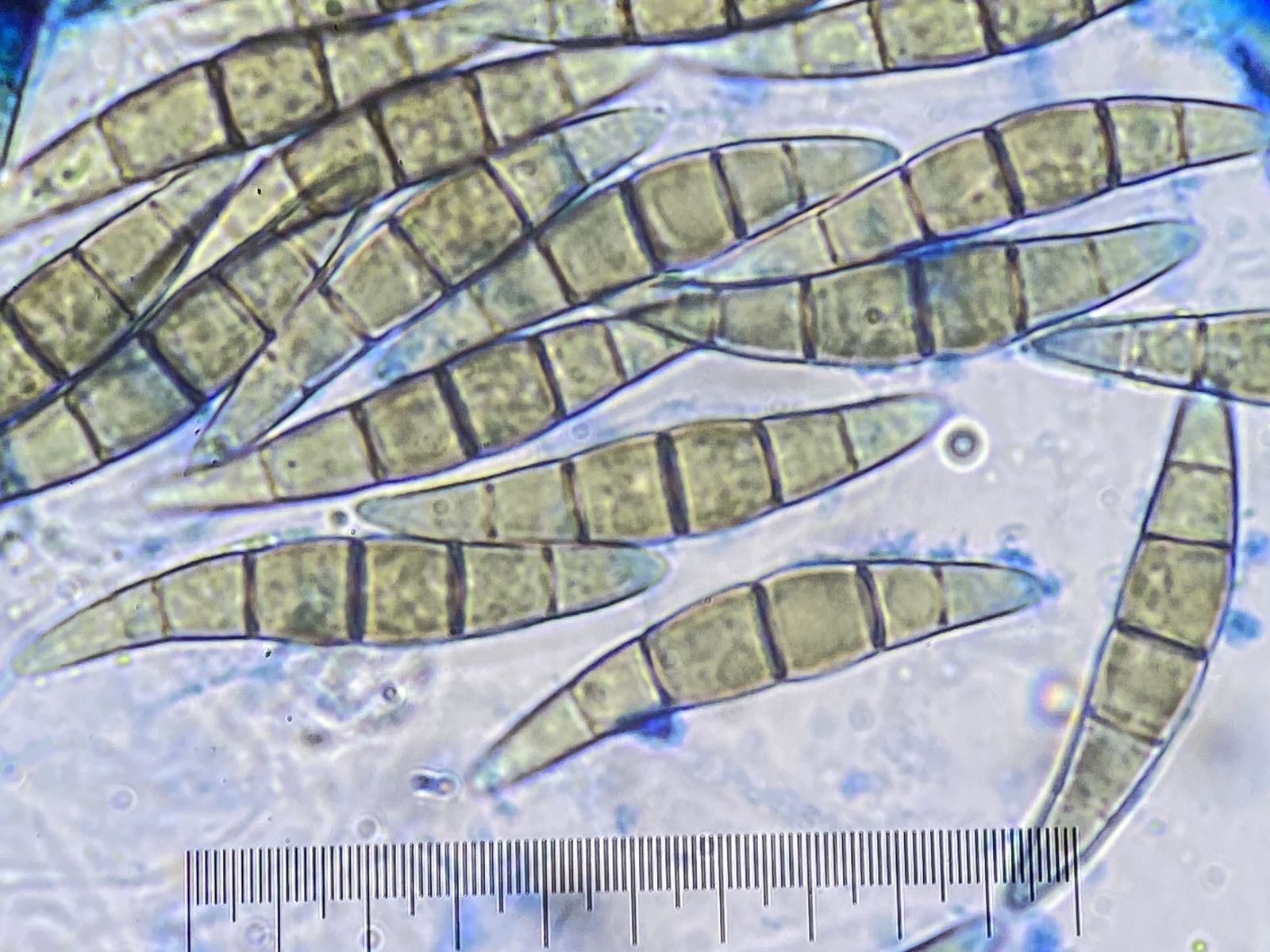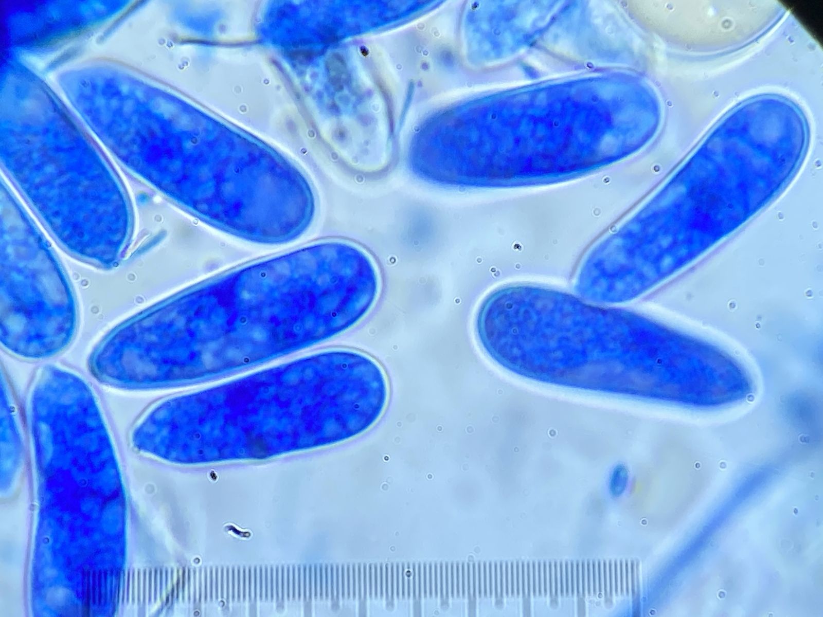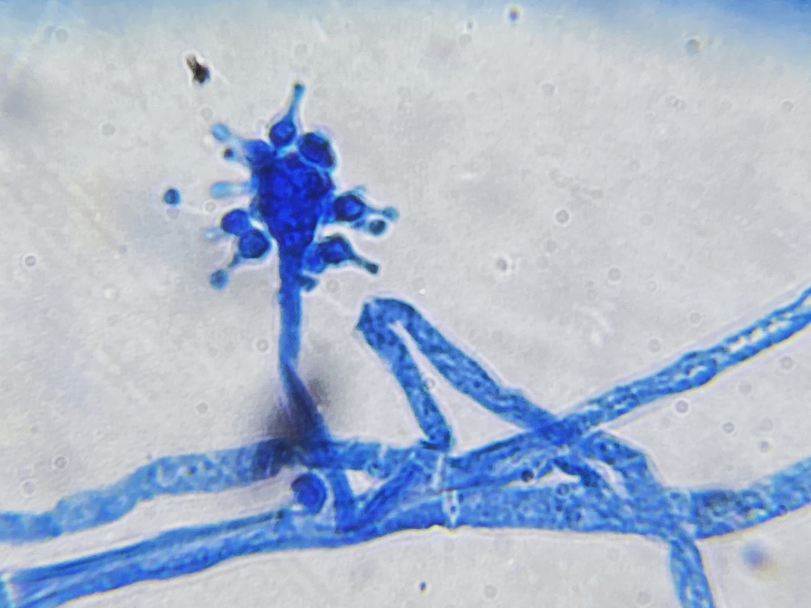 + Konidien hyalin, daher färbbar mit Baumwollblau + Milchsäure)