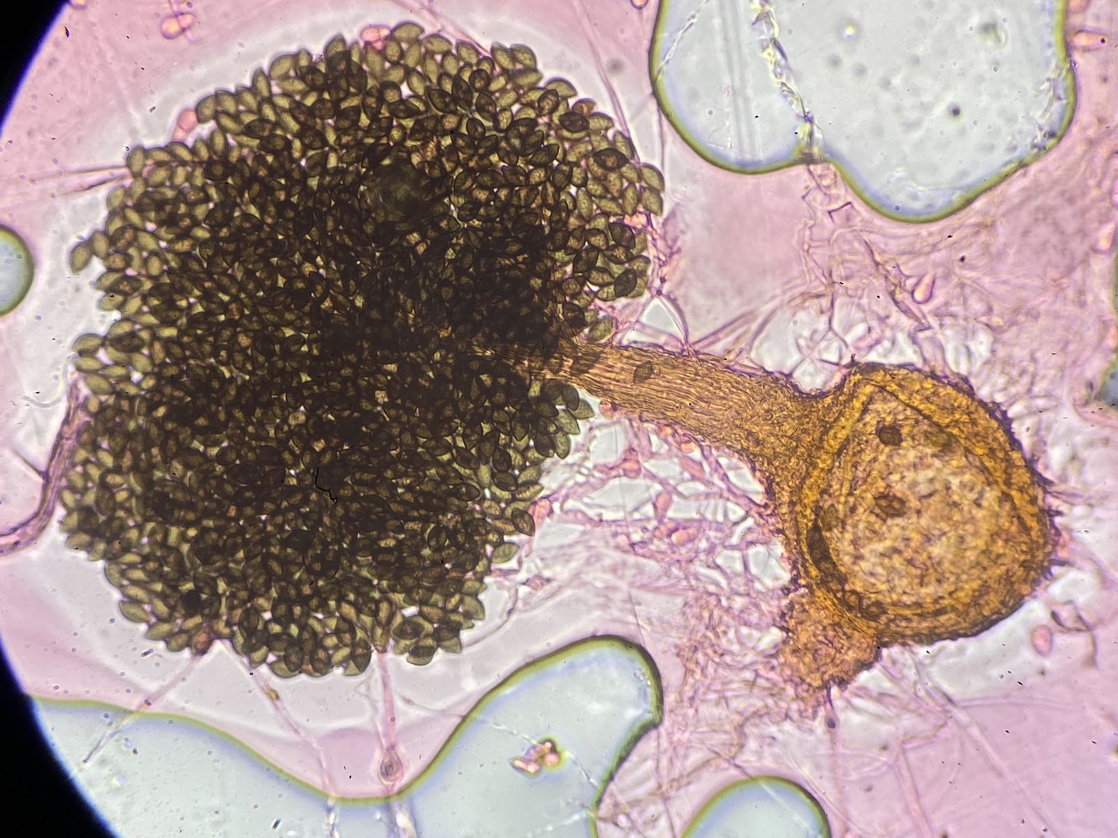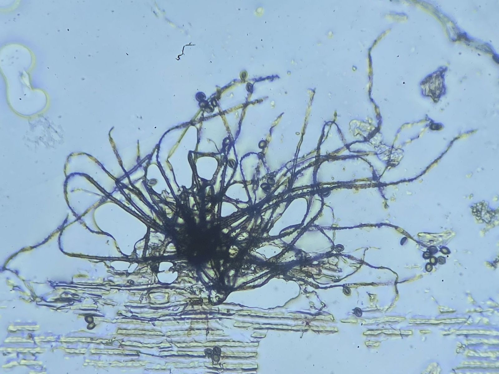 jetzt habe ich schwarze und weiße Köpfchen jeweils separat gepickt und mikroskopiert. Ich fand keinen Unterschied. Allerdings irritert mich etwas. Diesmal sah ich keinerlei Septen bei den Konidien der beiden Formen, während oben doch teilweise welche deutlich zu sehen sind. Ich kann mir das nur mit dem Alter erklären. Oder habt Ihr dafür eine plausible Erklärung. Die Sporen/Konidien sind in der Größe sehr unterschiedlich: 9-17 x 3-3,5 µm