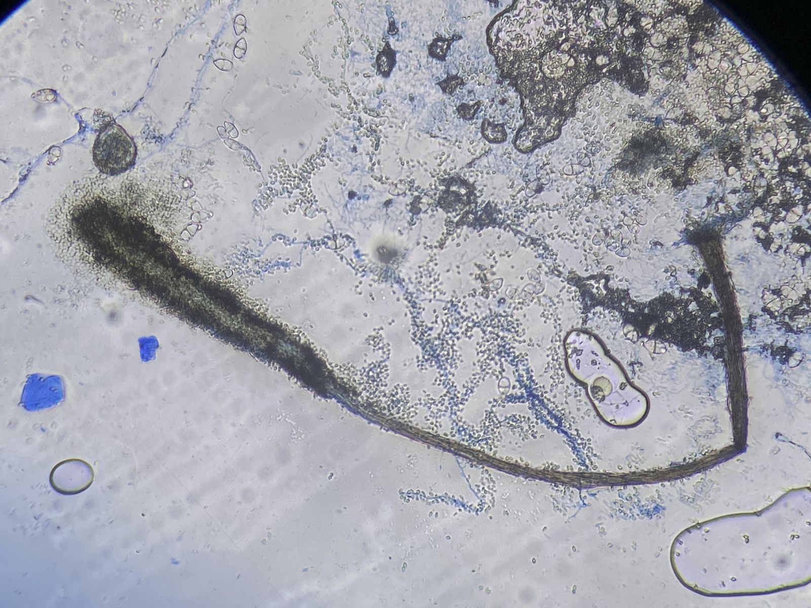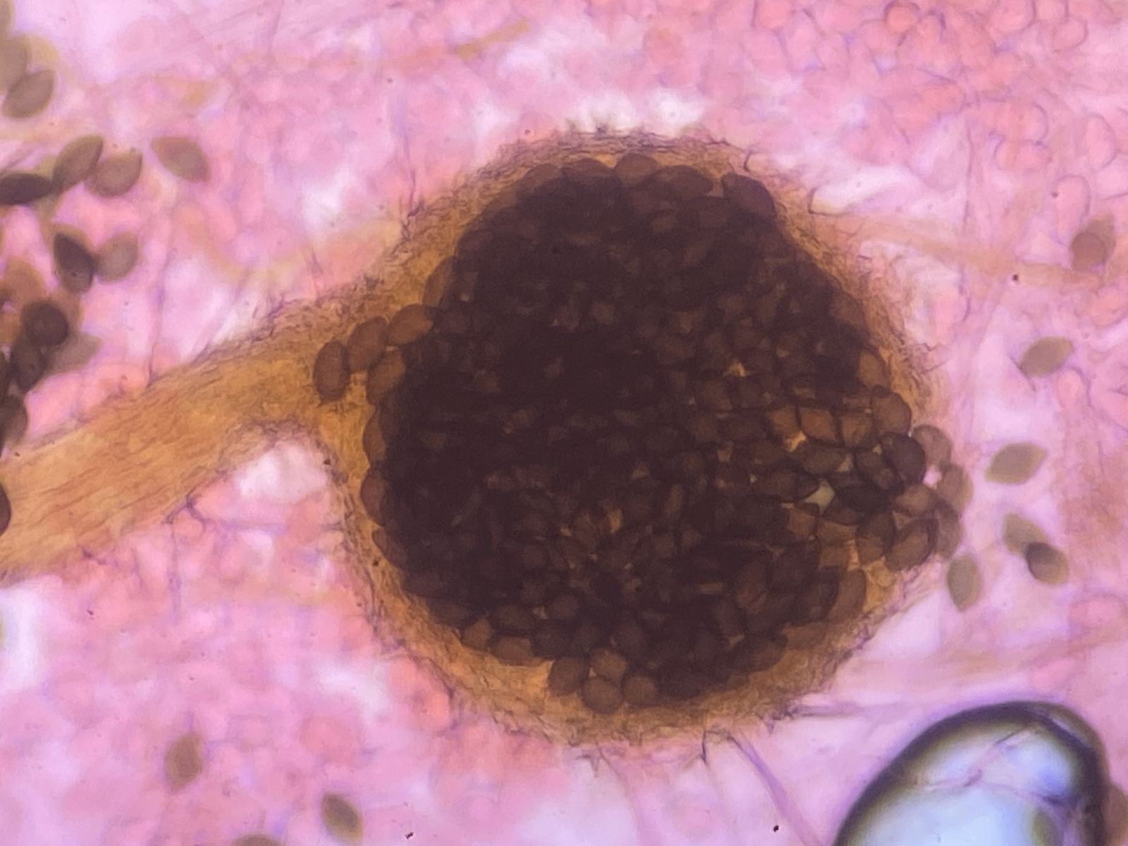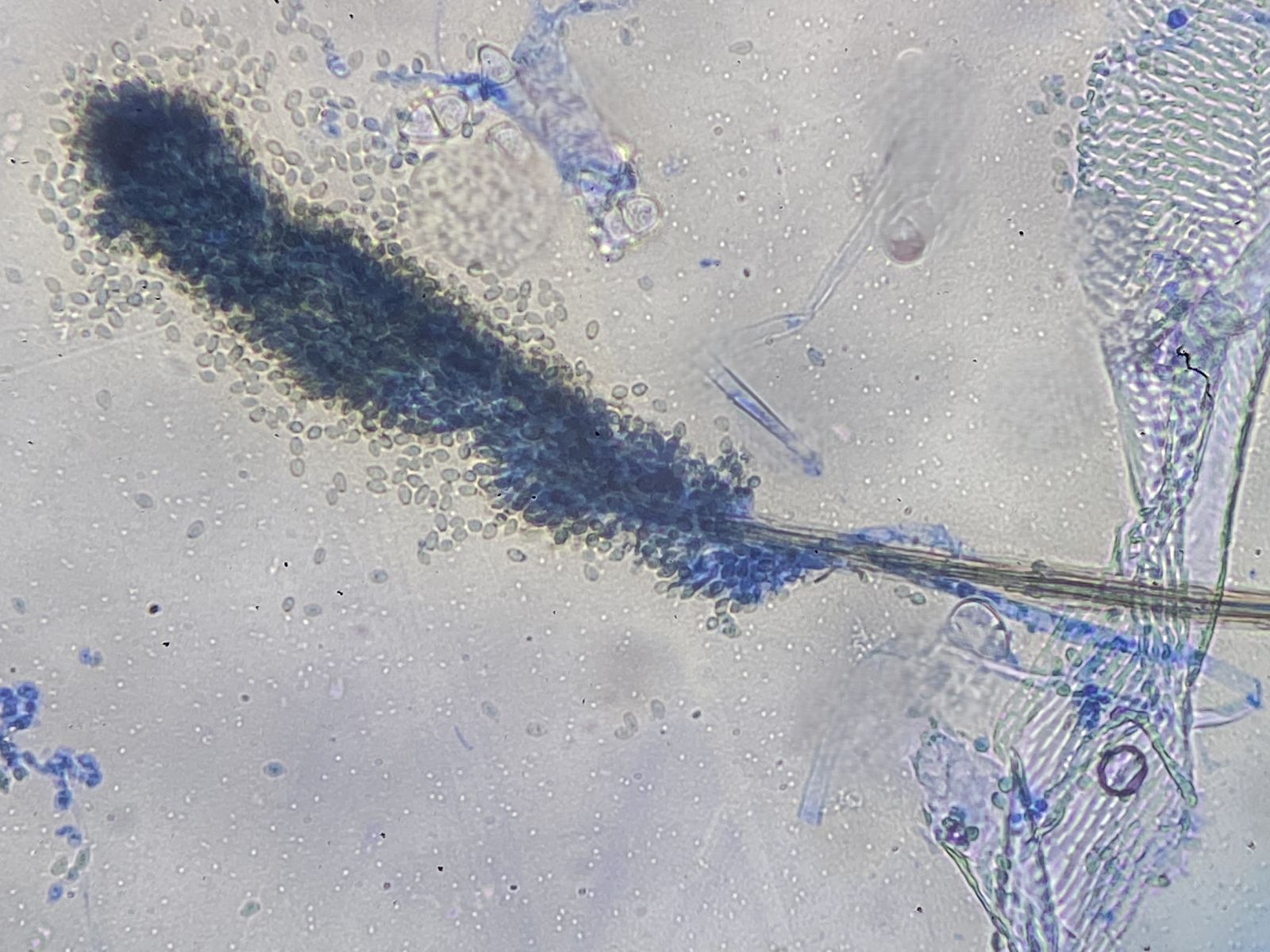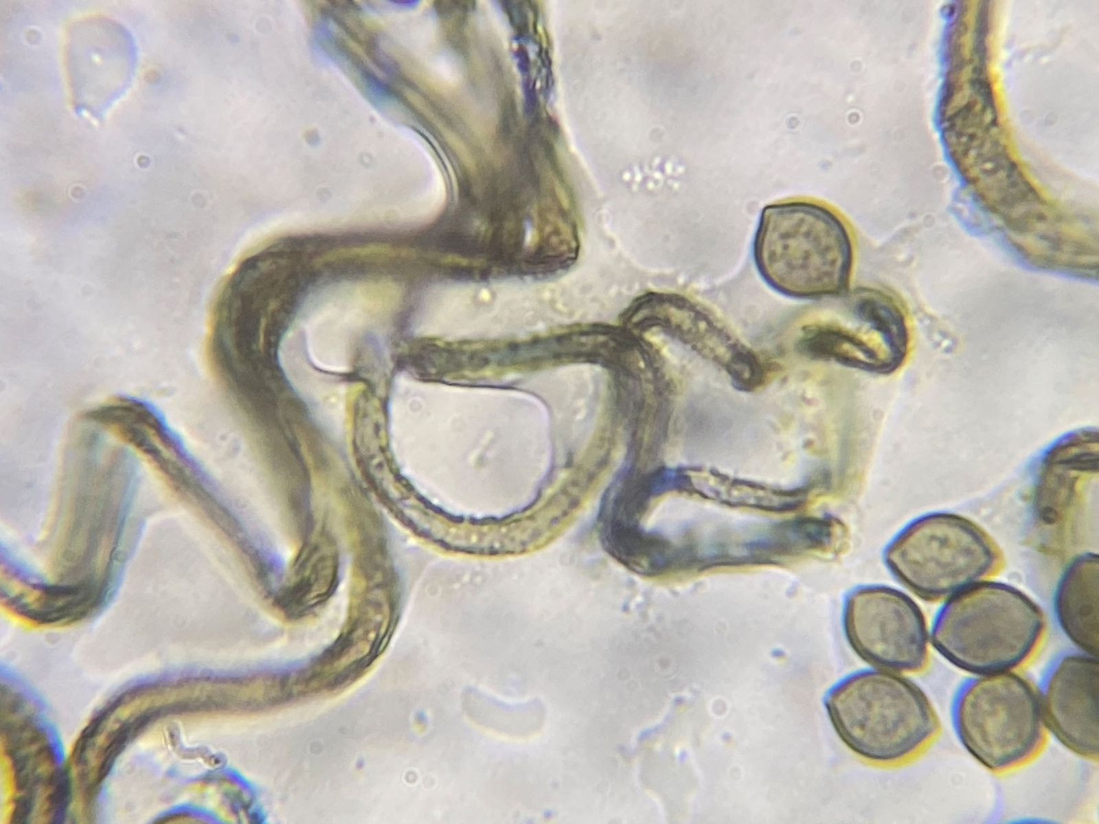 Allerdings waren in den Haaren einer anderen Haselnuss einzelne runde, hellere Konidien. Diese zeige in im nächsten Beitrag.