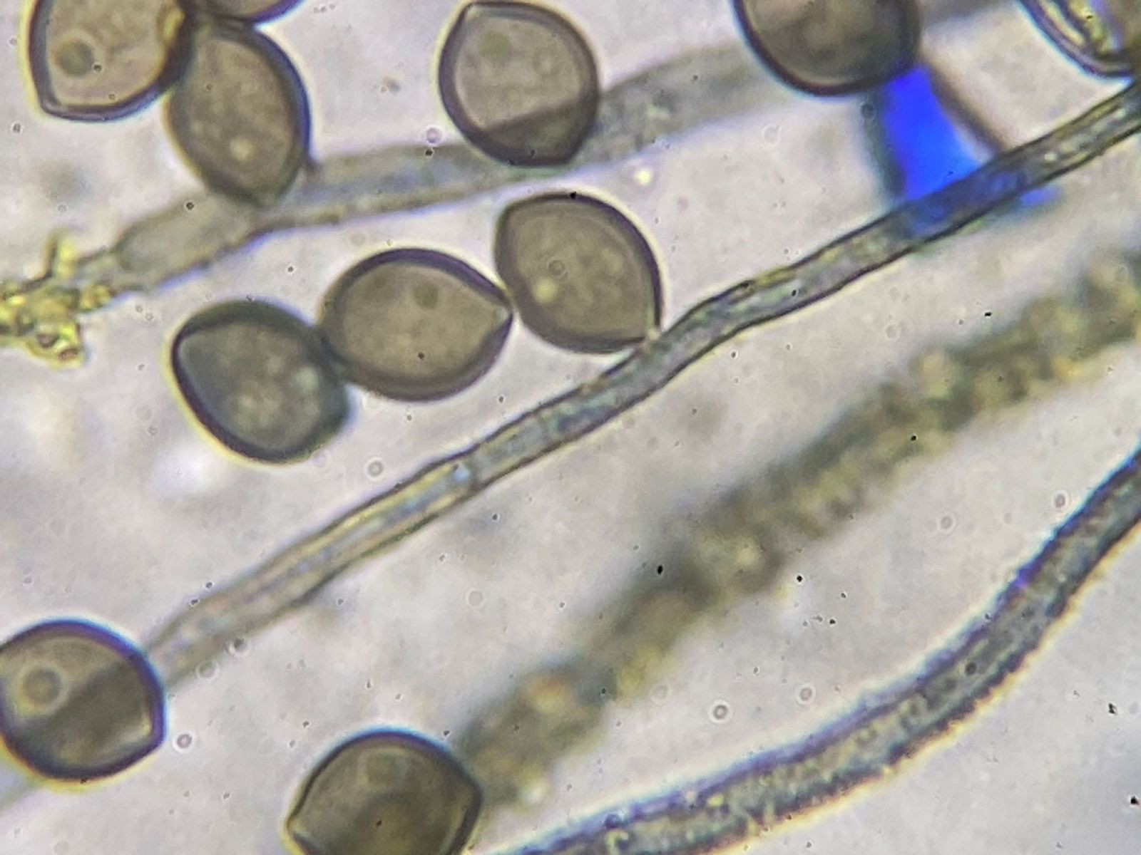 kann man einen Ascomyceten nur aufgrund seines Ascomas bestimmen? Ascoma ca. 200 µm, Asci ca. 22-35 x 2-3 µm, Ascosporen ca. 3,5–5 x 2 µm. Auf dem vorletzten Foto sind 3 reife Sporen zu sehen, sie sind evtl. einmal septiert. Das Ascoma scheint von einer Schleimhülle umgeben zu sein.