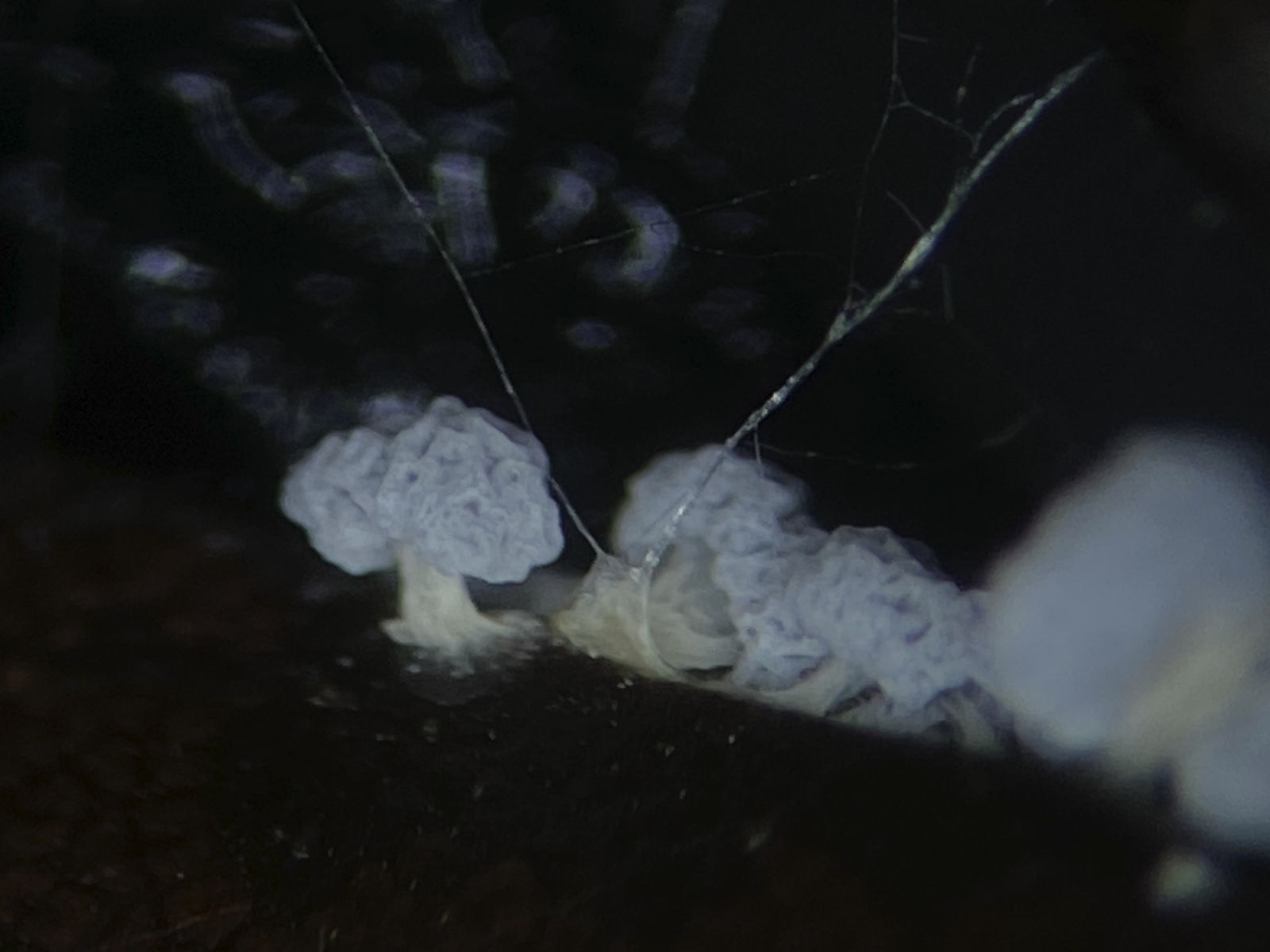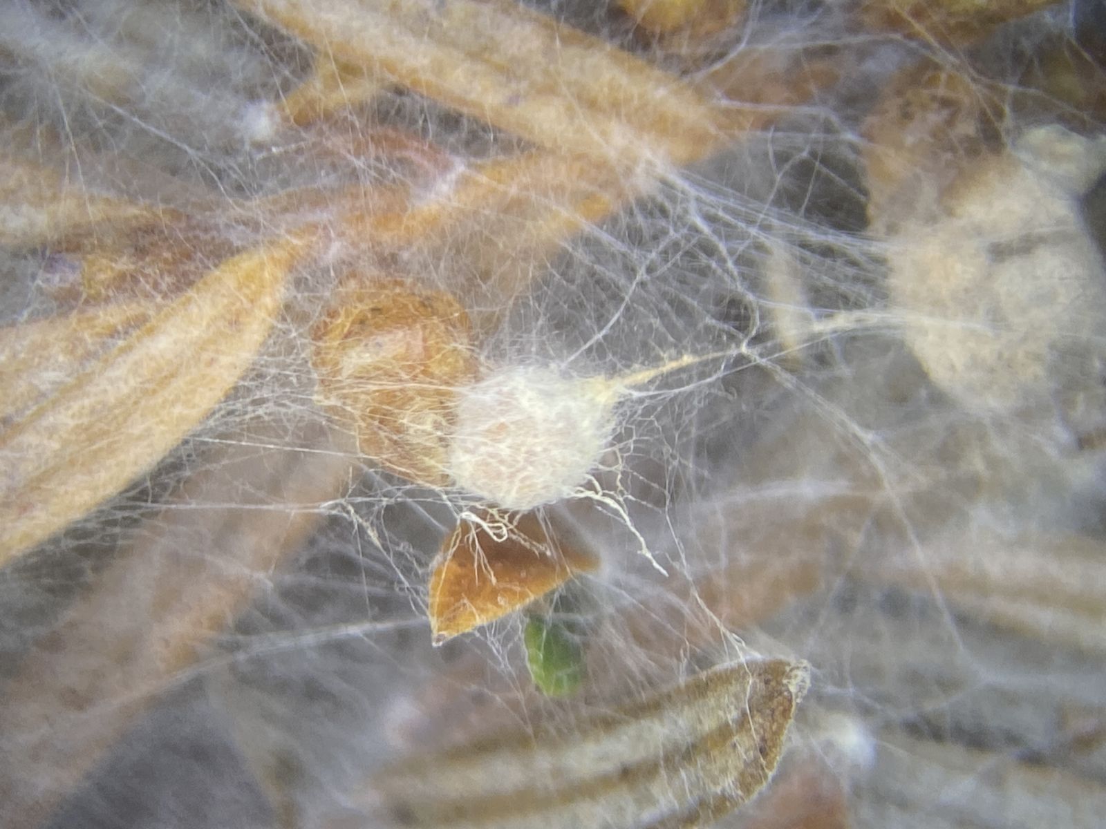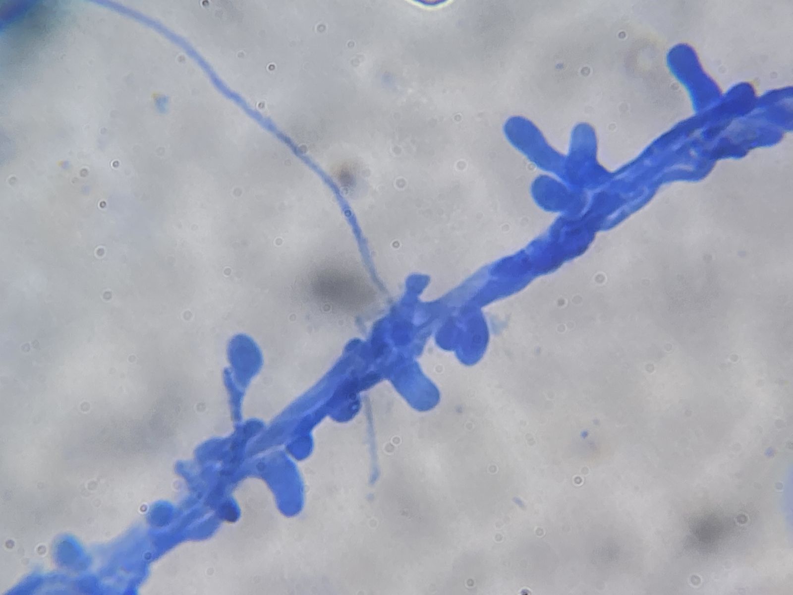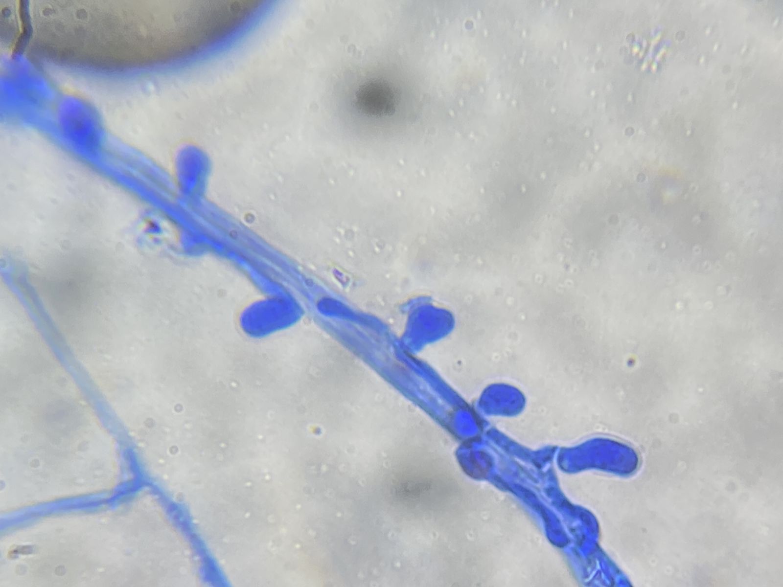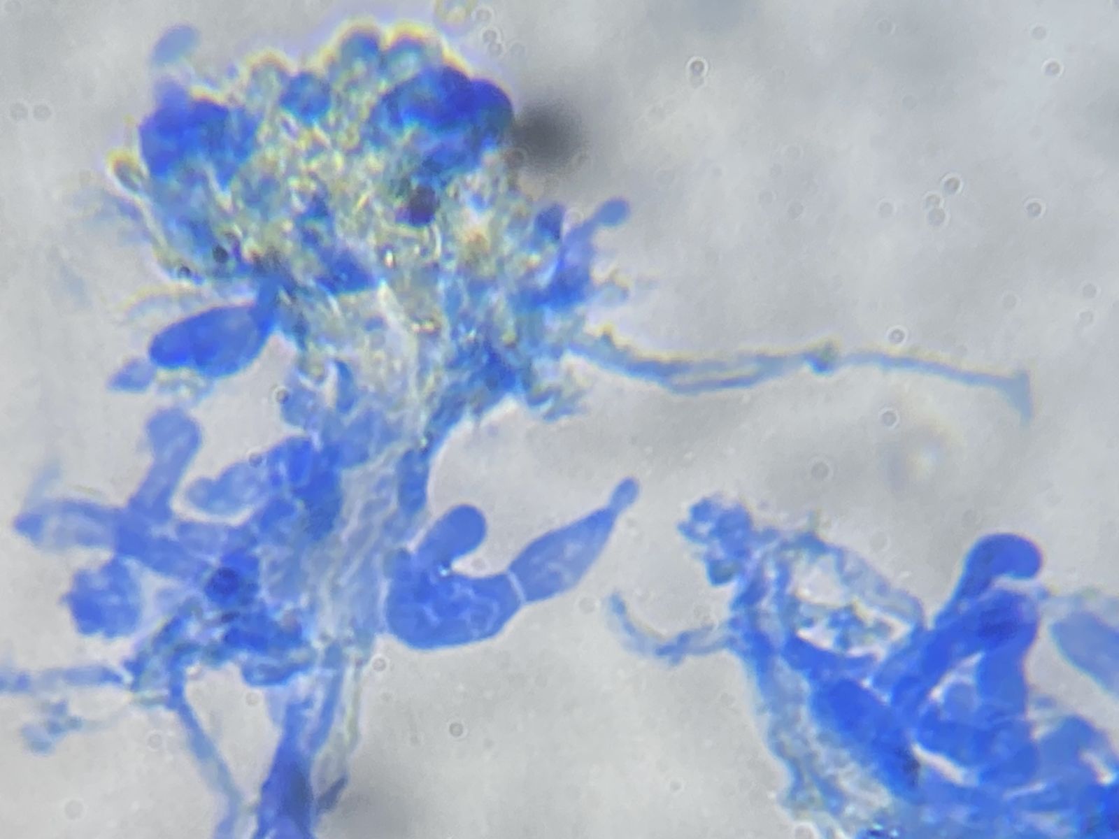 Hier wieder etwas mir Unbekanntes. An Fichtennadeln in einer Feuchtkammer gewachsen. Auf Hyphensträngen oder -knäuel erscheinen sehr viele Knuddel von unterschiedlicher Gestalt. Evtl. ist es auch nur eine Missbildung aufgrund der Kultivierungsbedingungen. Konidien sah ich nicht. Vielleicht gibt es im Forum einen Forstbotanik-affinen Kenner von solchen Schädlingen.