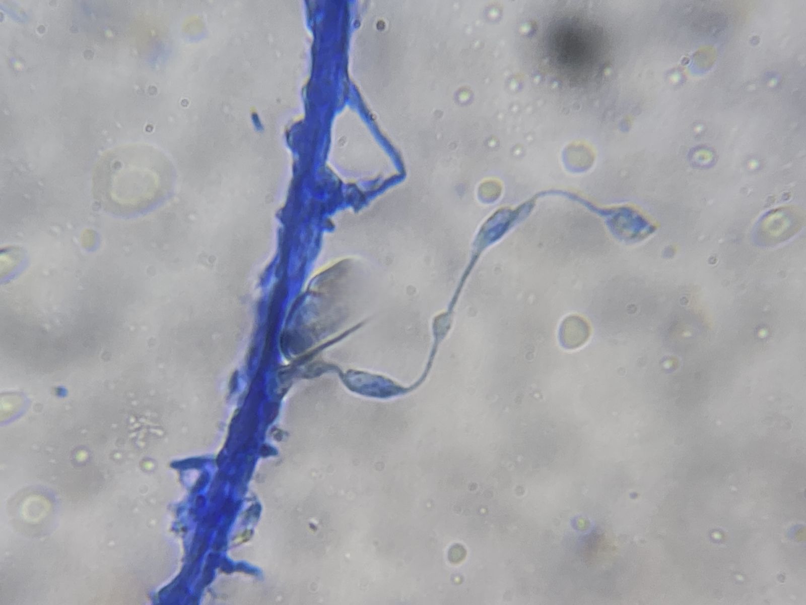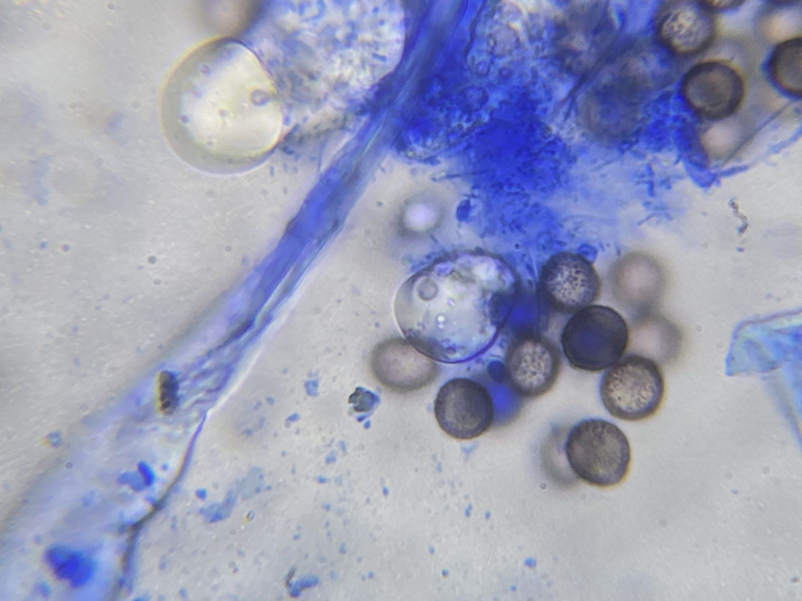 Aus einer Feuchtekammer mit Flügelsamen von Ahorn. Medium Baumwollblau verdünnt. Da ich keine zugehörigen Hyphen sah, tendiere ich zu Pollen.