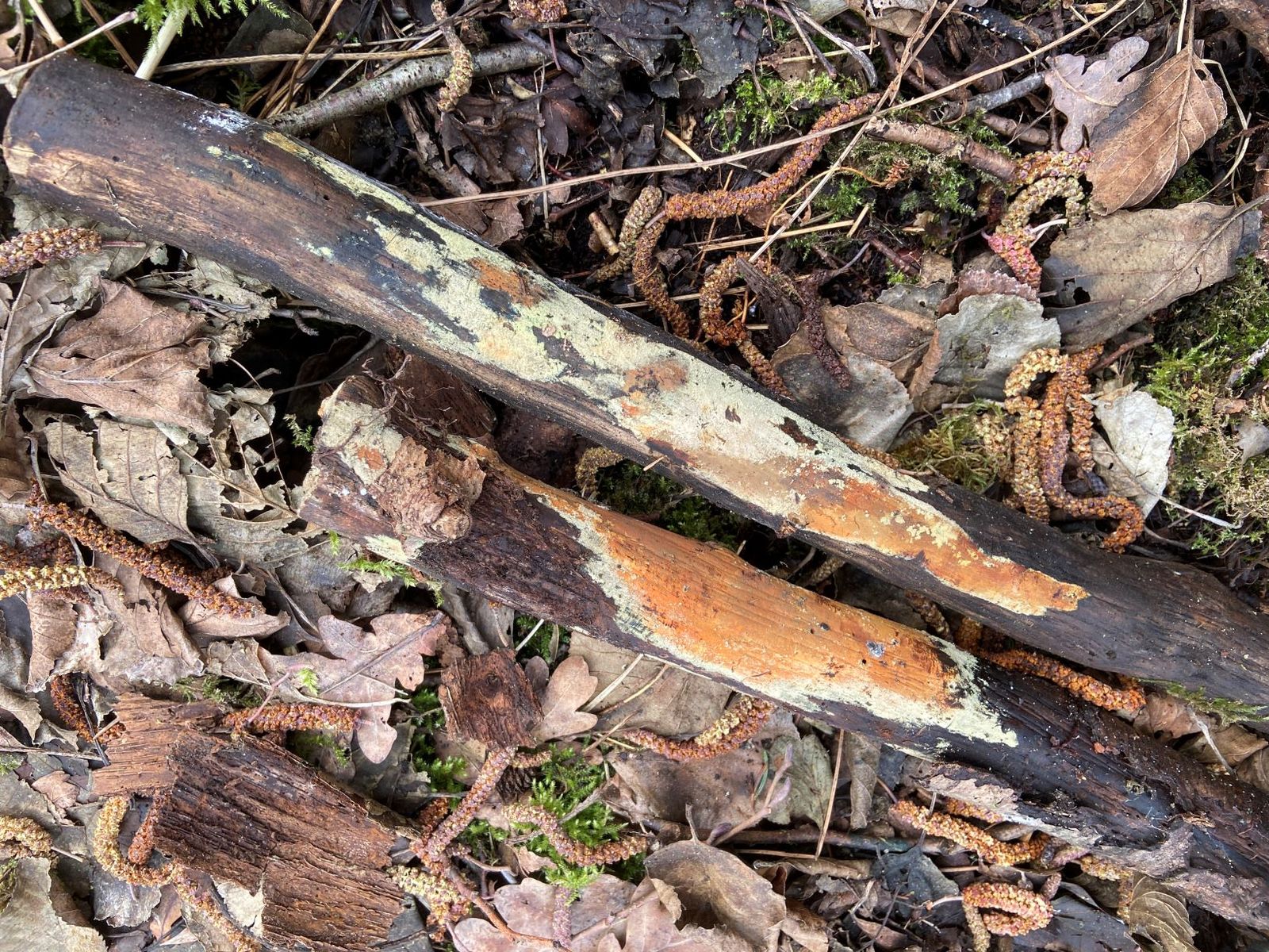 Rotflächige Hölzer sind mir von den Arten Hypoxylon rubiginosum und Melanomma sanguinarium bekannt. Aber immer wieder fand ich solche Äste mit Schimmelpilzbewuchs, vermutlich Cladosporium sp. Literaturhinweise fand ich dazu bisher nicht. Ist das ein Anamorpher zu den oben genannten Arten, oder kann diese Verfärbung auch ein Deuteromycet, oder ist das ein Folgebewuchs?