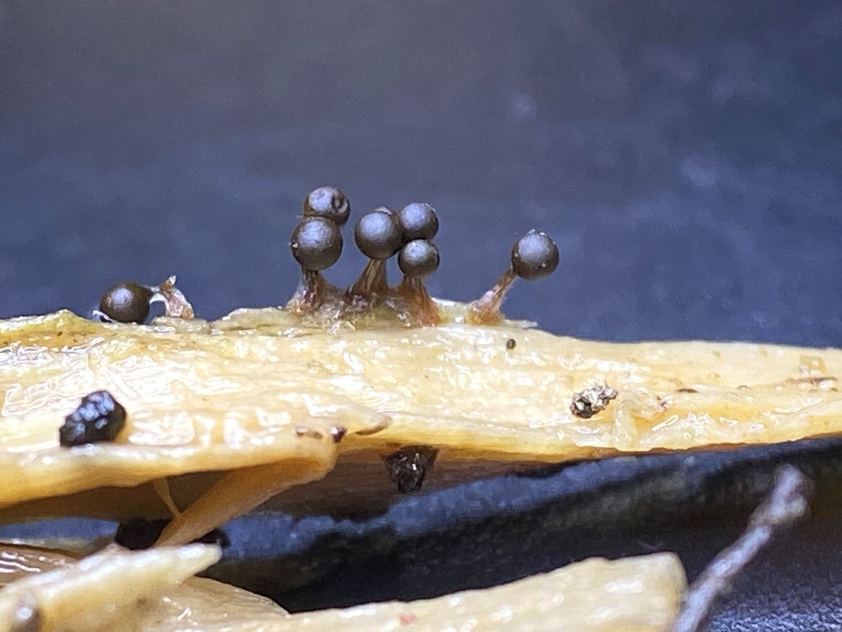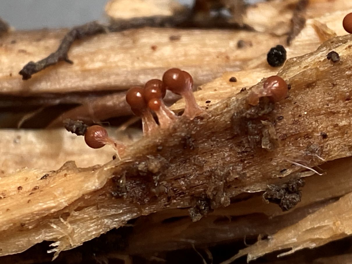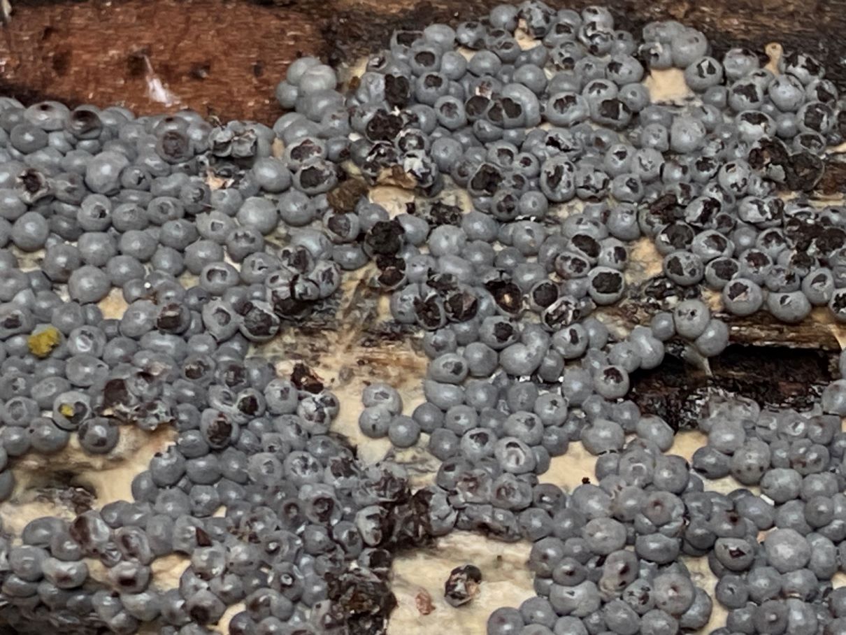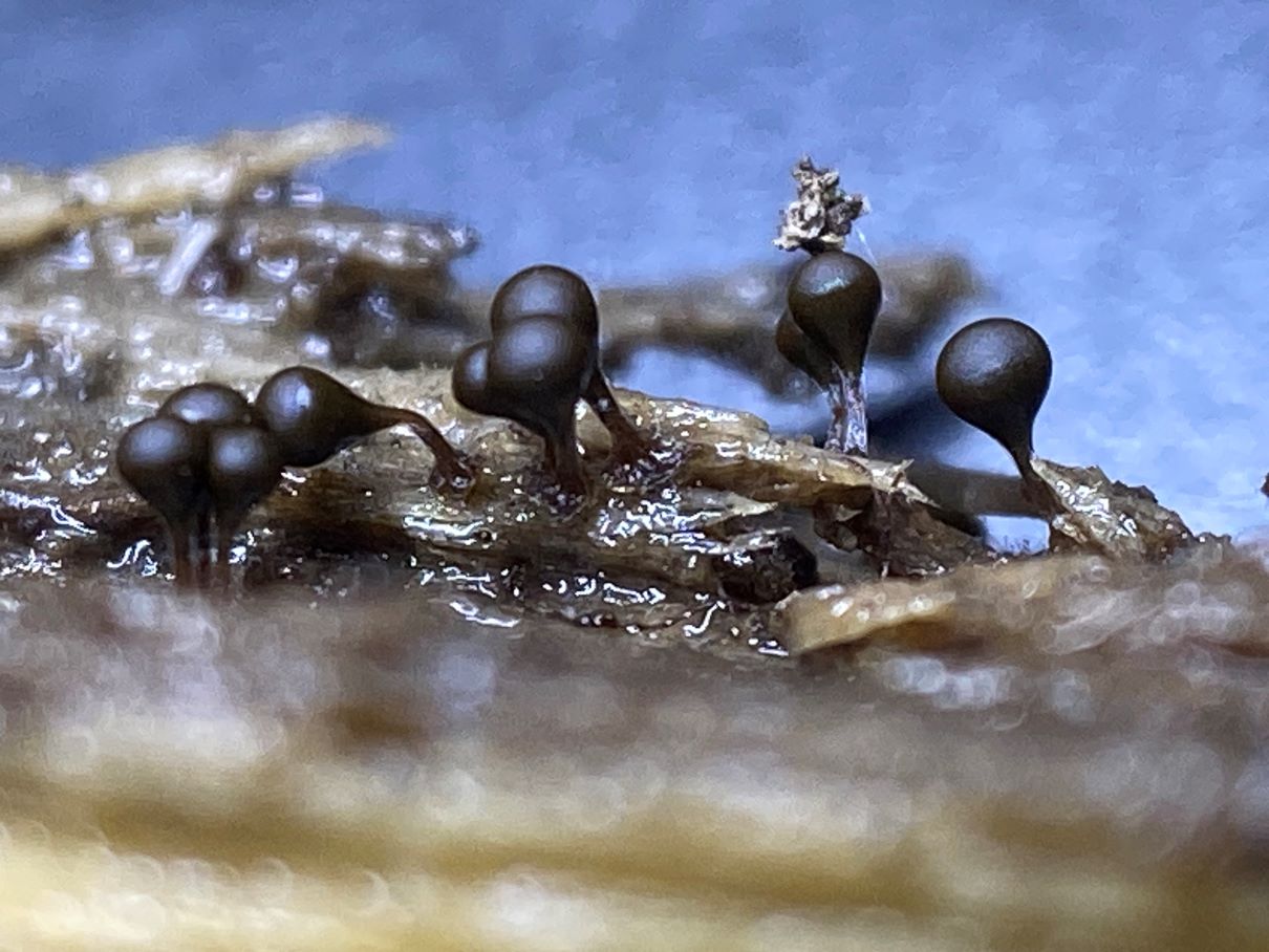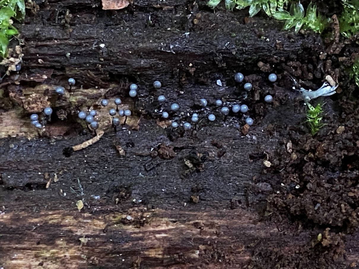 An anderer Stelle im gleichen Auwald fand ich dann die gesäten Kugeln auf Morschholz und Laub. Die Sporen sahen identisch aus.
