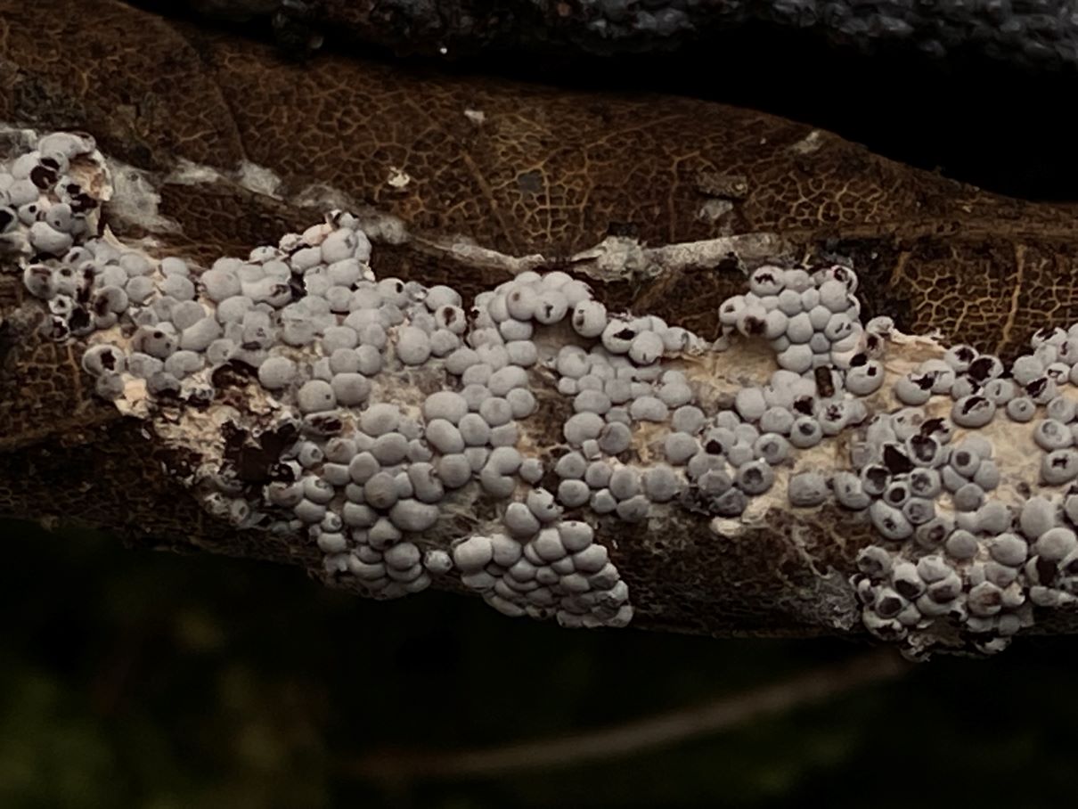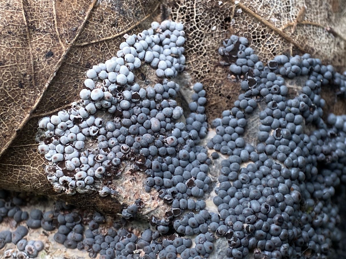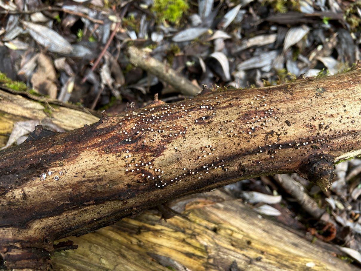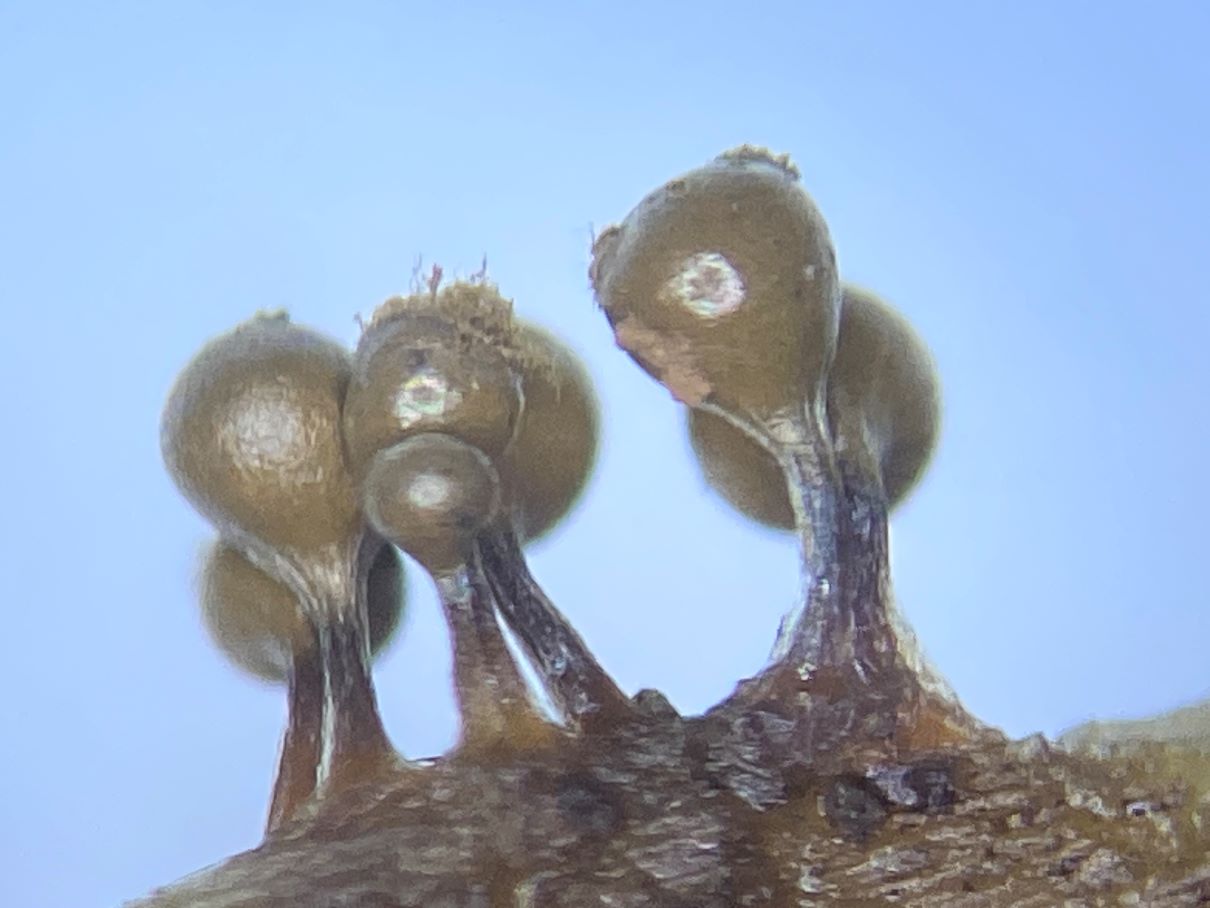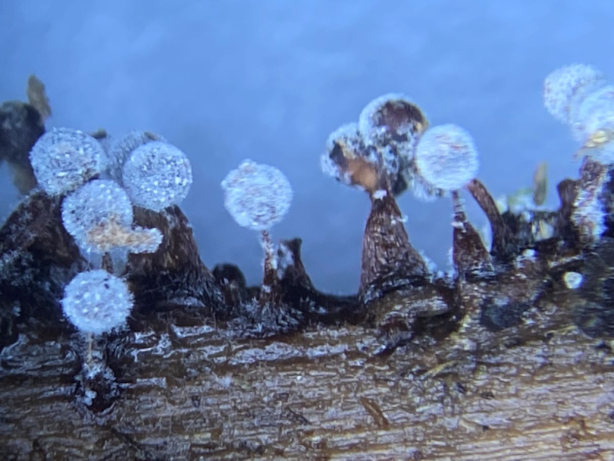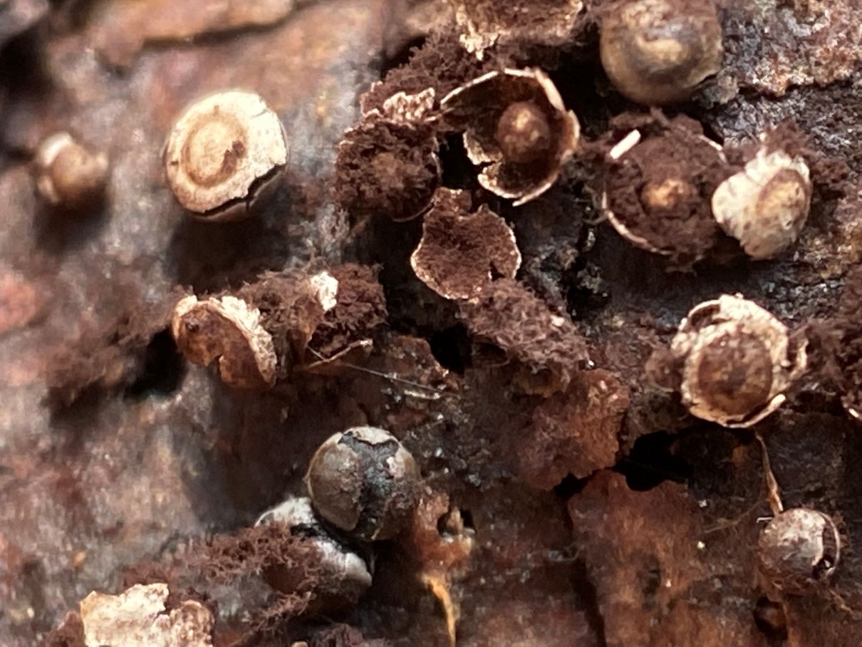 An anderer Stelle im gleichen Auwald fand ich dann die gesäten Kugeln auf Morschholz und Laub. Die Sporen sahen identisch aus.