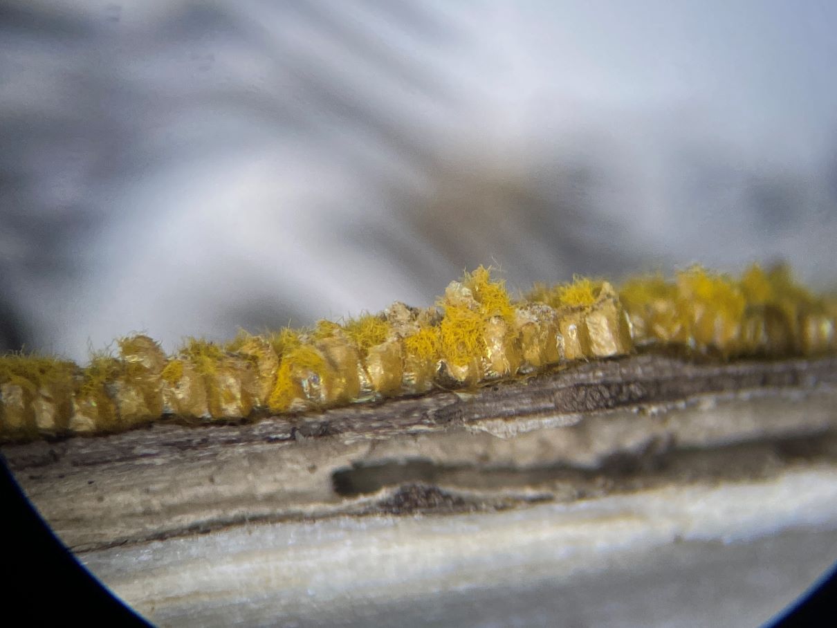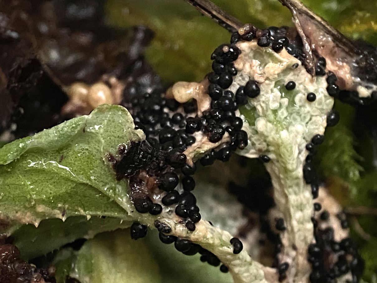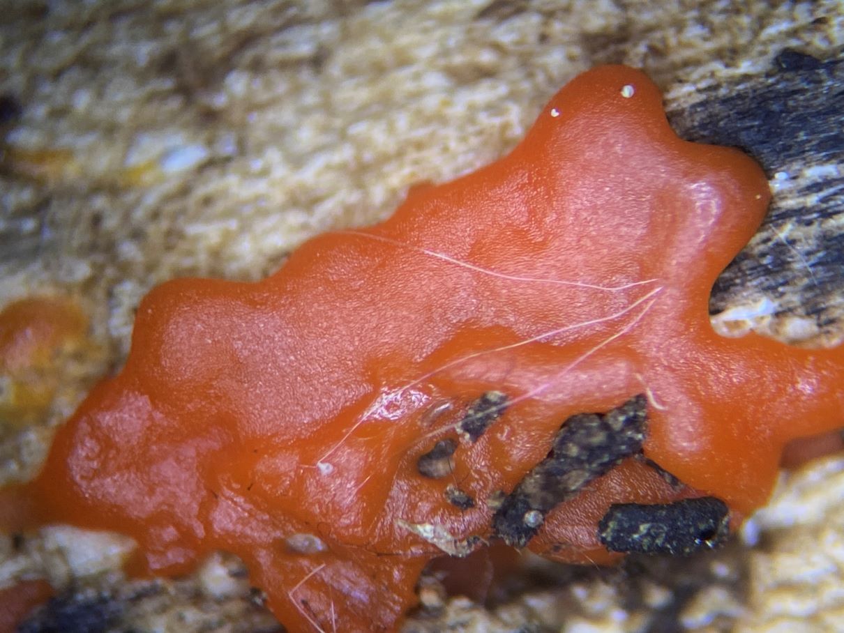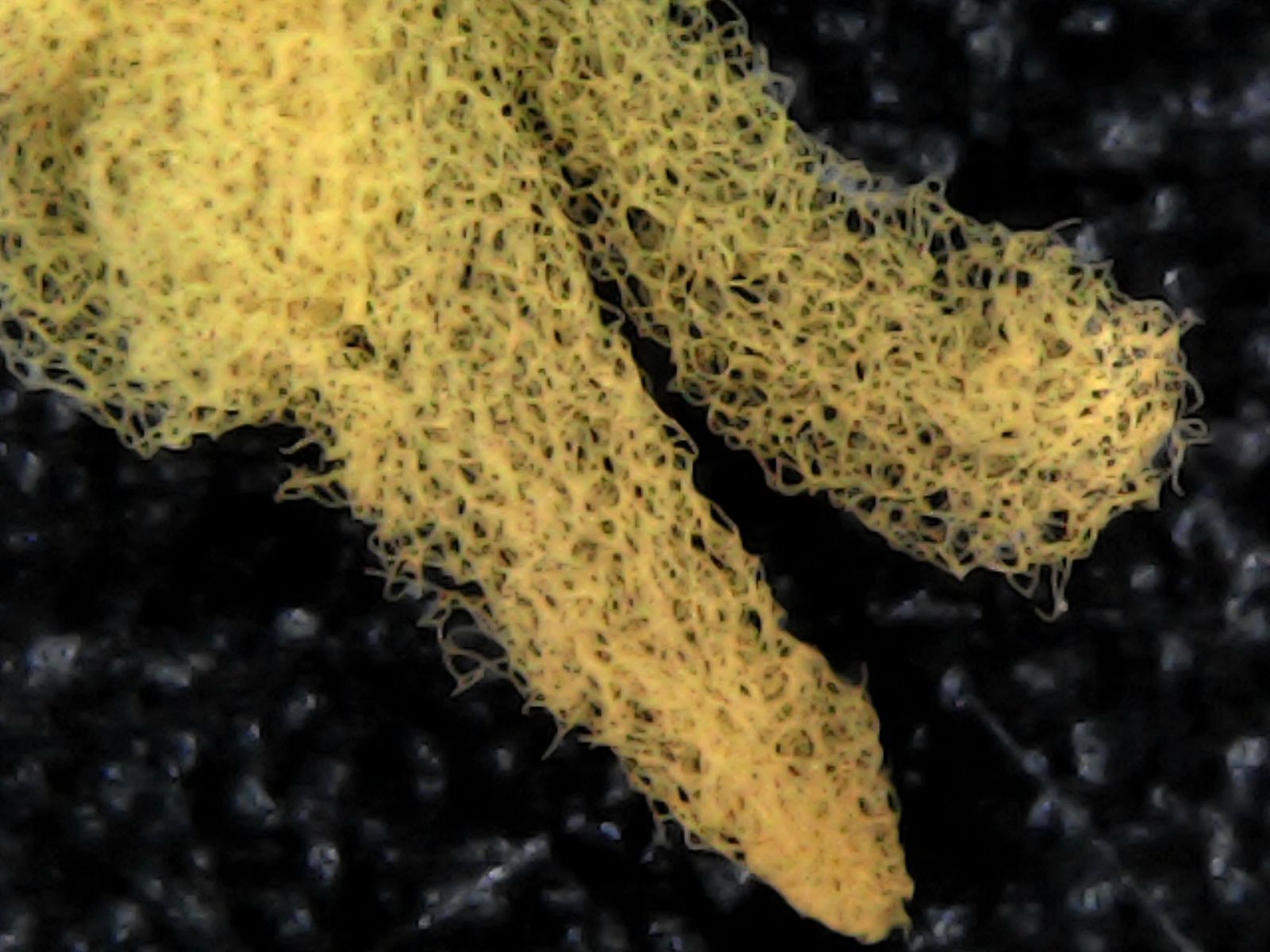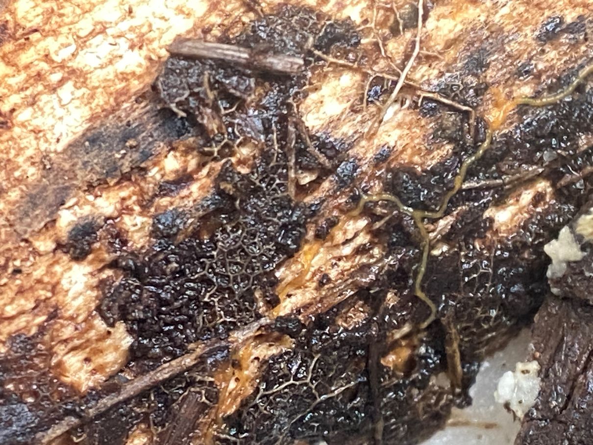 In der Feuchtkammer endete das rote Sklerotium dann absolut unspektakulär als Plasmodium mit gelblichen Strängen.