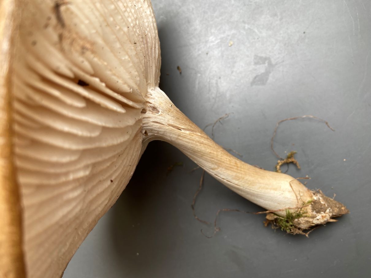 diese zwei Arten wuchsen neben einem Mumien-Laubbaum (~Betula exotische sp.) im Gras in einer Parkanlage. Ich scheiterte mit der Identifizierung. Die Erde war sehr hat, weshalb ich die Stielbasis wohl nicht vollständig erhielt (Volva? Wurzel?).