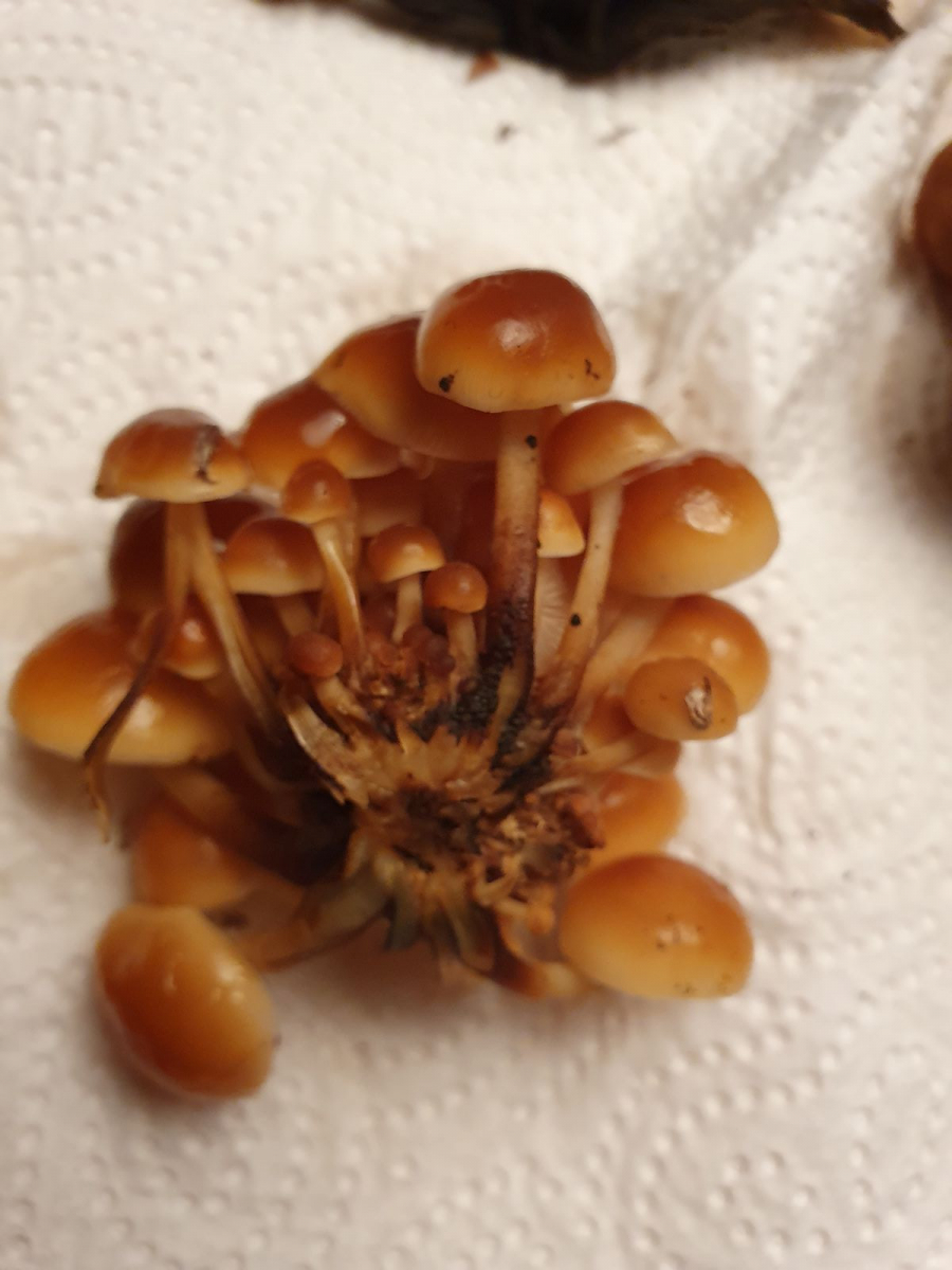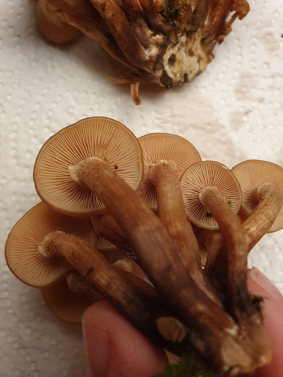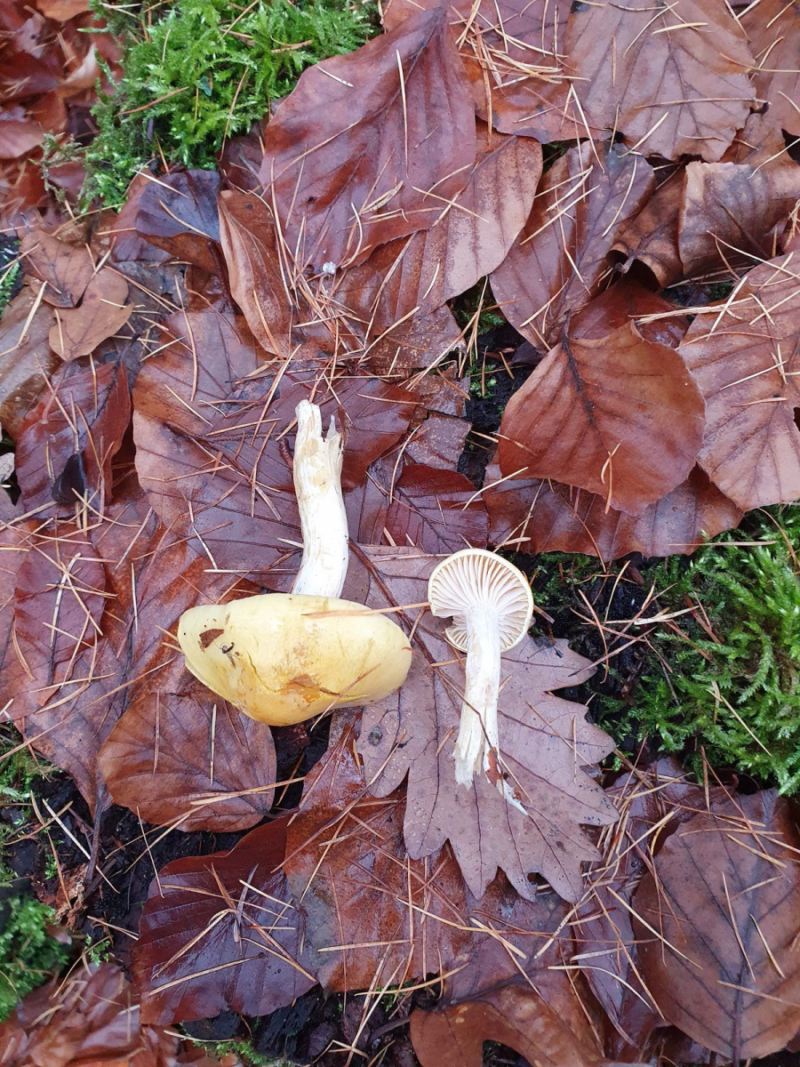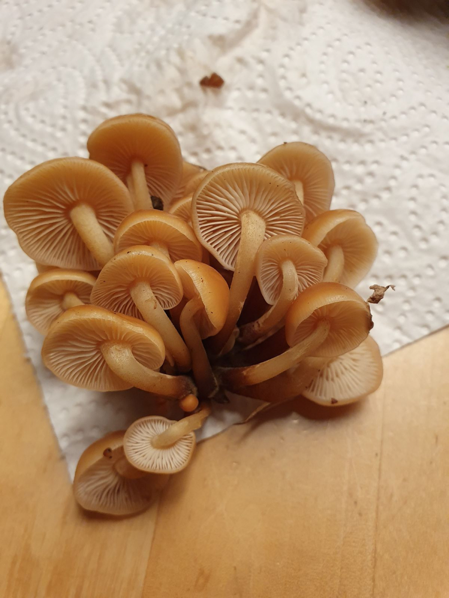 Insgesamt ein gutes Dutzend Fruchtkörper standen im Halbkreis um eine Esche herum, die meisten von ihnen allerdings bereits umgetrampelt oder abgenagt, für die Küche war der Fund also nicht lohnenswert. Gefreut hat es mich trotzdem, gerade weil der Fund so unerwartet kam. So langsam frage ich mich, wer hier eigentlich wen findet.