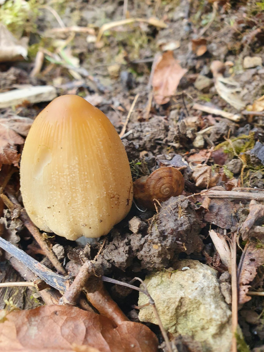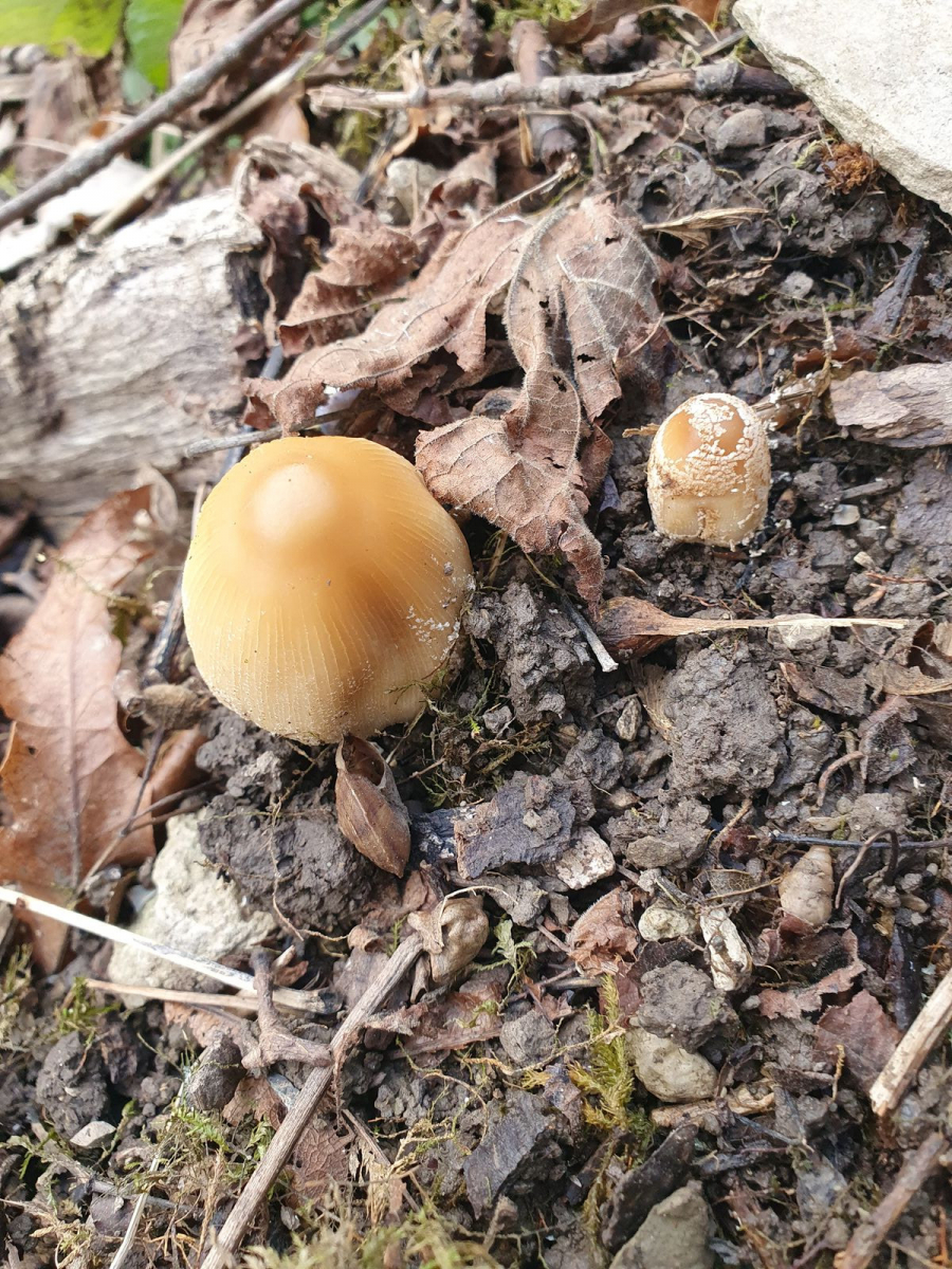 Ich habe vor einigen Tagen diese jungen Pilzchen gefunden. Sie wachsen an einem kalkreichen Hang, die umgebende Vegetation bestand aus Buchen, Eichen, einigen Eschen und massenhaft Bärlauch. Nach einem Blick ins Pilzbuch vermute ich eine Glimmertintlings-Art, ich könnte aber auch komplett danebenliegen und lasse mich gerne belehren ![]()