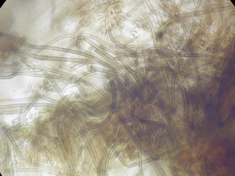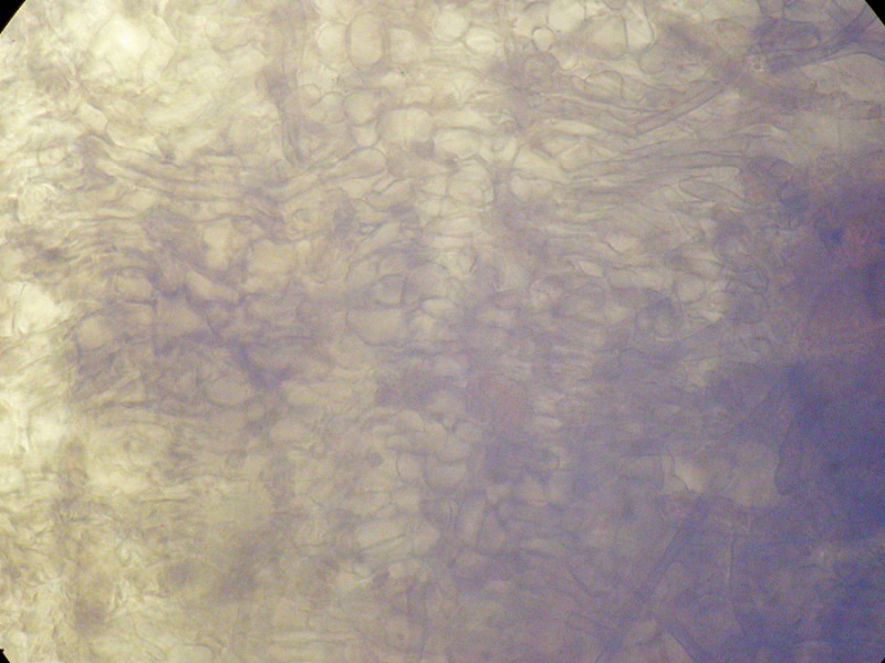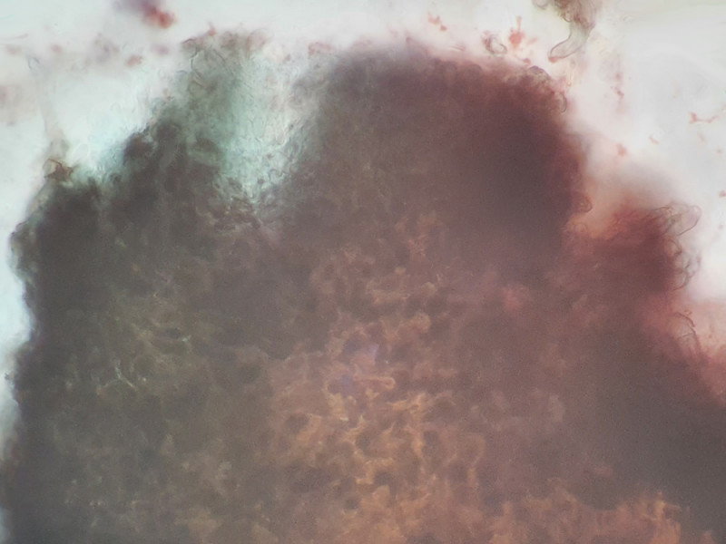 Das entale excipulum eine textura globulosa-angularis und das ektale excipulum mit eher langgestreckten Zellen. Die Zellen in Wasser gelblich, vor allem in Randnähe.