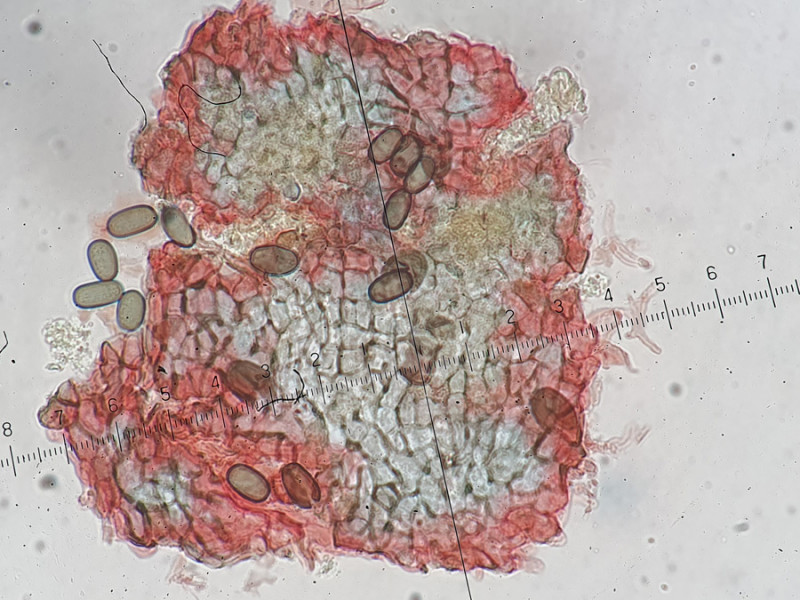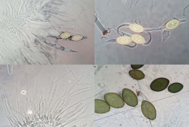 Bei mir waren die Sporenpakete unter 40 µm lang und die Sporen fast glatt. Die Sporenpakete mit der Anordnung 2-3-3. Die Paraphysen farblos.