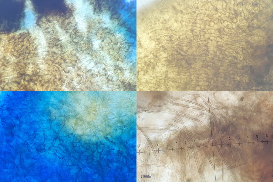 Die Hutdeckschicht ist eine Ixocutis mit 3-4 µm breiten Hyphen. Septen immer mit Schnallen. Pigment gelbbraun inkrustierend.