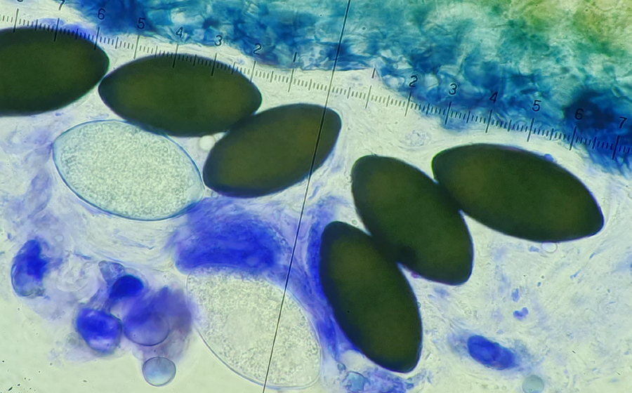 mikroskopiert und Zystiden gefunden, die eigentlich besser zu Deconica coprophila passen. Da bin ich dann stehen geblieben.