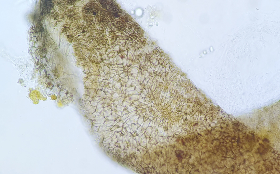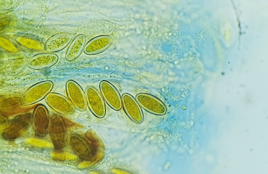 in KOH 3% honiggelb, deutlich dickwandig.