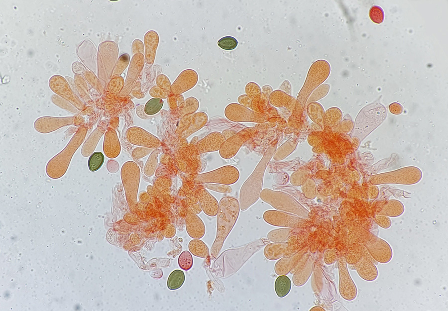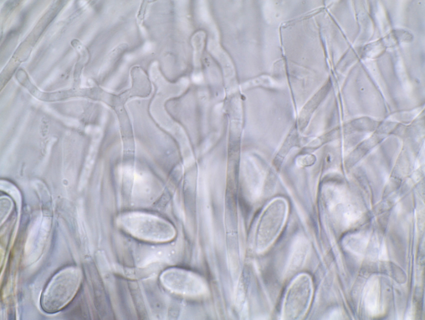 Die Cheilozystiden sind schlank lageniform, zwischen 15-25 µm lang.